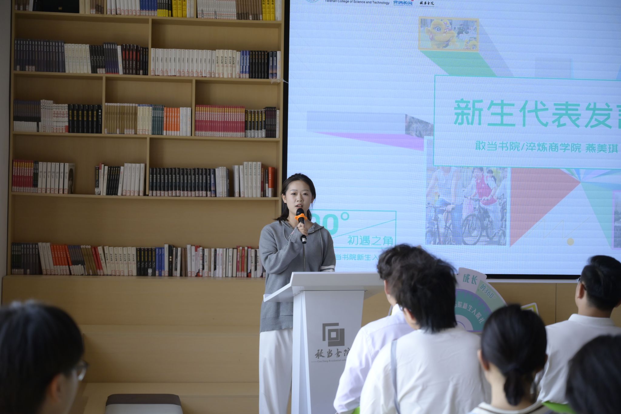 “我们每个人的起点或许不同,但书院给予了我们同样的成长土壤。在这里,没有绝对的落后者,只有不断前进的书院人。”来自敢当书院/淬炼商学院的新生代表燕美琪的发言温柔有力。随后,发展导师刘佳敏为新生代表颁发入院证书,这不仅是一张证书,更是敢当与每一位新生共同写下的第一份承诺。
