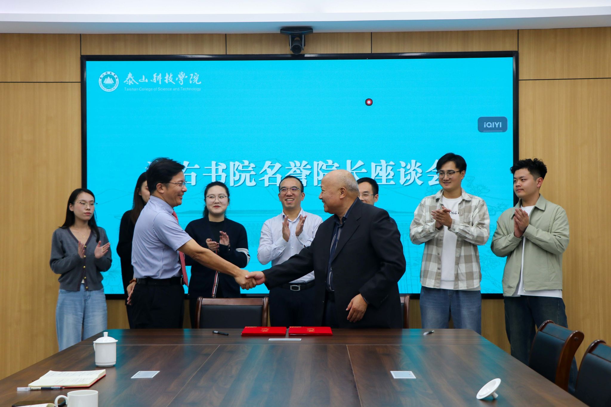 松涛声阵阵,为仪式垒起厚重而绵长的序章。在全体师生的见证下,耿献文将聘书郑重交到陶新华教授手中。这份聘书不仅是一纸约定,更是泰山脚下教育使命的郑重托付,是书院文化血脉的延续。