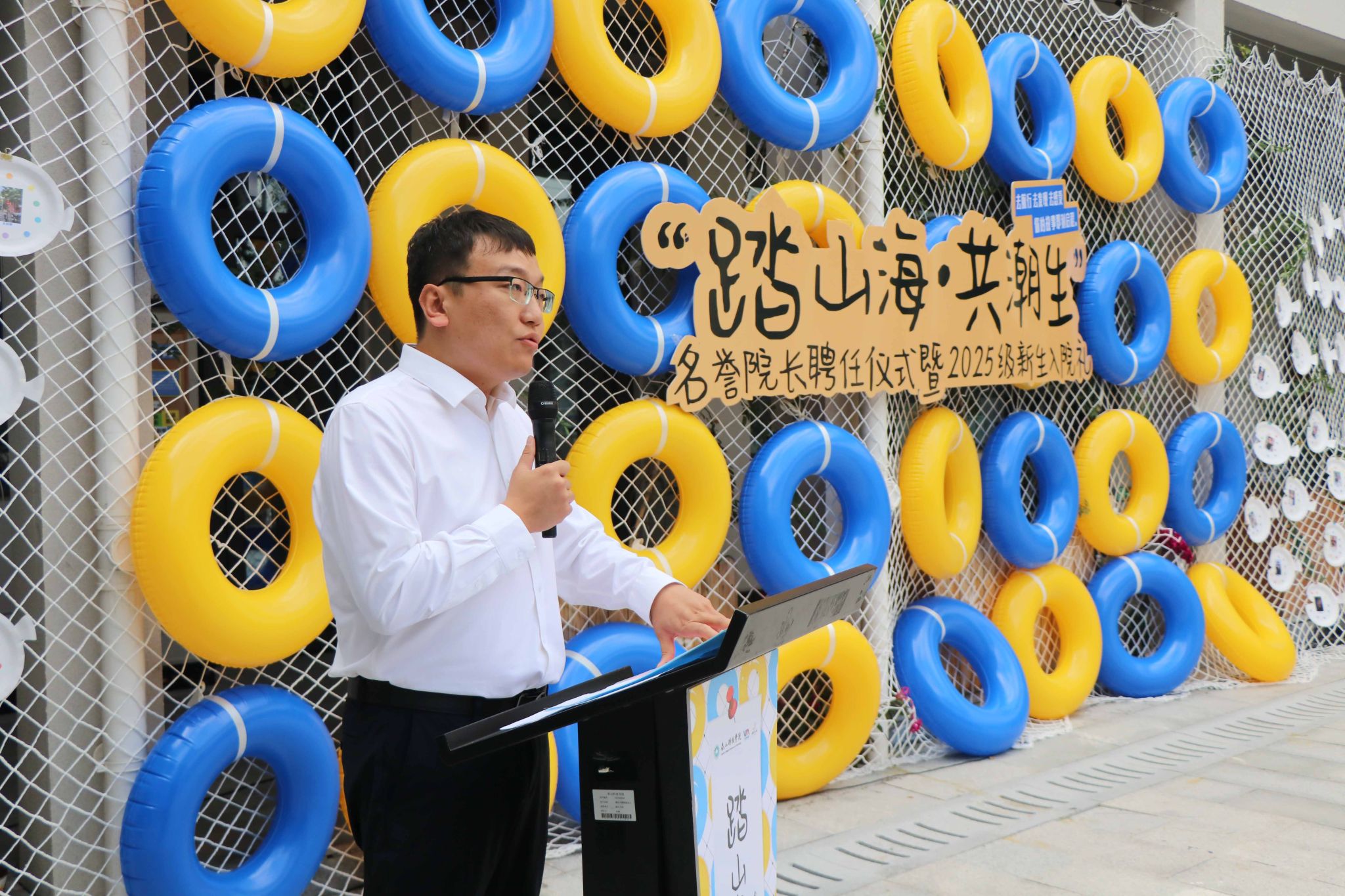 声声海浪奔涌,拍打着书院的时光堤岸。陶新华教授以“老夫聊发少年狂”的东坡气概,分享了自己人生新阶段投身书院的激动心情。他感谢学校的信任和坚持,表示将竭尽所能履职尽责,推动书院事业向前发展。陶院长还寄语学子们学会讲故事,以故事的力量推动自我进步,凝聚同行之人,并鼓励书院新生追求幸福完整的大学生活,希望与大家共同成长。