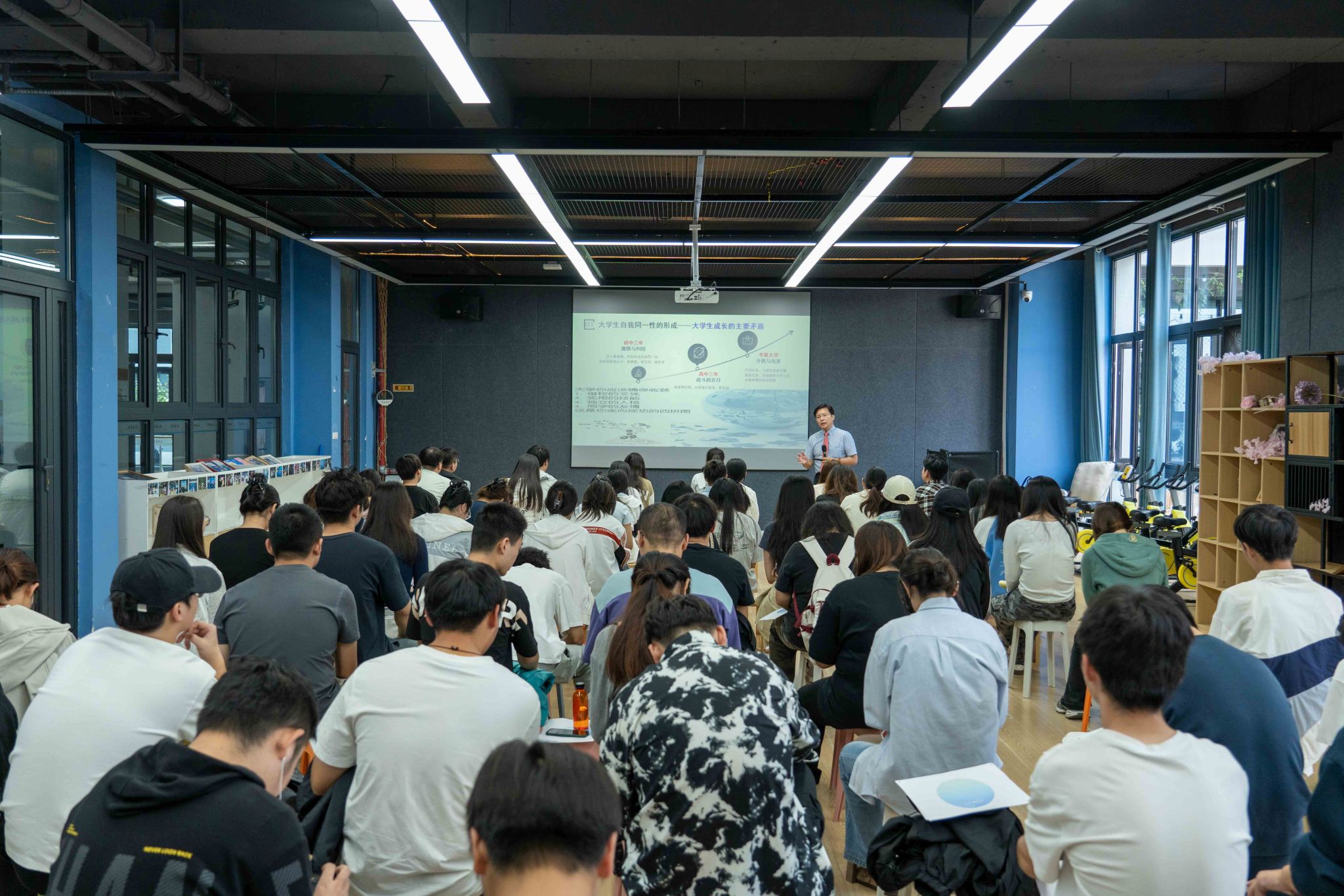 镜头一转,一场“书院第一课”在海右书院106盲点靶场拉开帷幕。陶新华教授为学子们带来了一场以“大学,让人生幸福完整”为主题的书院开学第一课,为同学们的大学生涯注入了积极的心理能量。