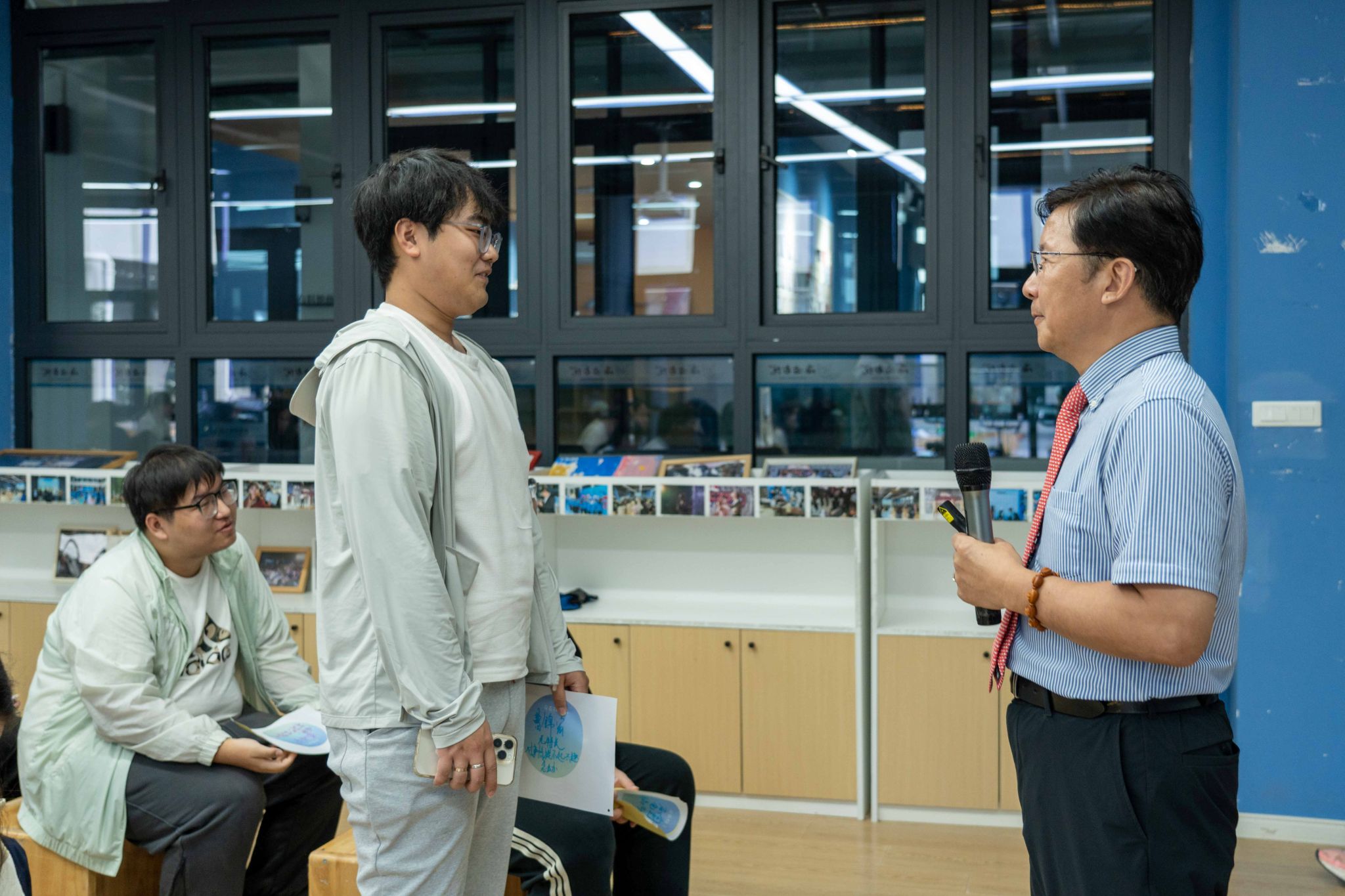 在互动环节,同学们踊跃发言,纷纷就成长中的具体困惑向陶教授请教。育英书院/大数据学院的李泽宇同学就如何更好地处理人际交往的问题与院长进行交流。陶教授指出关键在于“凡事讲良知”,要以真诚善良为基石,并强调阅读对提升沟通能力的重要性。接着,育英书院/大数据学院的曹锦宏同学就“如何更好地接受大学教育”的问题向陶教授请教。陶教授指出:“首先要重塑对大学的认知,将其视为一场思维与行为的训练;其次,专业选择务必以兴趣和特长为导向,这是获得长久动力的关键。”其深入的见解与温暖的回应,赢得了阵阵掌声。师生在对话中共同完成了一次心灵的深度碰撞。