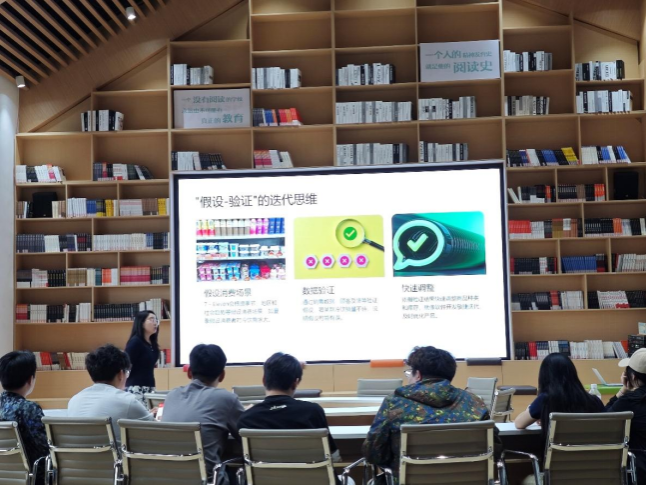 活动中,施老师以7-Eleven的发展历程为引,点明书中“数据驱动决策”与算法开发的共通性:“不管是写代码还是做零售,抓准用户需求才是关键”。聊起线下零售优势,新言书院的段文豪率先说起自己的看法:“线上买东西快,但线下能马上拿到,店员还能跟你聊两句,跟家人一起逛的开心劲儿,电商可给不了!”大数据线/海右书院的夏东尧紧接着补充:“我特别认同文豪的说法!上次我在线上买了件衬衫,图片看着挺合身,收到货却发现版型不对,退换来回花了快一周。但在实体店就不会有这问题,试穿合适再买,省了好多麻烦。所以我平时还是更喜欢去线下店。”