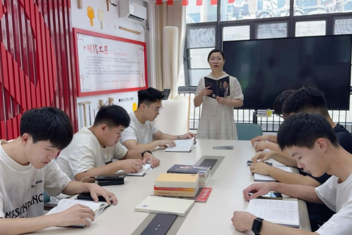 9月10日,育英书院108活动室气氛热烈。孙秀芳带领学生开展了一场以“点亮心火,走向星辰大海”为主题的《雷军传》大咖传记阅读活动。