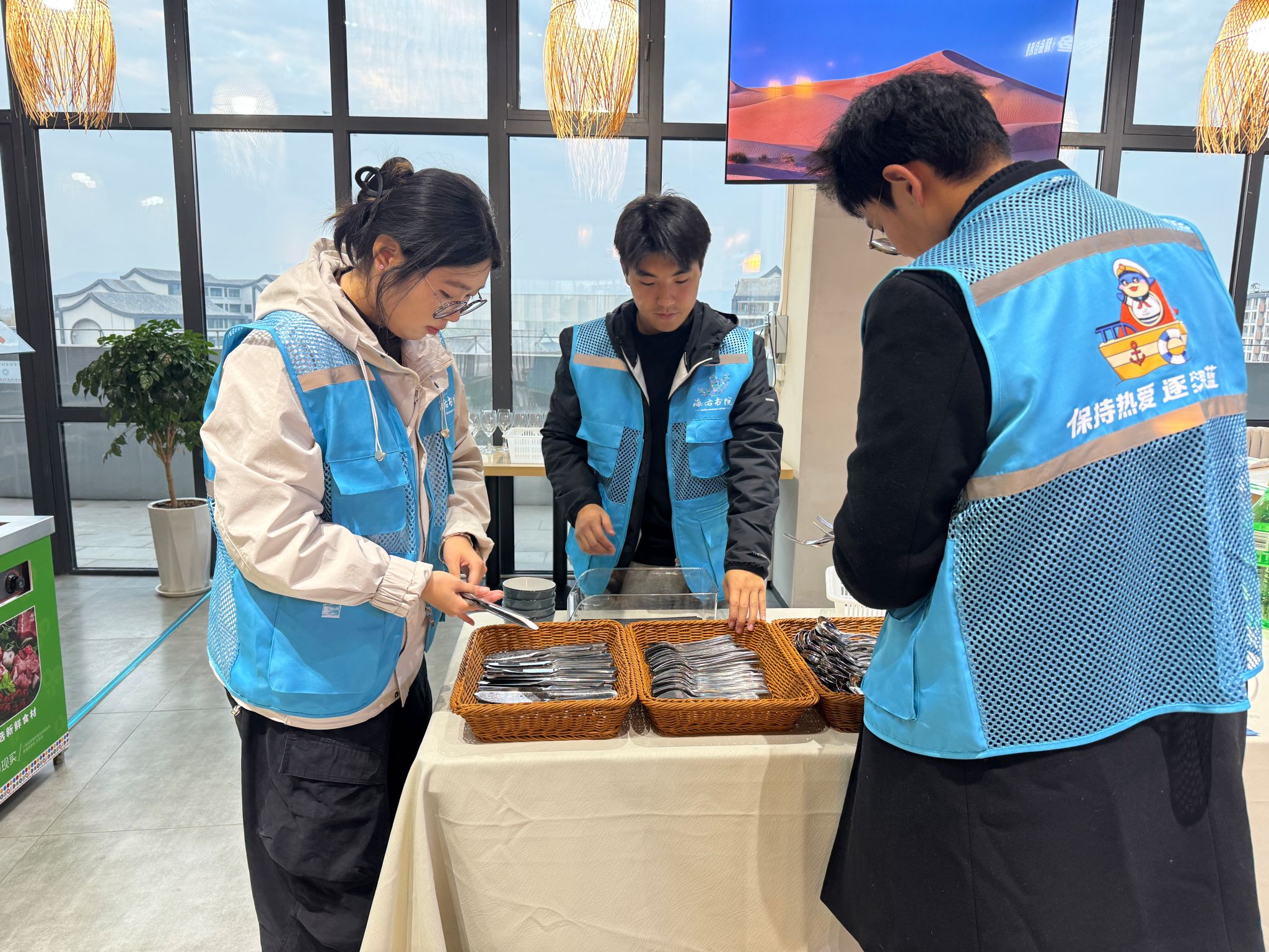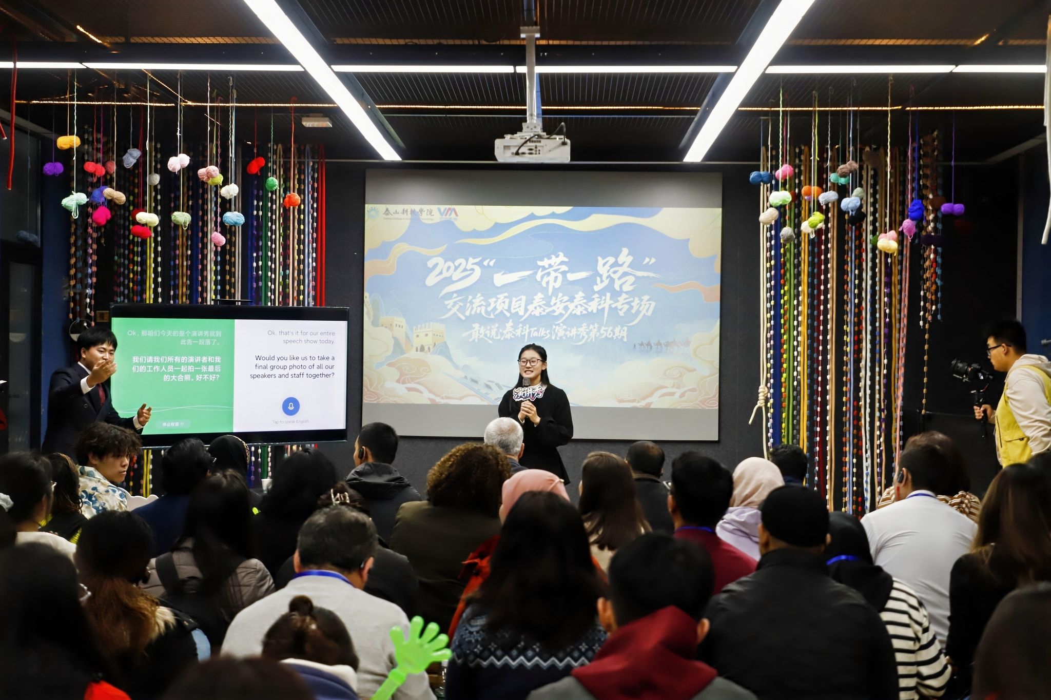 在这场文明互鉴的盛事中,22名来自远景学院的双语志愿者与80名来自海右书院、书院部的学生后备保障人员,经过层层选拔、系统培训,无疑是镜头之外最闪耀的群体。他们以专业的素养与真诚的微笑,成为了泰科递给世界的最美“青春名片”。
