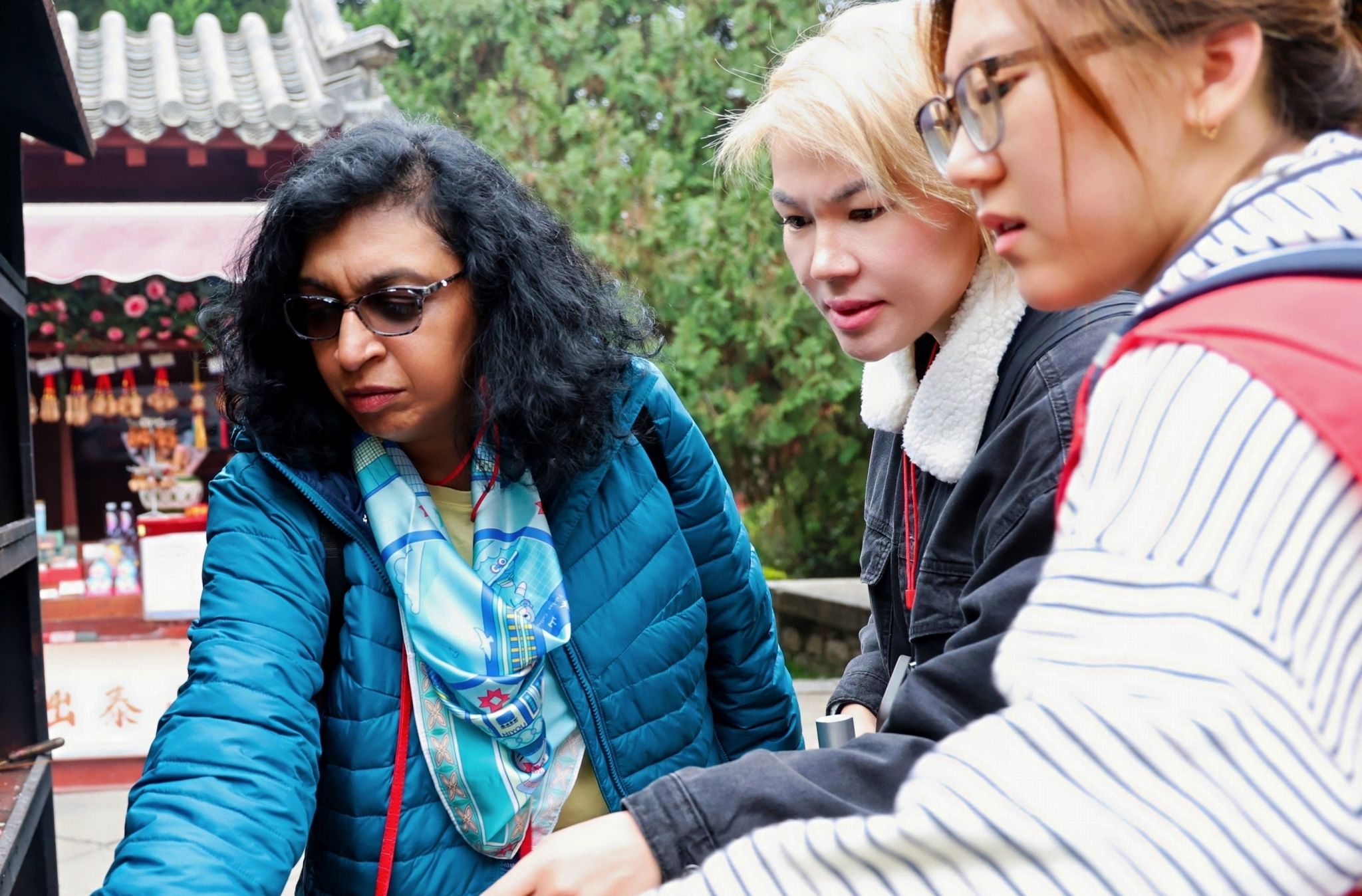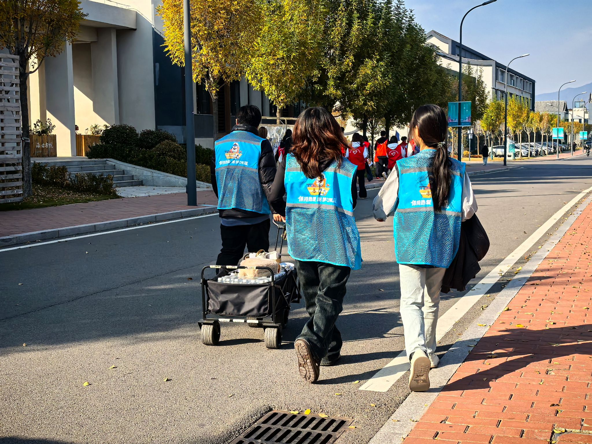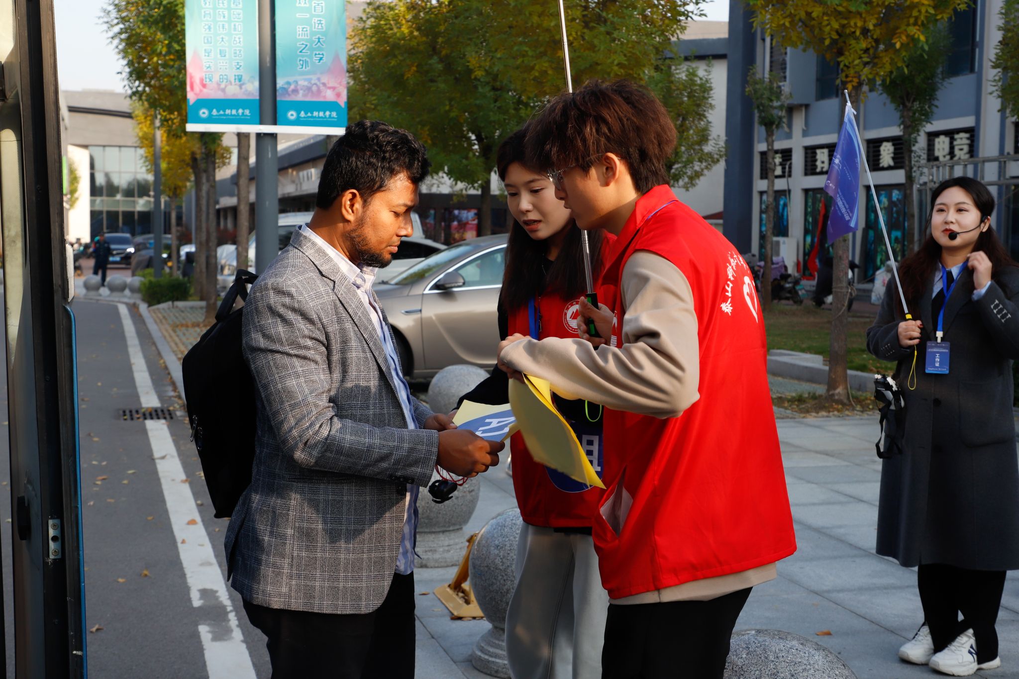 聚光灯之外,还有一群默默付出的“隐形守护者”。摄影摄像组全程跟拍,在岱庙银杏树下蹲守最佳角度,在篝火晚会上捕捉光影交织,在非遗工坊里记录专注神情,用镜头定格每一个动人瞬间;茶歇准备组在每场学术沙龙前精心布场,咖啡、茶点、水果一应俱全,成为嘉宾中场休息的“能量补给站”;物资搬运组穿梭于校园各个角落,从同传设备到轮椅租赁,从文创礼包到路餐准备,用肩膀扛起后勤保障的坚实底座;设计组根据行程变动实时调整日程单,甚至在会议前紧急协助嘉宾优化 PPT 排版与翻译,确保每一场分享都专业流畅;24小时机动组驻守海右书院,随时应对各类突发状况,成为嘉宾在泰期间最安心的 “守护网”。