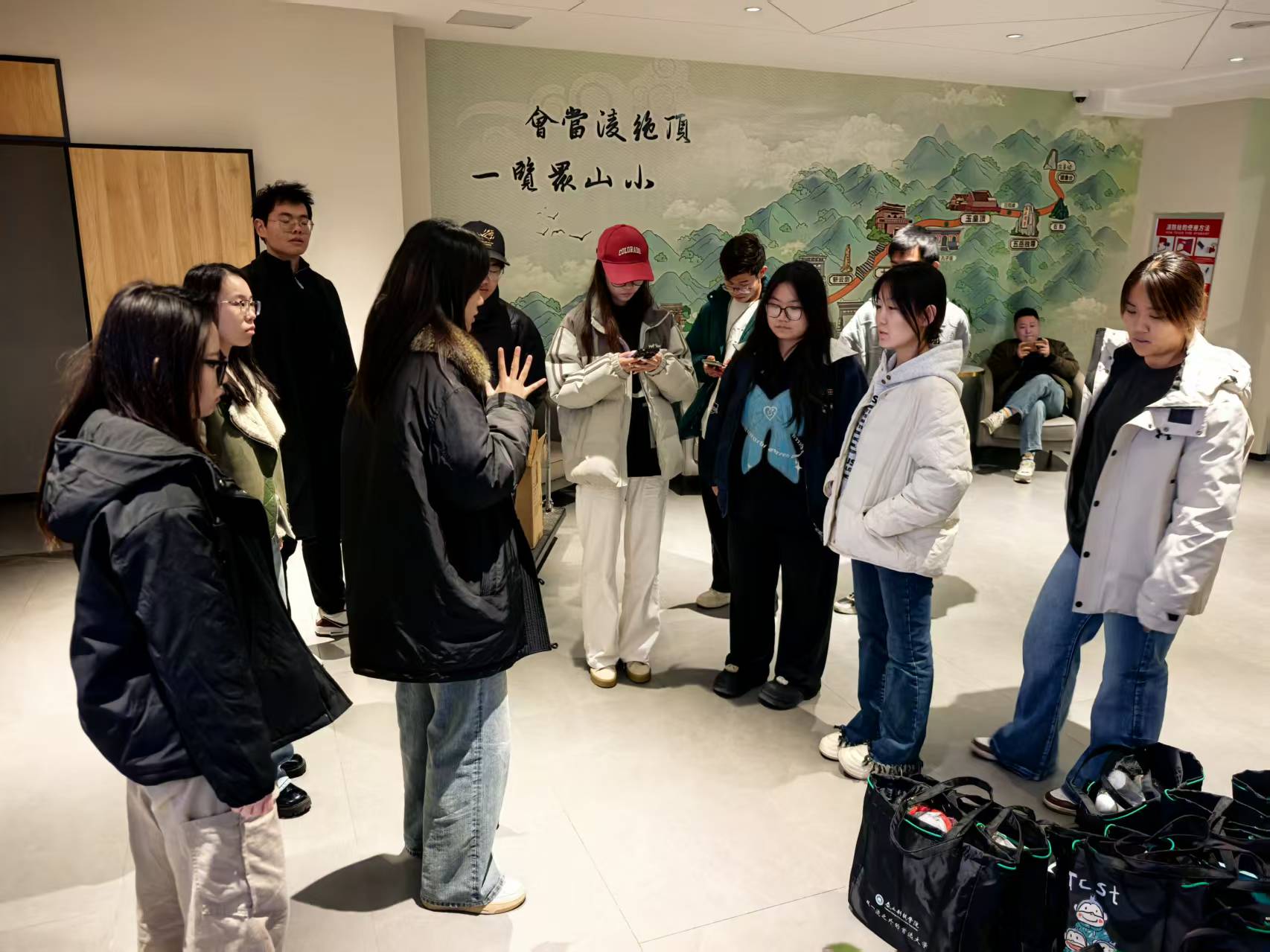 行程执行:动态应需求,全程伴安心。11月5日至9日,每一天的行程都是对组织能力的实战检验。非遗中心、东岳书院、敢当书院、海右书院精心布置传拓、剪纸、面塑等十个体验区,让各国嘉宾深度触摸泰山文化精髓;团委设计《公共表达与思维创新实践课》时,创新采用“师生搭档、英文对话”模式,提前两周反复演练,确保跨语言交流流畅自然;远景学院在《跨文化认知与对话研讨课》中,不仅邀请对外经贸大学教授冯捷蕴开展专题讲座,更配备5名翻译老师与10名志愿者全程护航,实现真正的无障碍沟通。
