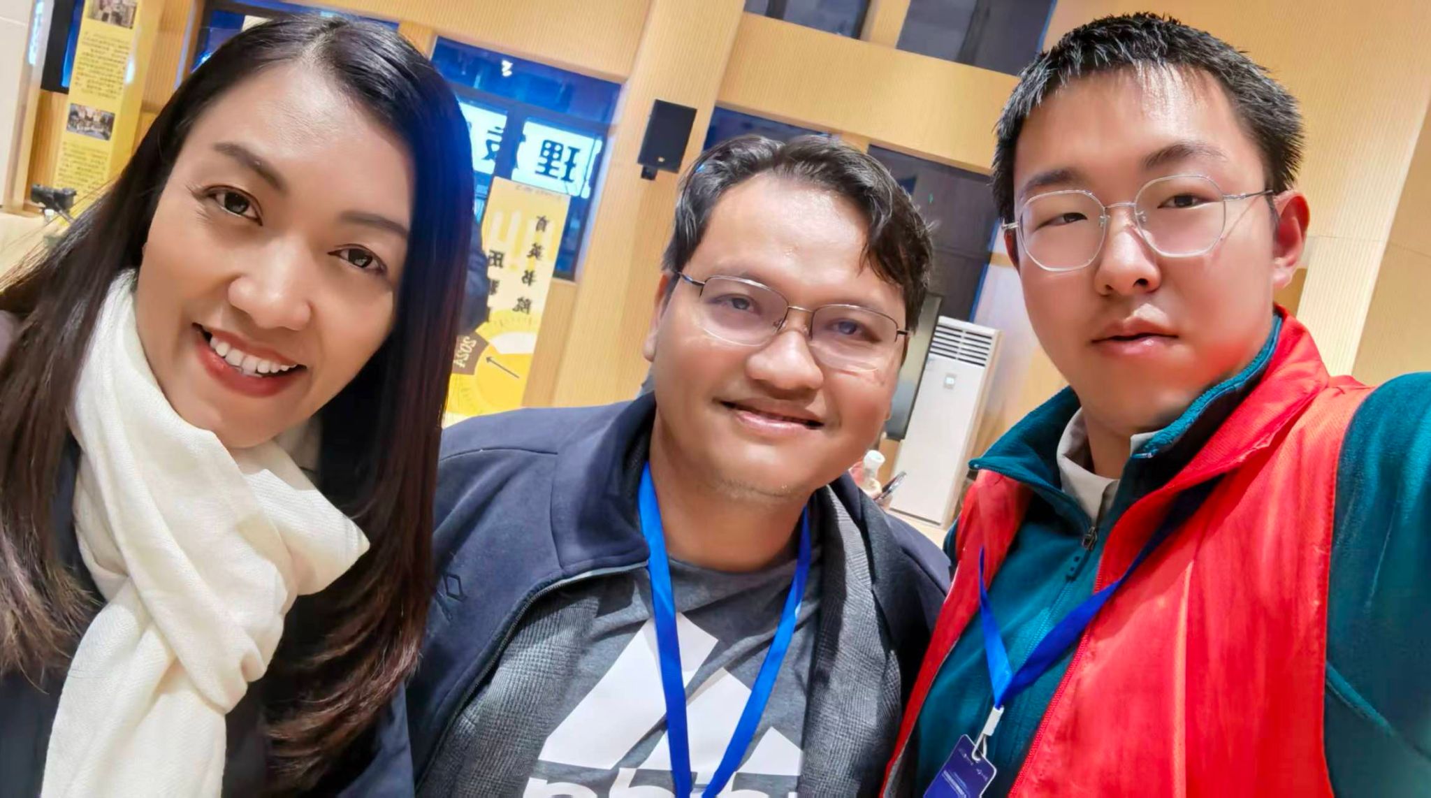 温暖,在夜的寒意中尤显珍贵。当志愿者王娇阳(汶阳书院/远景学院)和解祎诺(汶阳书院/远景学院)发现几位嘉宾在晚风中感到寒意,她们毫不犹豫地返回宿舍取来自己的羽绒服。“介不介意先穿我衣服?”——一句简单的询问,传递的是直抵人心的关怀。这份雪中送炭的温暖让嘉宾们感动不已,来自尼泊尔的Netra Kumar Manandhar更是希望将这份温暖带回国内珍藏,并坚持要回赠一件自己国家的服饰以表达谢意。这份基于个体善意的温暖传递,正是最朴实也最动人的泰科温度。