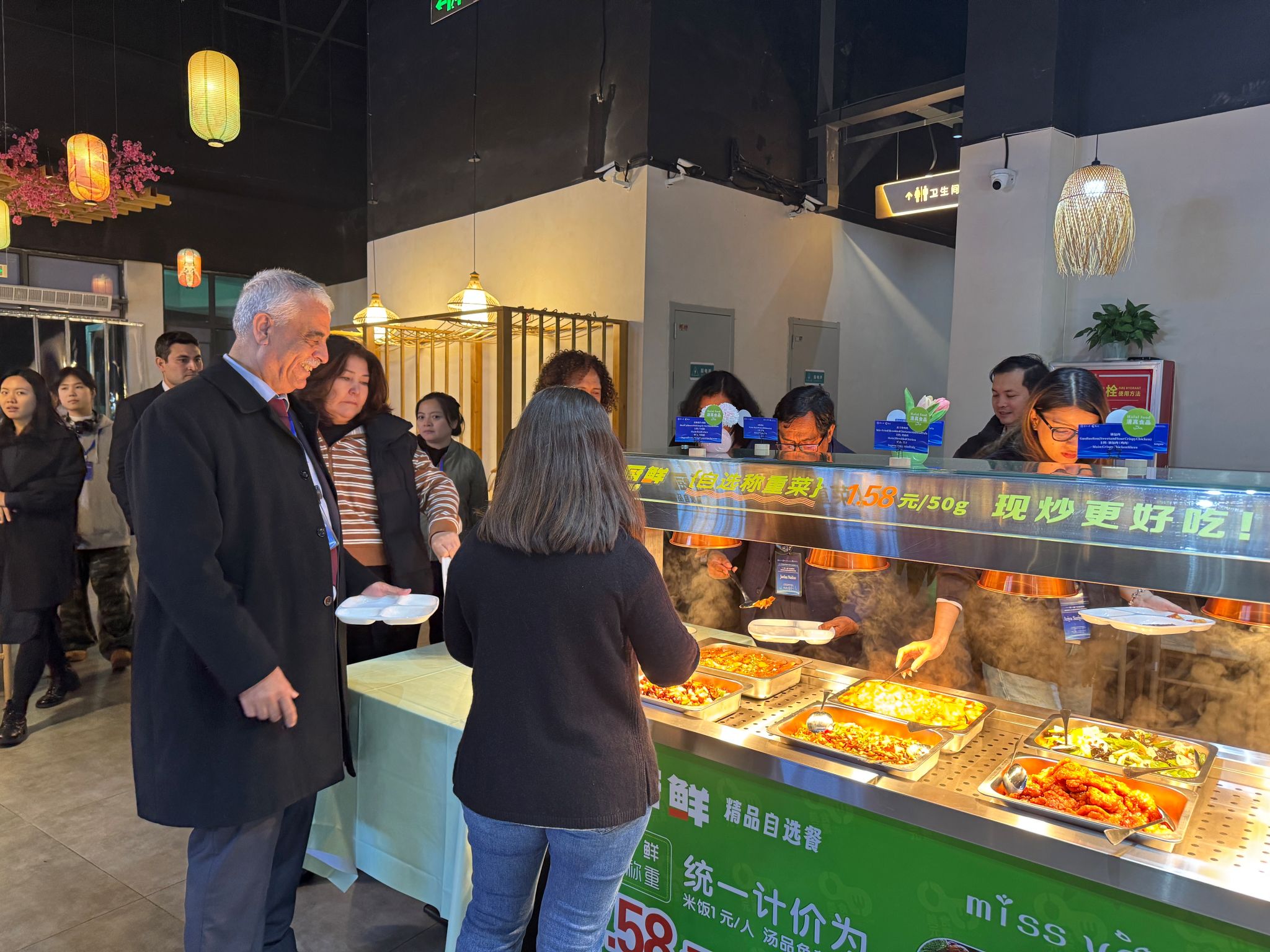 海右书院与食堂共同联合制定双语菜单,明确标注菜品配料与过敏源信息,确保每位嘉宾吃得放心、吃得舒心。立冬之日,一碗碗热气腾腾的饺子被端上餐桌,让外宾在时令美食中品味中国传统习俗;自助餐兼顾中西风味,既有本地特色菜肴,也有符合国际口味的西式餐点,并在嘉宾反馈后及时调整后续餐食口味,实现“味蕾上的跨文化对话”。