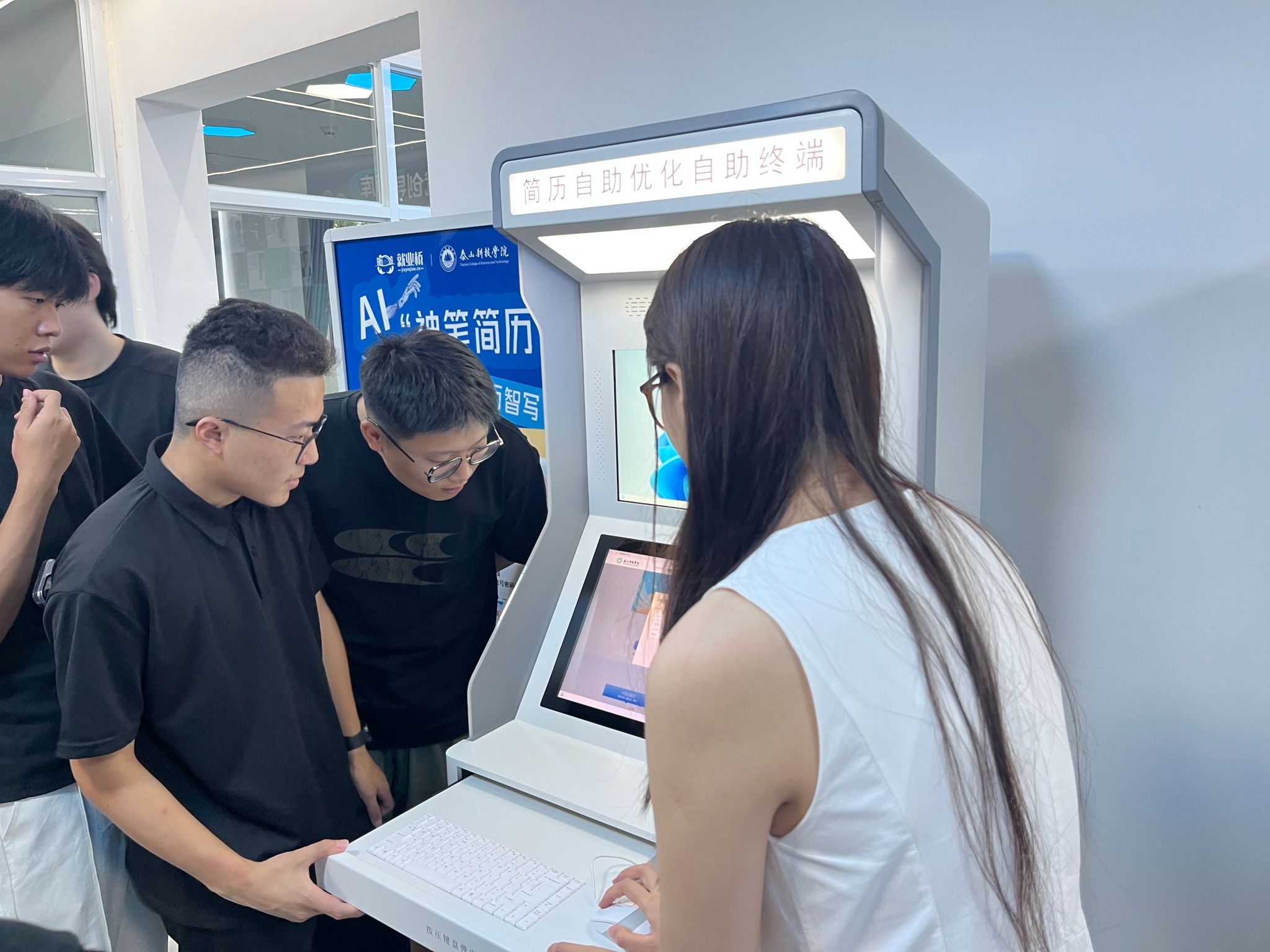 她首先介绍了如何根据不同的职位需求选择最合适的简历模板,确保简历的整体风格与应聘岗位相匹配。接着演示了如何精准地填写个人信息,包括姓名、联系方式、教育背景等,强调了信息准确无误的重要性。此外,她还特别强调了如何在简历中突出个人的优势和技能,通过具体的案例和操作步骤,指导大家如何利用AI简历一体机的智能推荐功能,将个人的特长和成就有效地展示出来,从而提升简历的吸引力和竞争力。整个演示过程既直观又实用,让在场的每个人都受益匪浅。