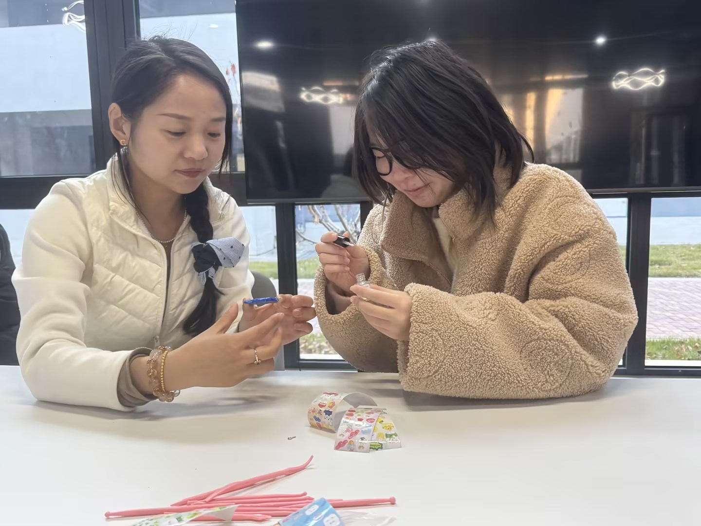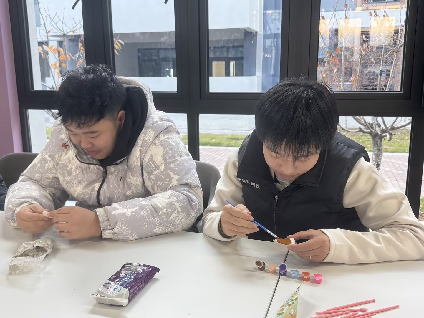 活动现场秒变“建工限定手作工坊”!平日里握惯尺笔的建工同学们,这次纷纷化身“手作达人”,指尖揉捏着五彩石塑黏土,全神贯注地打造属于自己的手工作品。“我要捏个砖头造型,放在工位上绝对拉风!”“这个迷你安全帽太适合我们专业啦!”“老师快看!我做了一个骨头样式的牌子!”梁鸣慧老师和刘晓涵老师穿梭在各个“创意工位”之间,时而指点技巧,时而拍照记录,欢声笑语中,一件件充满个性与心意的小物件陆续“竣工”。