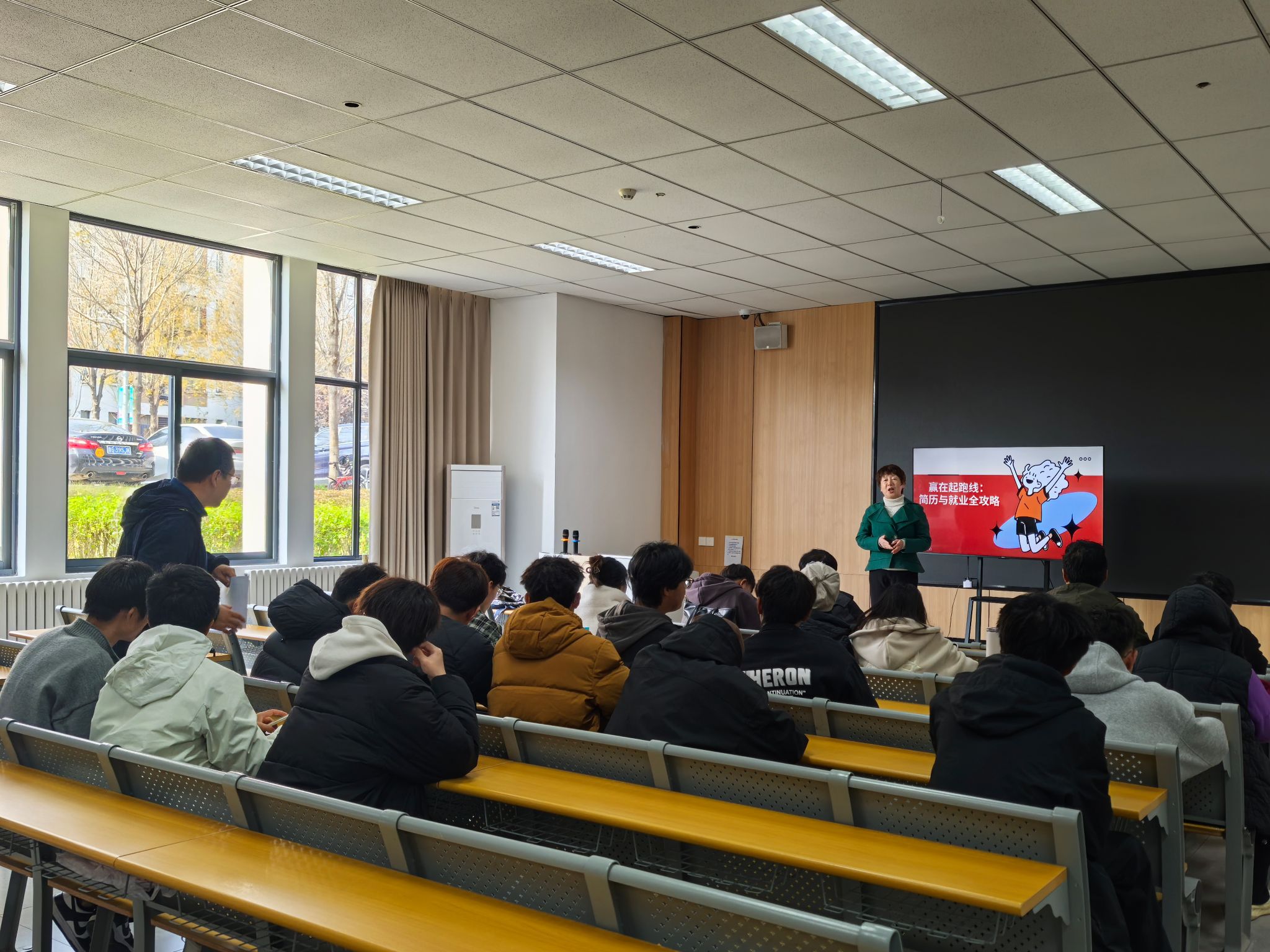 赵常老师将焦点聚焦于“求职实战技巧”。从一份能瞬间抓住HR眼球的简历撰写,到面试中如何从容不迫地展现个人价值,“简历不是日记,而是你的营销广告;面试不是考试,而是一场高价值的商务沟通”,让同学们在欢声笑语中掌握了求职过程中的关键“密码”。