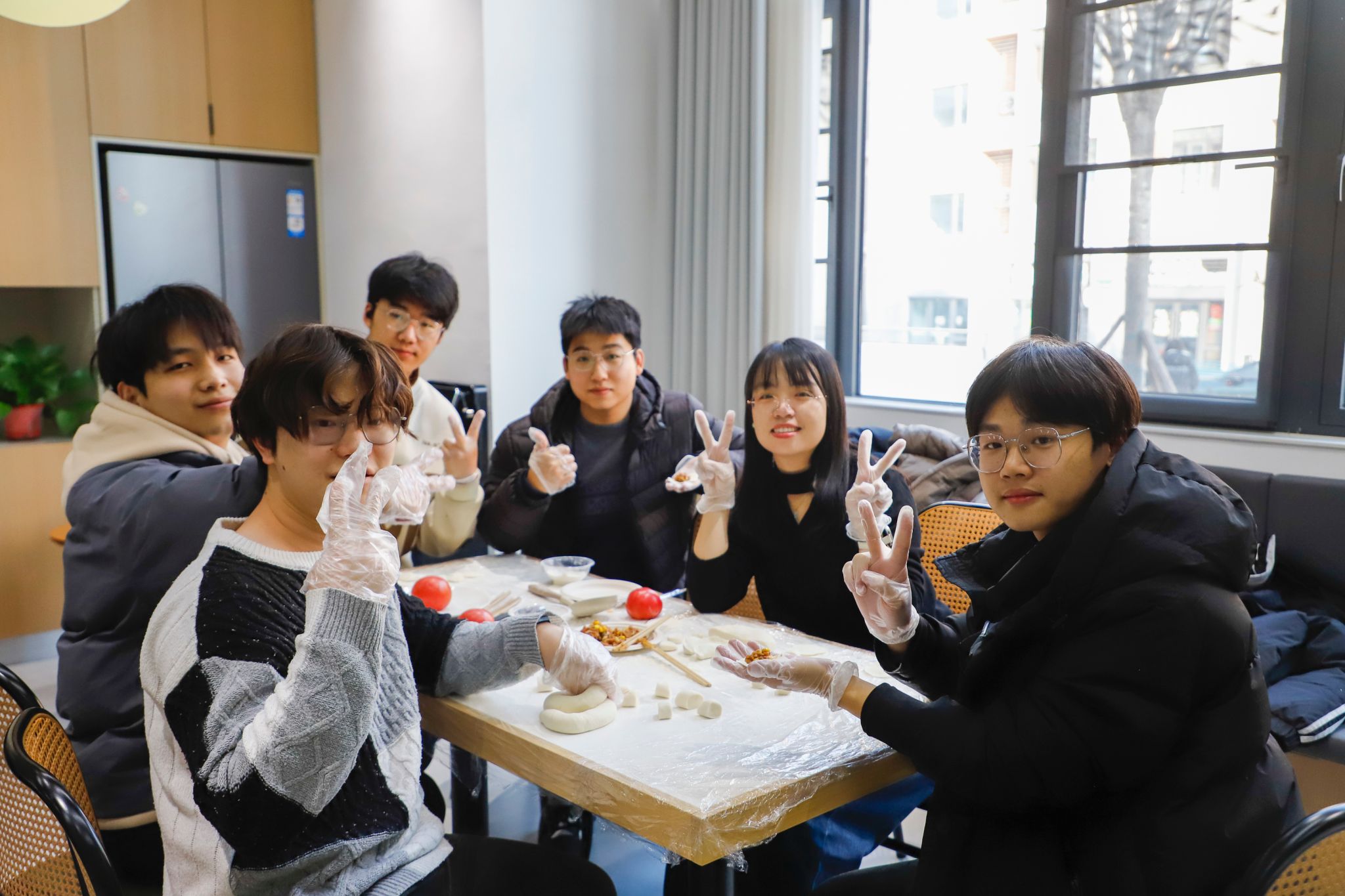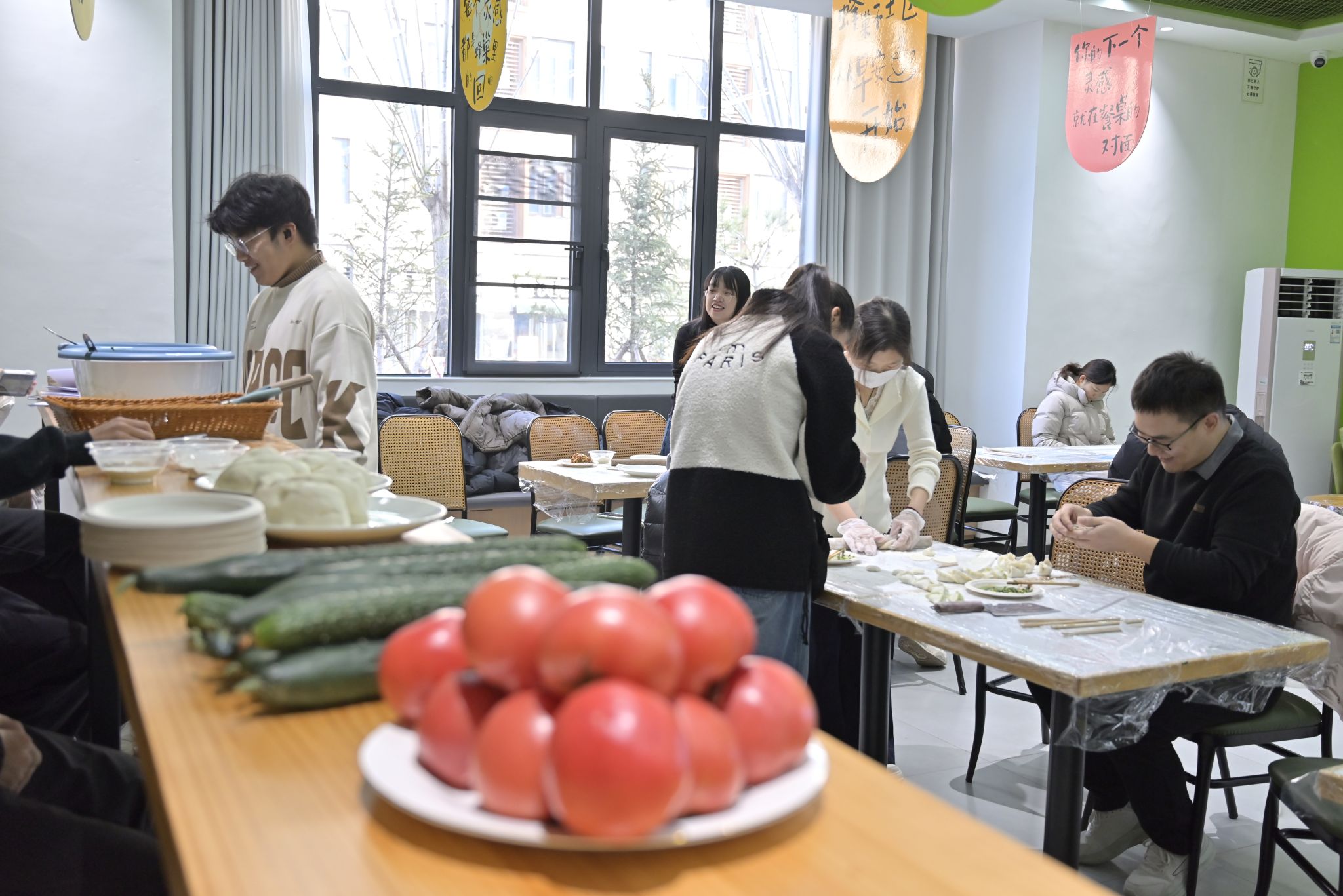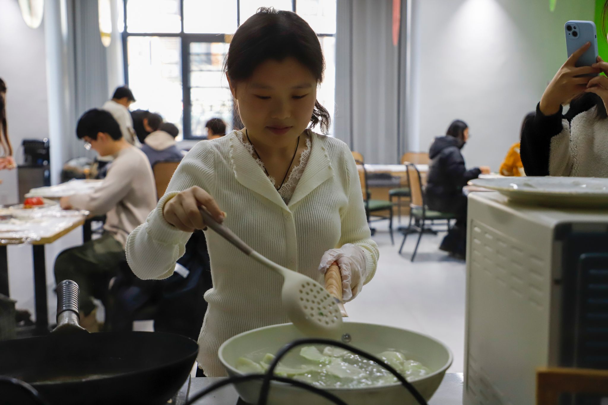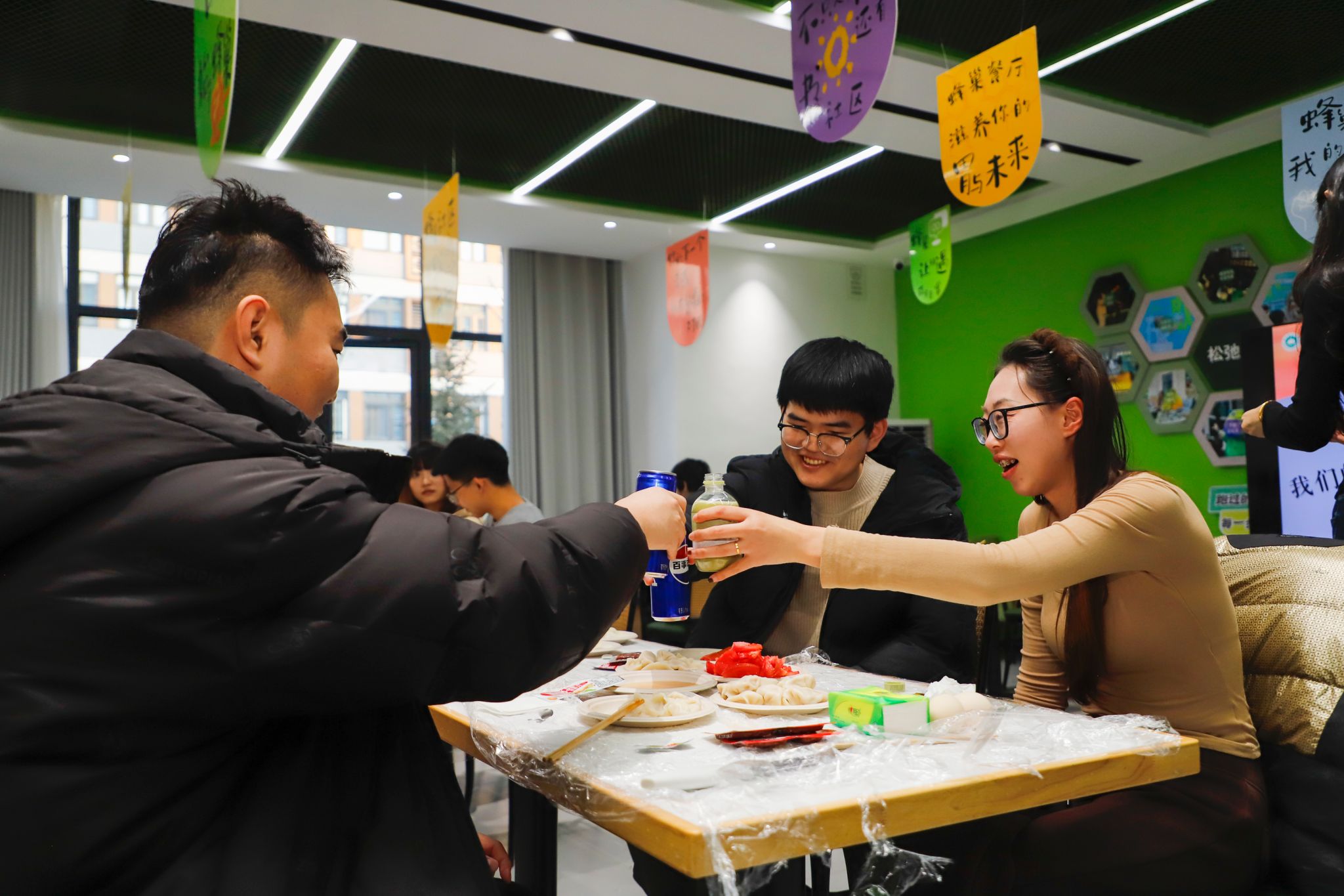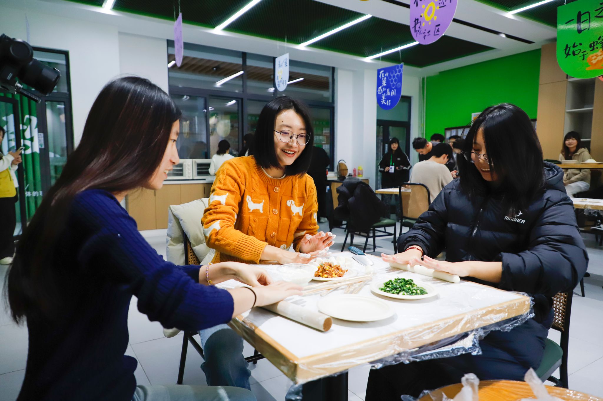 在“大富翁”游戏中抽中“厨房体验券”的师生,带着一丝幸运的喜悦走进了涧谷·共享厨房。大家洗净手,自然地分成揉面、擀皮、调馅、包捏几个小组。来自不同学院、平常或许只是擦肩而过的师生,在这一刻成了配合默契的“厨房搭档”。“你看,我这个像不像元宝?”“你那边馅儿漏啦,我来帮你补一下!”轻声的交流、偶尔的笑声,和锅里咕嘟的水声交织在一起。原来,一起动手做一件事,能把陌生的距离揉进面团里,把轻松的笑语包进馅料中,在氤氲的热气里,悄悄结下一段温暖的、属于“我们”的成长印记。