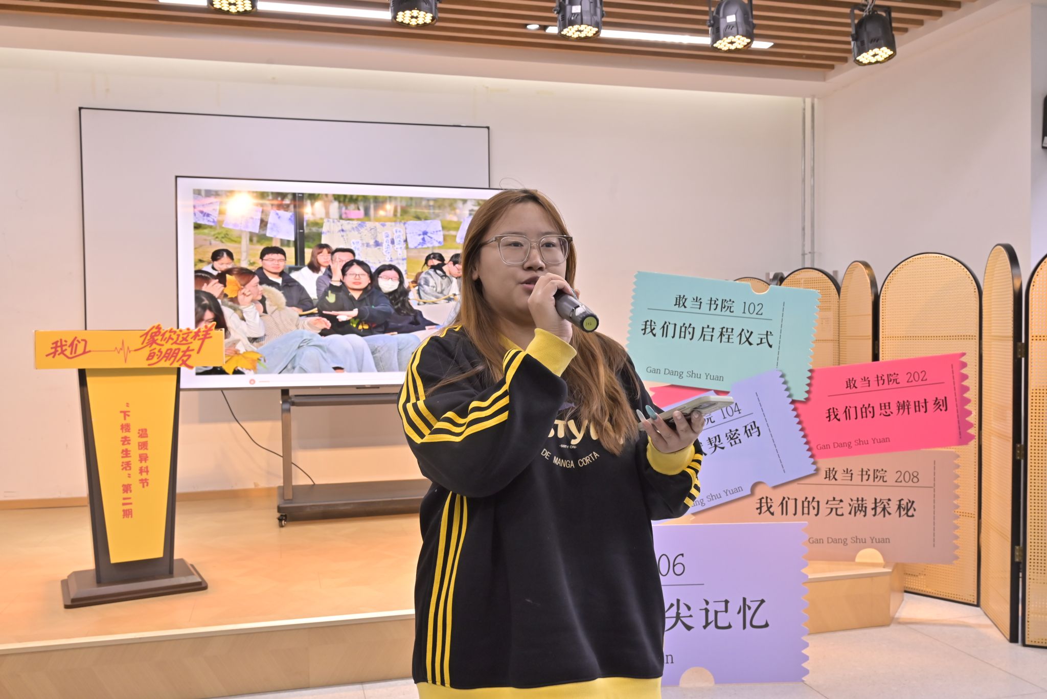 在敢当书院师生共膳厅(102),一场以友谊为名的旅程在暖意中缓缓开启。灯光渐暗,一则《朋友的一天》短片让时光倒流——那些一起走过的长廊、并肩讨论的深夜、餐桌上忽然的笑语,都化成荧幕上的片段。随后,五汶书院/艺术传媒学院的杜涟漪走上台前,《像你这样的朋友》的旋律如溪流般淌出。有人跟着轻轻哼唱,有人举起手机记录这一瞬的温柔,空气里仿佛也浮动着无声的共鸣。“项目发布”和“项目亮相”环节不再是往常那种严肃的宣介,而更像是递出了一份份温暖的邀请函,邀请大家在更长的时光里,继续做彼此成长的见证者与同行人。一段关于“我们”的故事,就这样自然而然地,开始了。