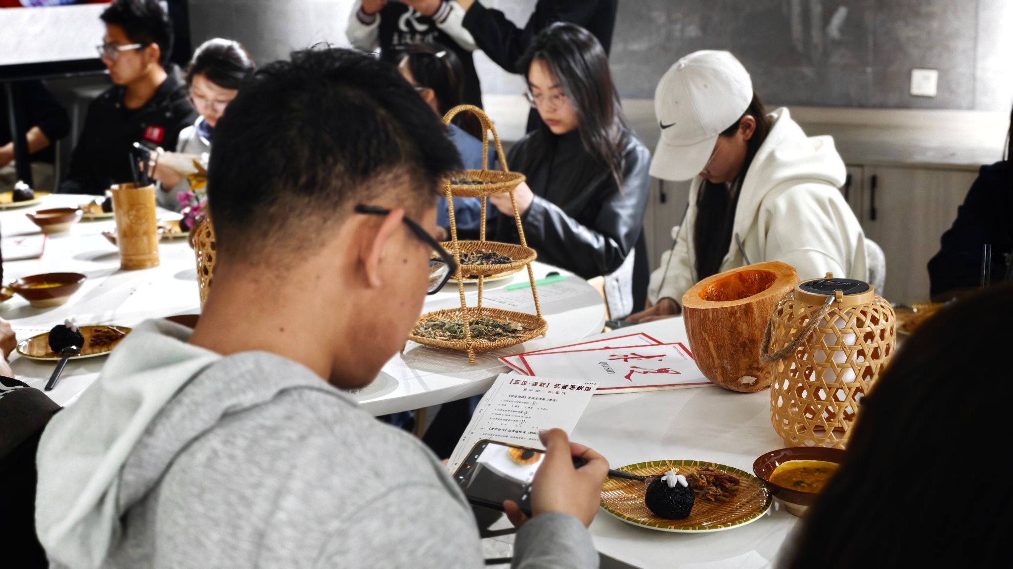 此时,桌面上红米饭旁摆着春日野花,南瓜汤里搭配着时令蕨菜。有人吃得慢,一口饭一口汤,像是在认真分辨什么;还有人把饭和汤拌在一起,搅了搅,大口扒进嘴里,嚼着嚼着,动作慢了下来。没有人催,没有人赶,大家就这么安静地吃着,像是在用一顿饭的时间,陪先辈走了一段路。