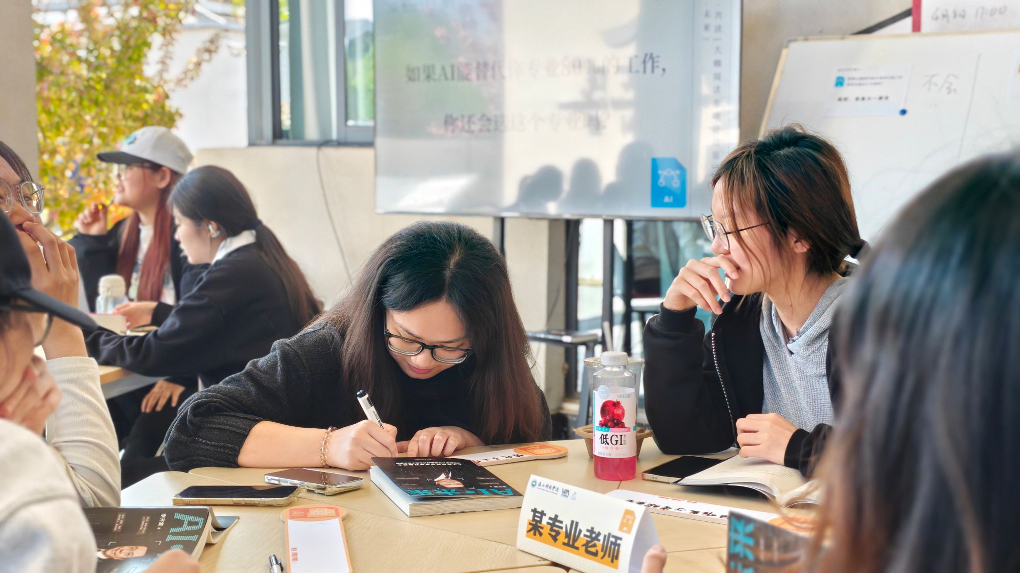 最后五汶书院发展导师刘珊,看着满白板大家的答案说“今天没有标准答案。有人选了‘会’,有人选了‘不会’,有人还在犹豫,这本身,就是AI给不了的东西。”