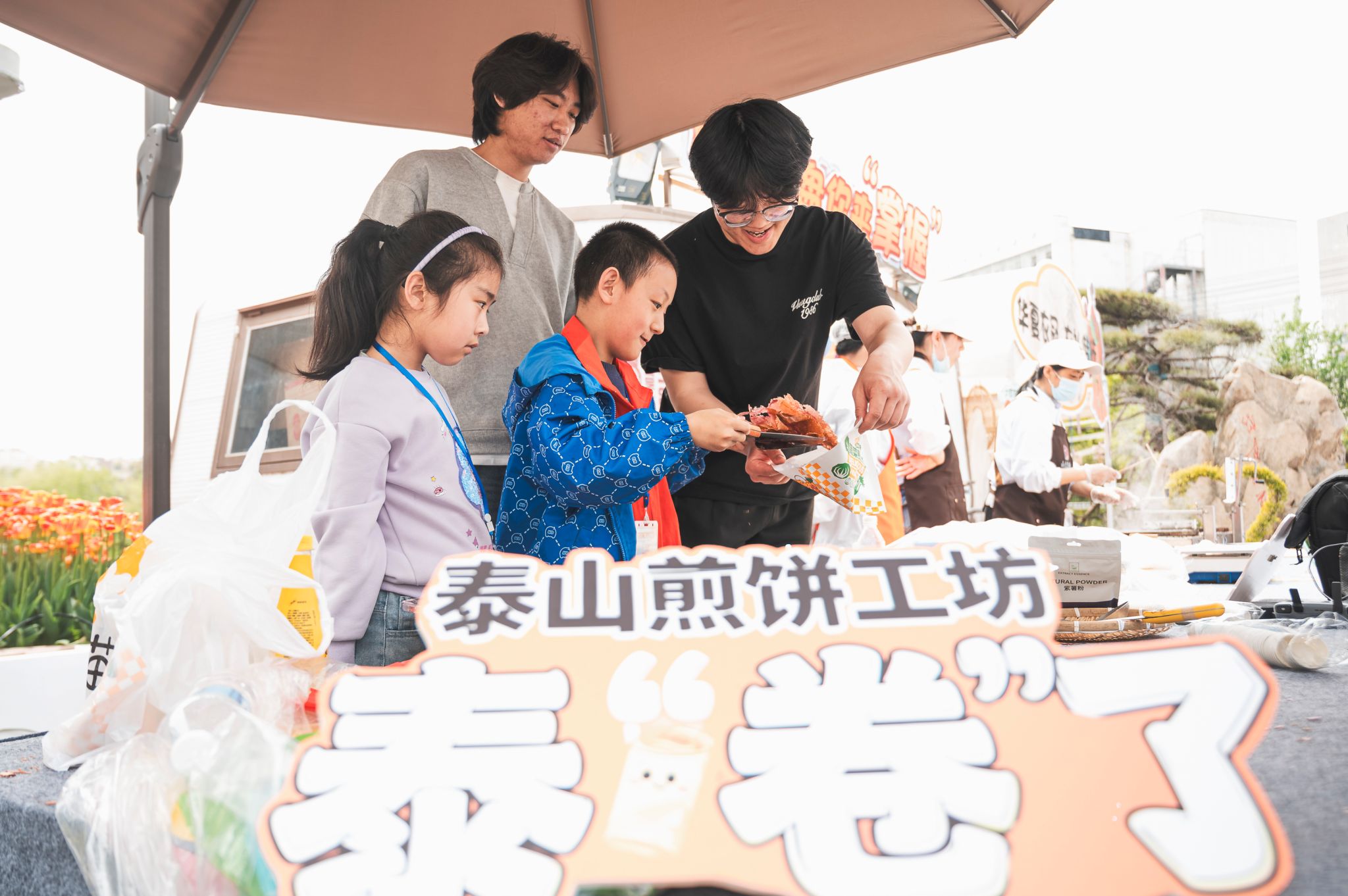 随后,禾下乐坊的柴羿成同学带来《上春山》,悠扬的旋律裹挟着春日的暖意,流淌在泰山脚下的美食海洋中。