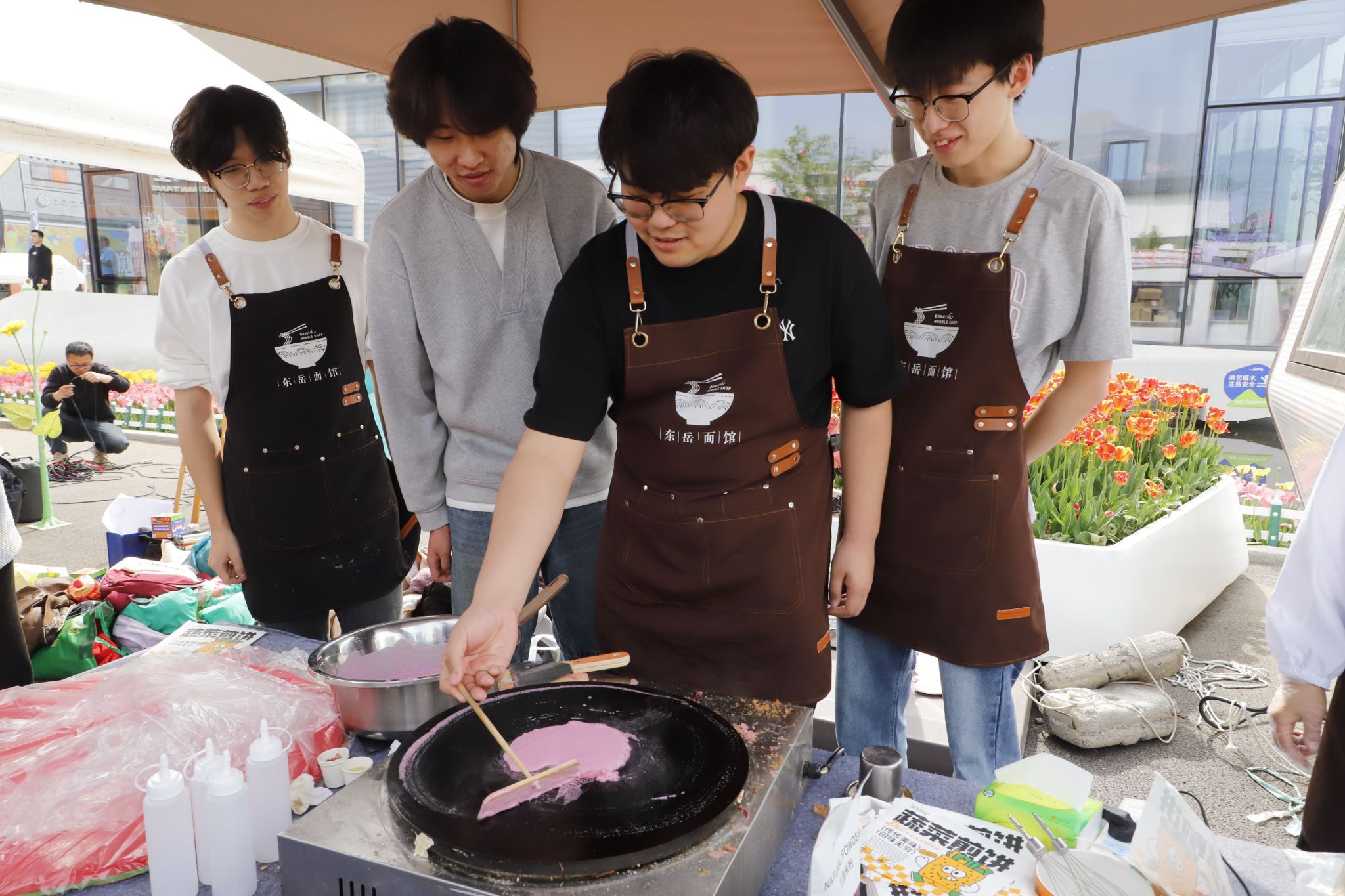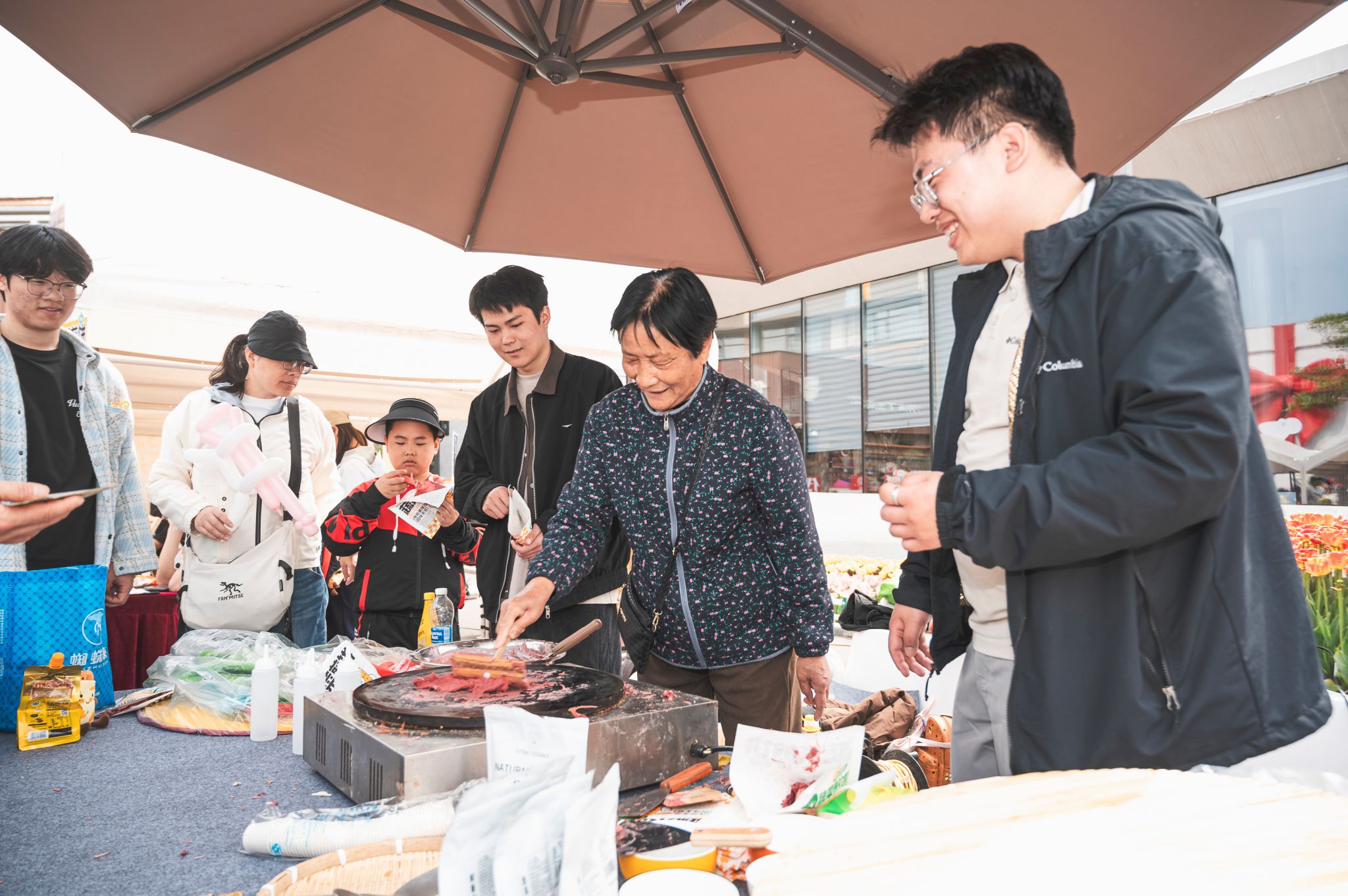 4月11日,山东煎饼嘉年华在泰安岱青水蓝文商旅街区正式开启,泰山科技学院2026泰山·大学生煎饼文化节全面参与其中,以一张煎饼为媒,集中展示了泰科在助力地方特色产业发展、非遗文化传承、劳动教育实践中的成果。泰安市相关领导、市民游客及学校师生代表共计6000余人齐聚现场。