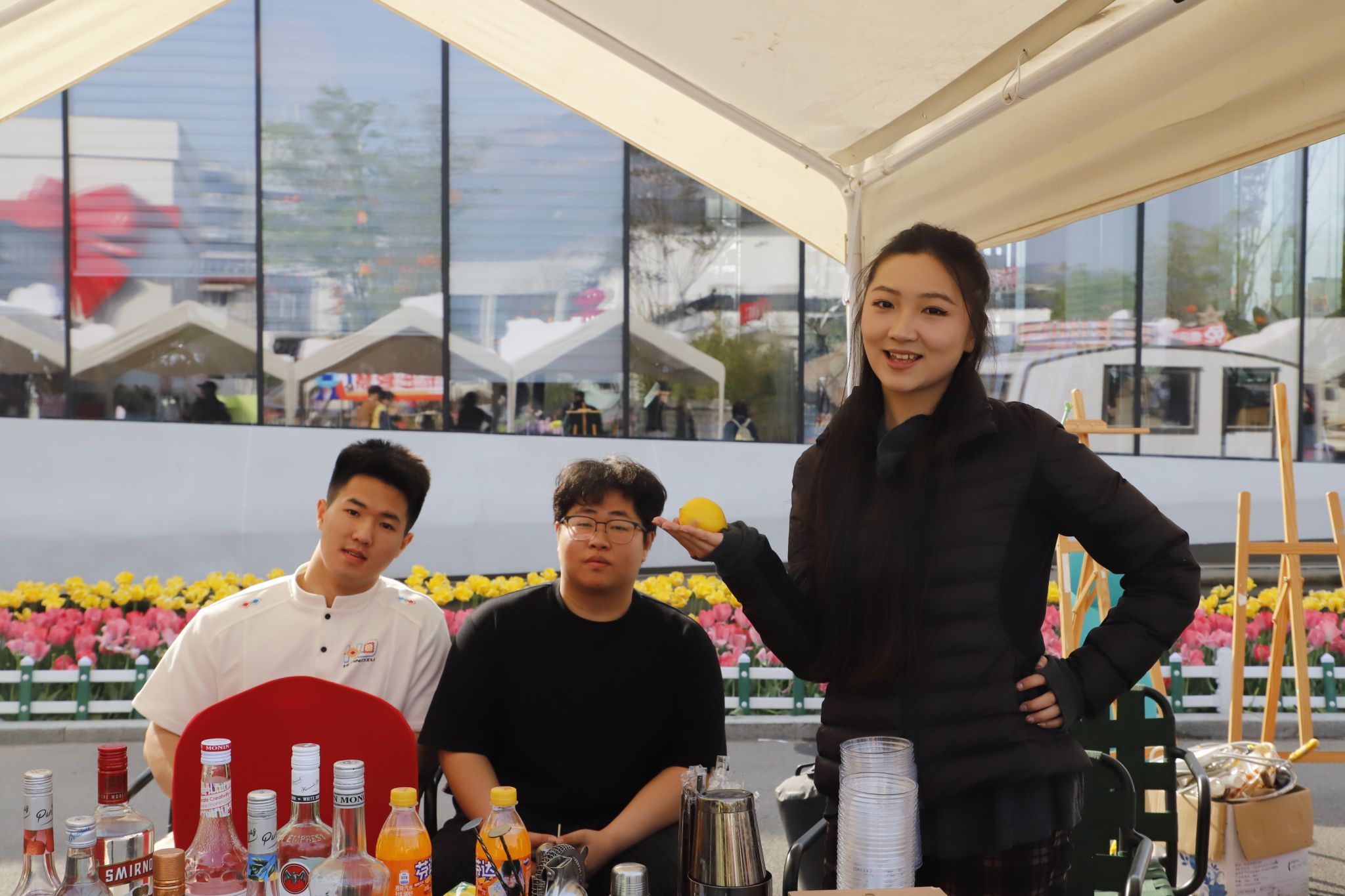 “今天作为微醺工坊的一员,来到煎饼文化节现场。开幕式刚结束,游客们就涌了进来,一个个又好奇又热情。调酒本来是单独的饮品,煎饼又是山东人再熟悉不过的主食,我们把这俩毫不相干的东西凑在了一起。对游客来说,这个组合确实新鲜,所以摊位前很快就围了不少人,都想来试试看。看着大家围在摊位前,一边好奇地打量,一边笑着点单,我心里也跟着热乎乎的。这种混搭能被这么多人接受,挺让人开心的。”
