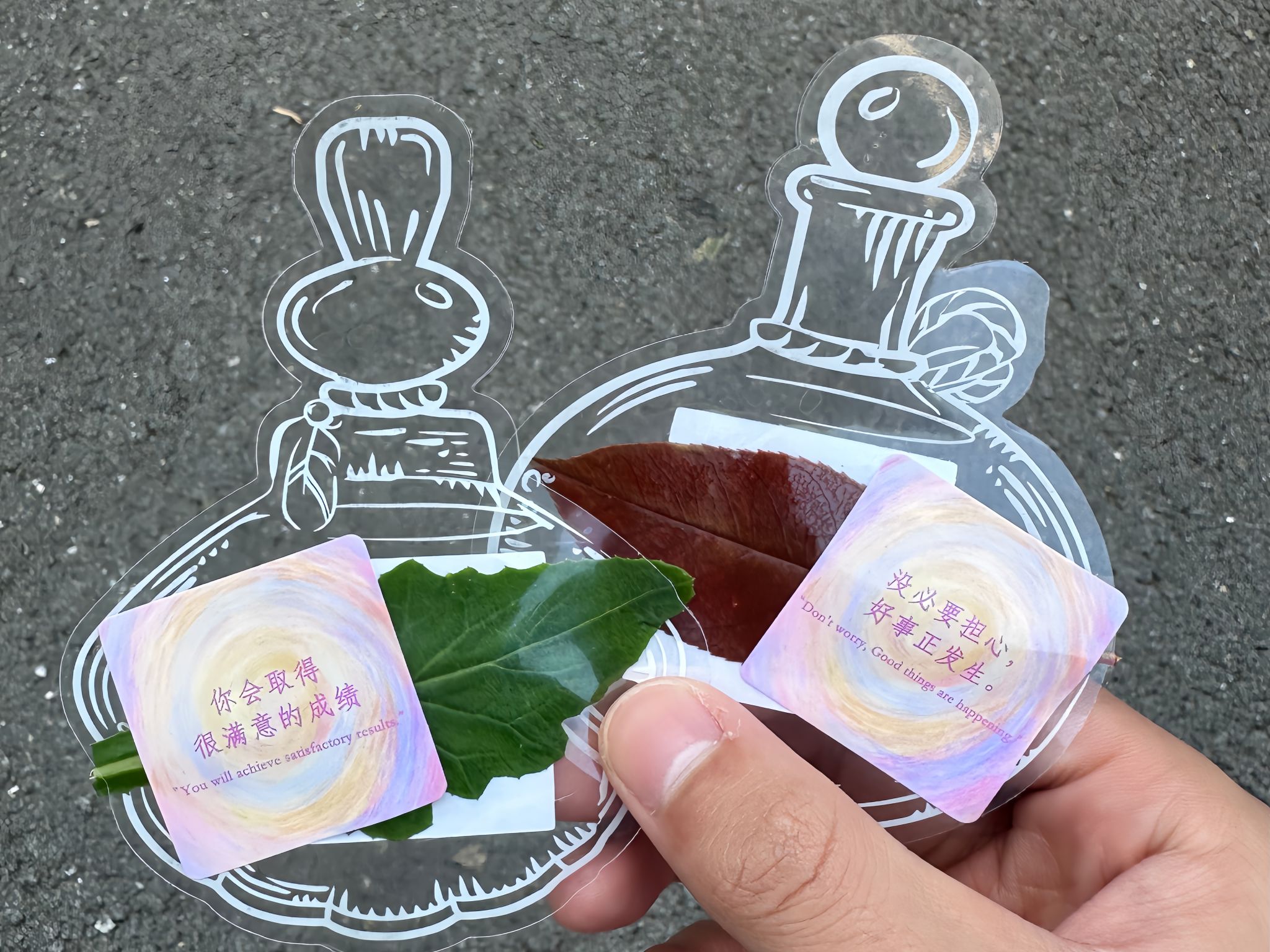 当塑封膜里的花朵渐渐定格成固定的模样,现场多了一份温馨的仪式感——同学们拿起彩色便签,写下想对自己说的话,轻轻贴在标本罐外侧。“下次赶due烦躁时,就看看这罐花,想起今天慢慢做事的感觉”“希望这束干花能陪我走过这个学期的每个难忘时刻”“以后每遇到一件开心事,就来给它换个新的装饰贴纸”……这些带着温度的文字,和罐中的干花相互映衬,成了大家与自己、与生活的暖心约定。