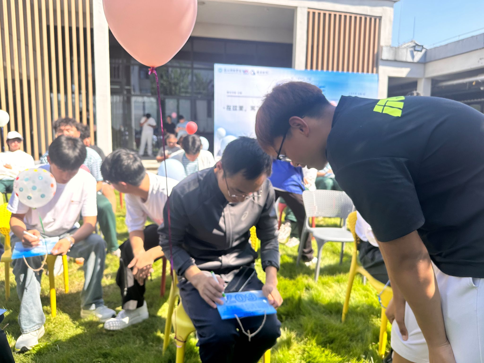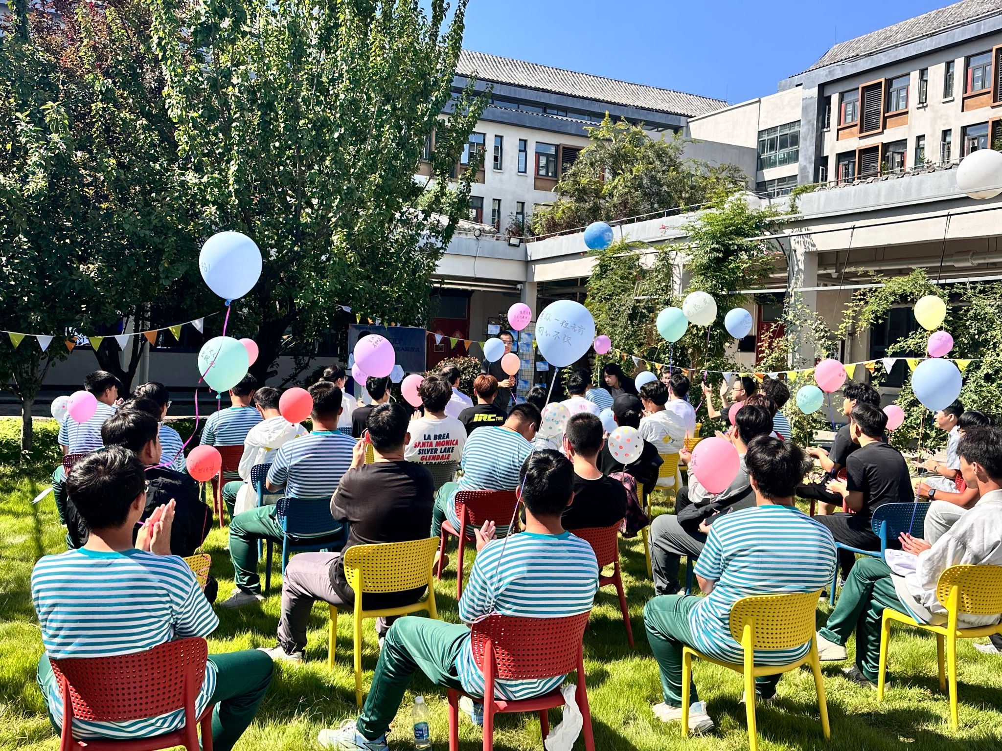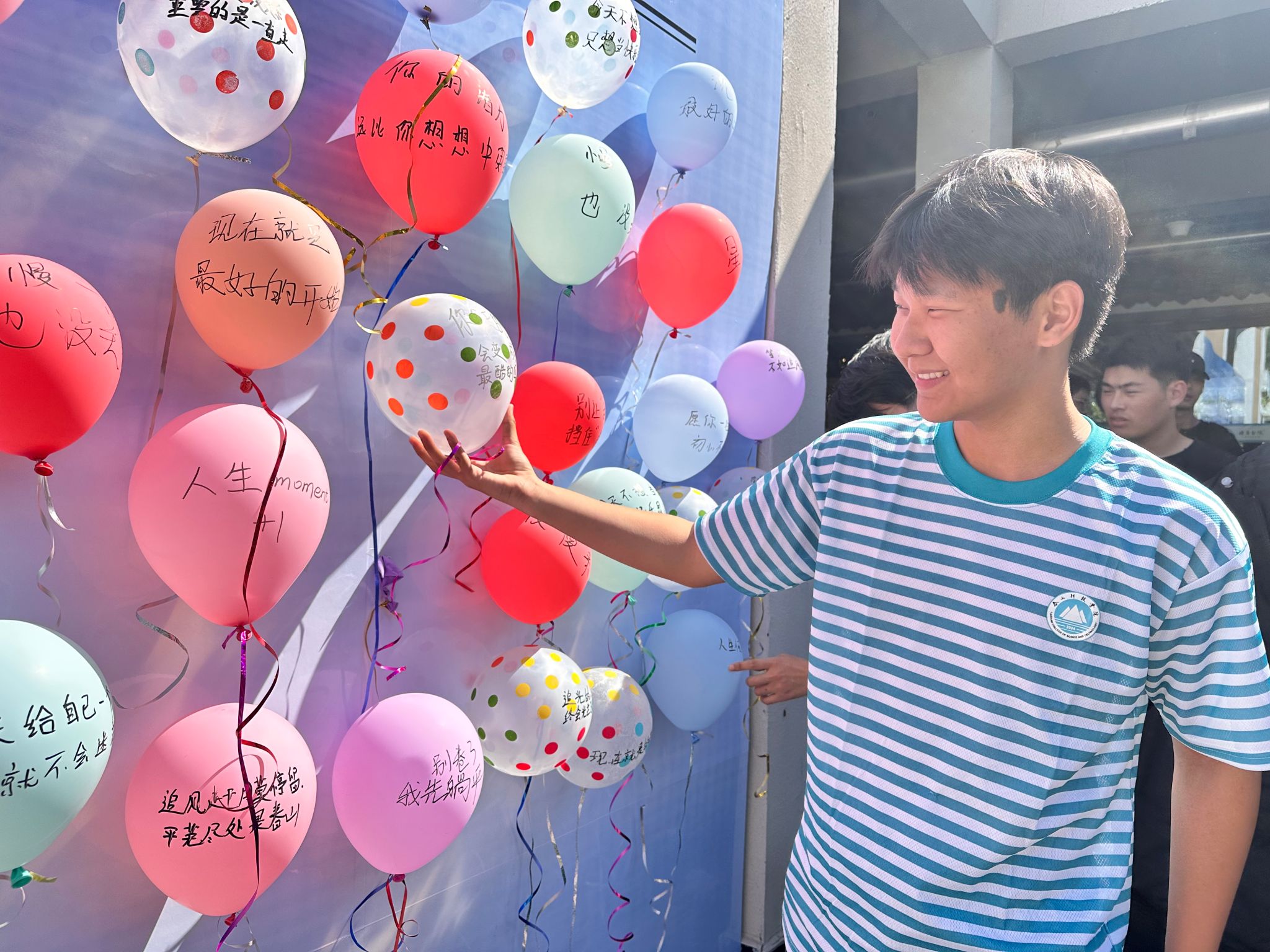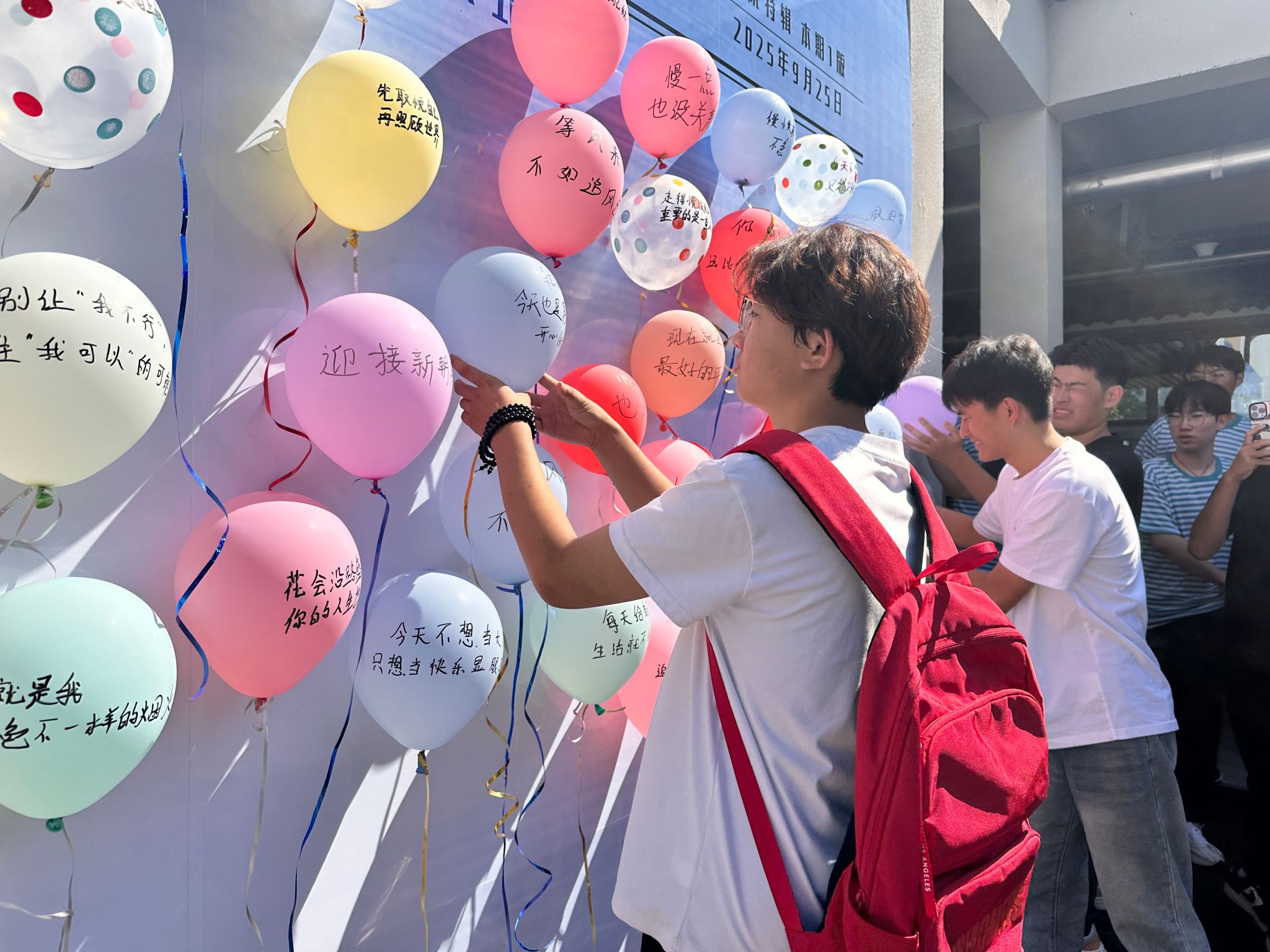 家的温暖,不仅在于接纳,更在于共同创造。在轻快的音乐中,同学们起身取下一份特别的“瞻岩限定”入院礼,共同在宿舍门牌上创作出专属标识,让这份宿舍铭牌成为书院时光的第一个温馨印记。活动尾声,全体师生共同拿起那支签有自己名字和期待的气球。“三,二,一,放!”随着口令,无数色彩斑斓的气球同时升空,承载着每位瞻岩青年的梦想与祝福,飞向广袤的天空。此刻仰望的,是星光、是梦想、是无限可能的未来,也希望三年后的瞻岩青年们,回望今天,能扬起一抹如初的微笑。