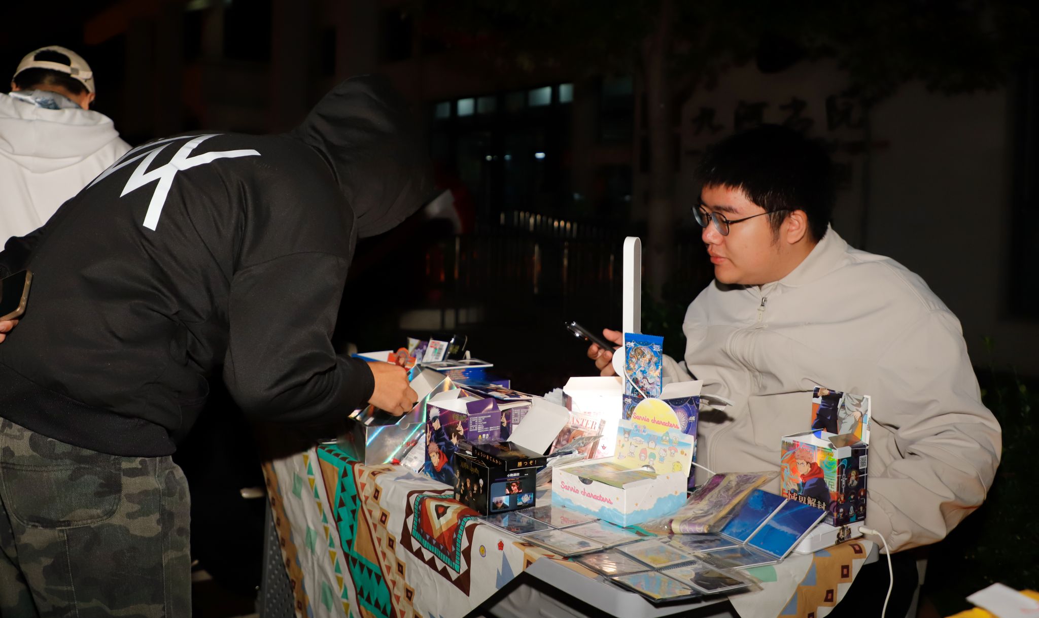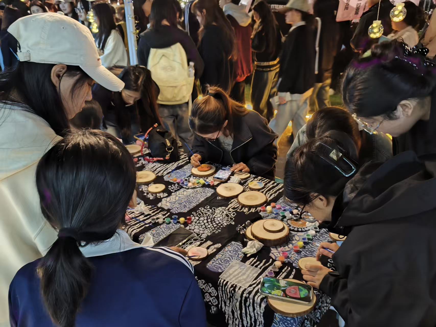 “这是我自己做的中药香囊,大家快来看一看吧!”“我可以用陶瓷手串交换你的植物手绘吗?”同学们通过物物交换,让闲置焕发新生,传递背后故事,联结彼此情感,让自由易物区成为有温度的创意空间。后备箱集市区全生异科导师们带领同学们化身“摊主”,摆摊陈列、吆喝叫卖,开启真实创业实践。我们交换的,不只是物品与创意,所有微小的互动,都像一根无形的线,将同学们与每件物品、每段故事温柔地联结在了一起。