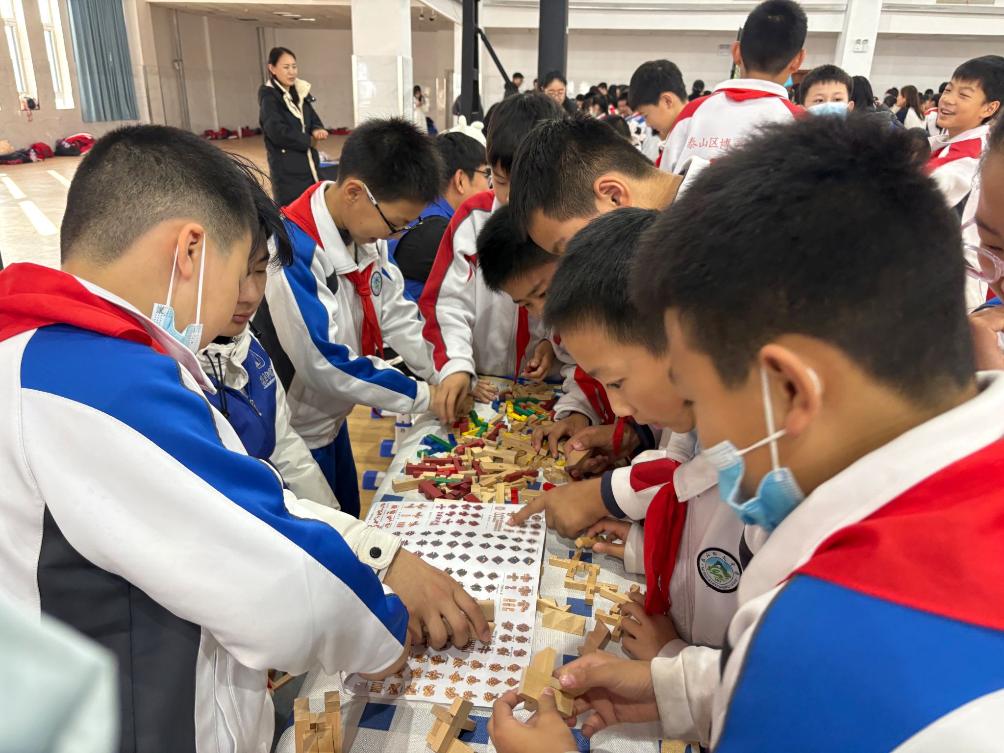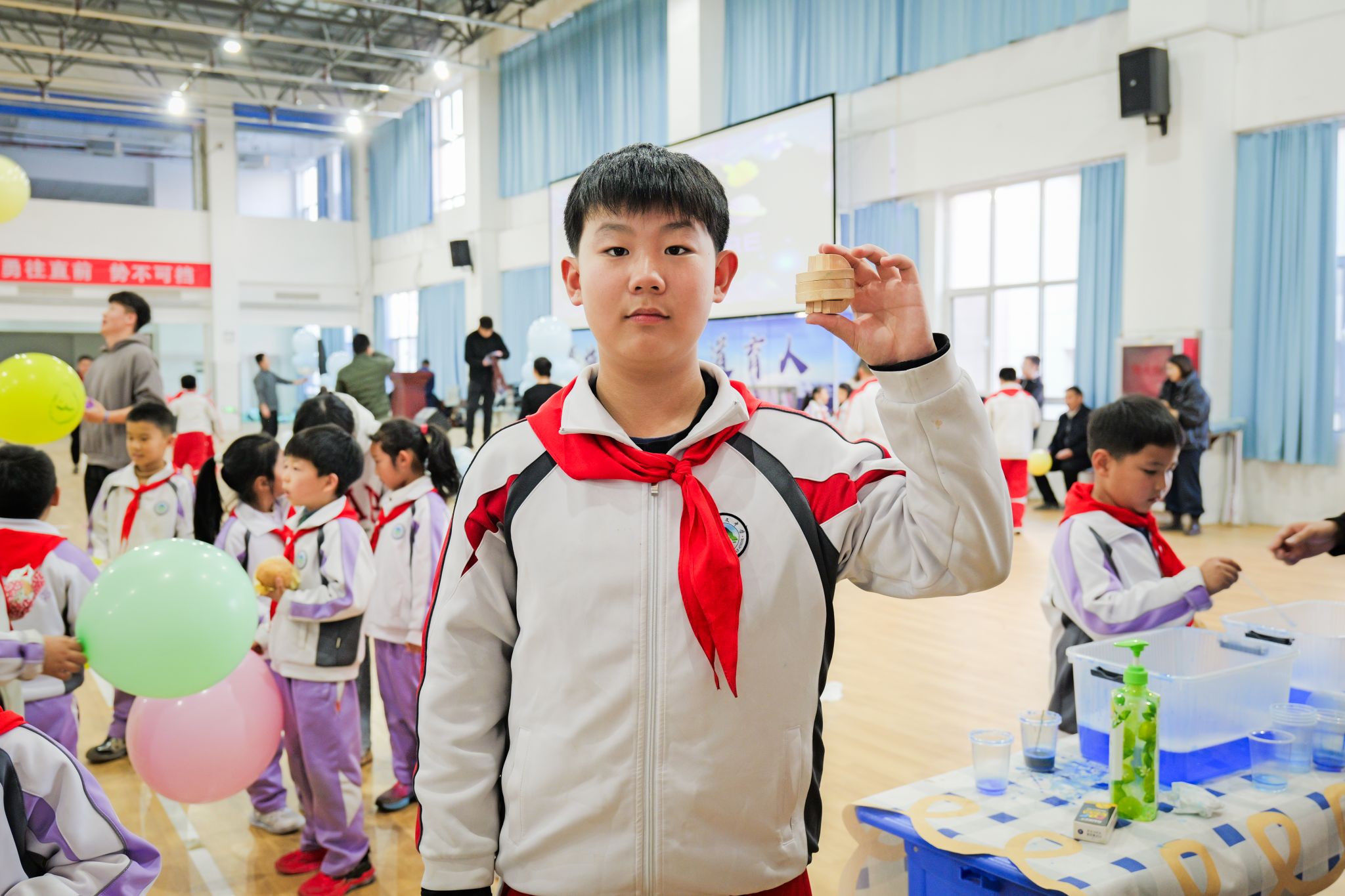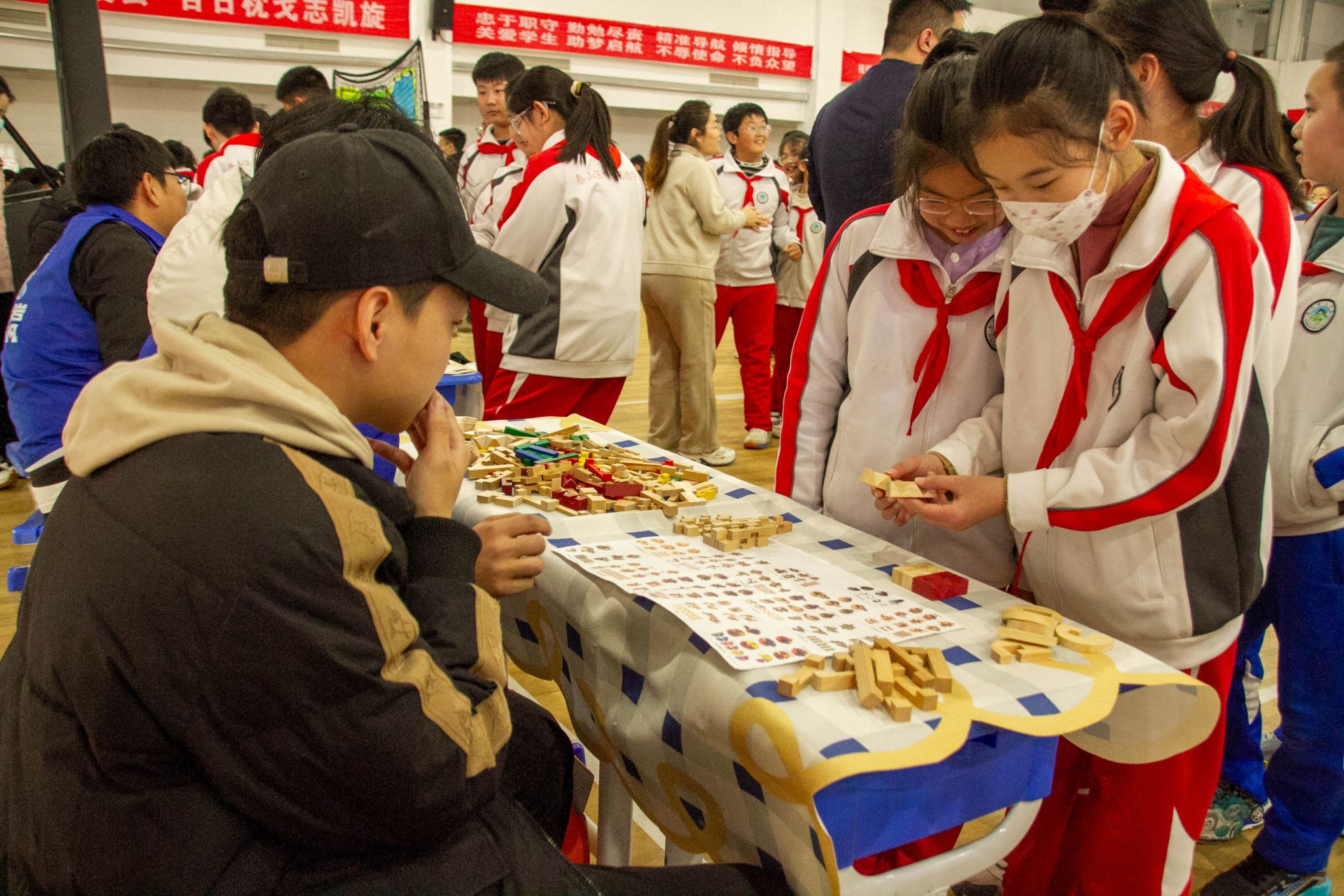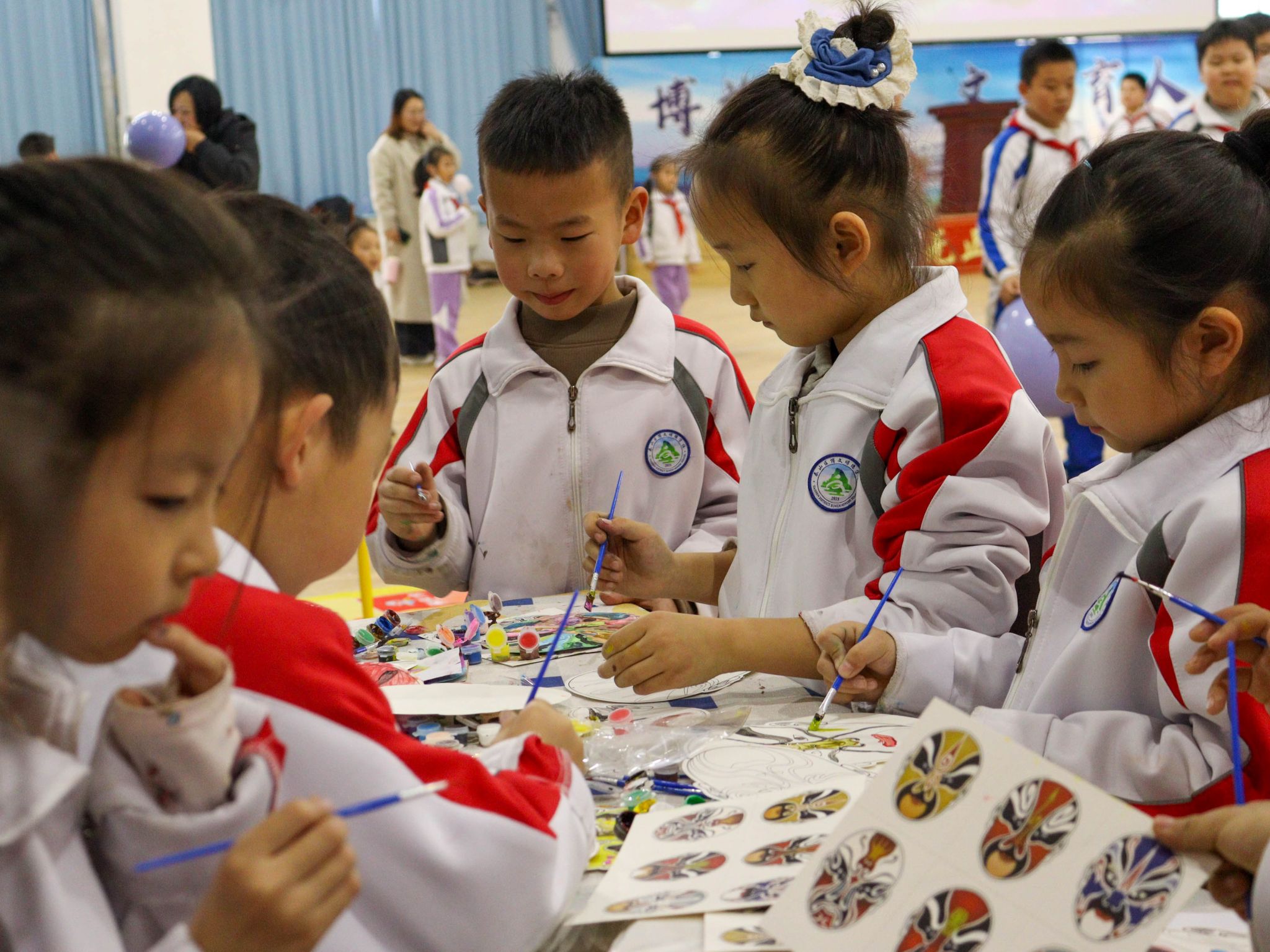 传统智慧区弥漫着专注与沉思,鲁班锁的榫卯咬合间,古人的空间智慧在孩子们小心翼翼的拆解中悄然复活;“中华脸谱”摊位前,红黄蓝白各色颜料勾勒出忠勇与刚直,千年的戏剧角色在稚嫩笔触中重生。