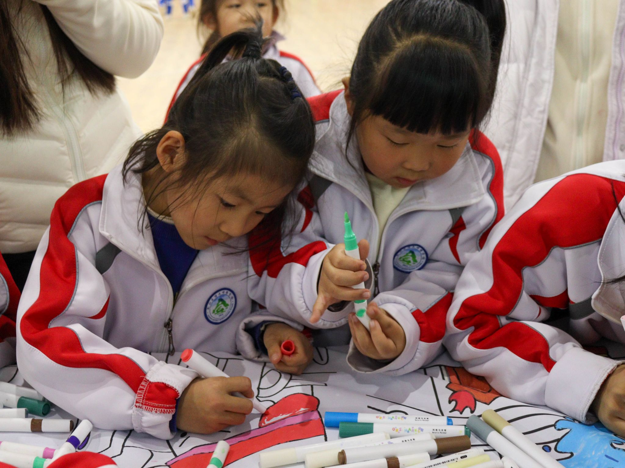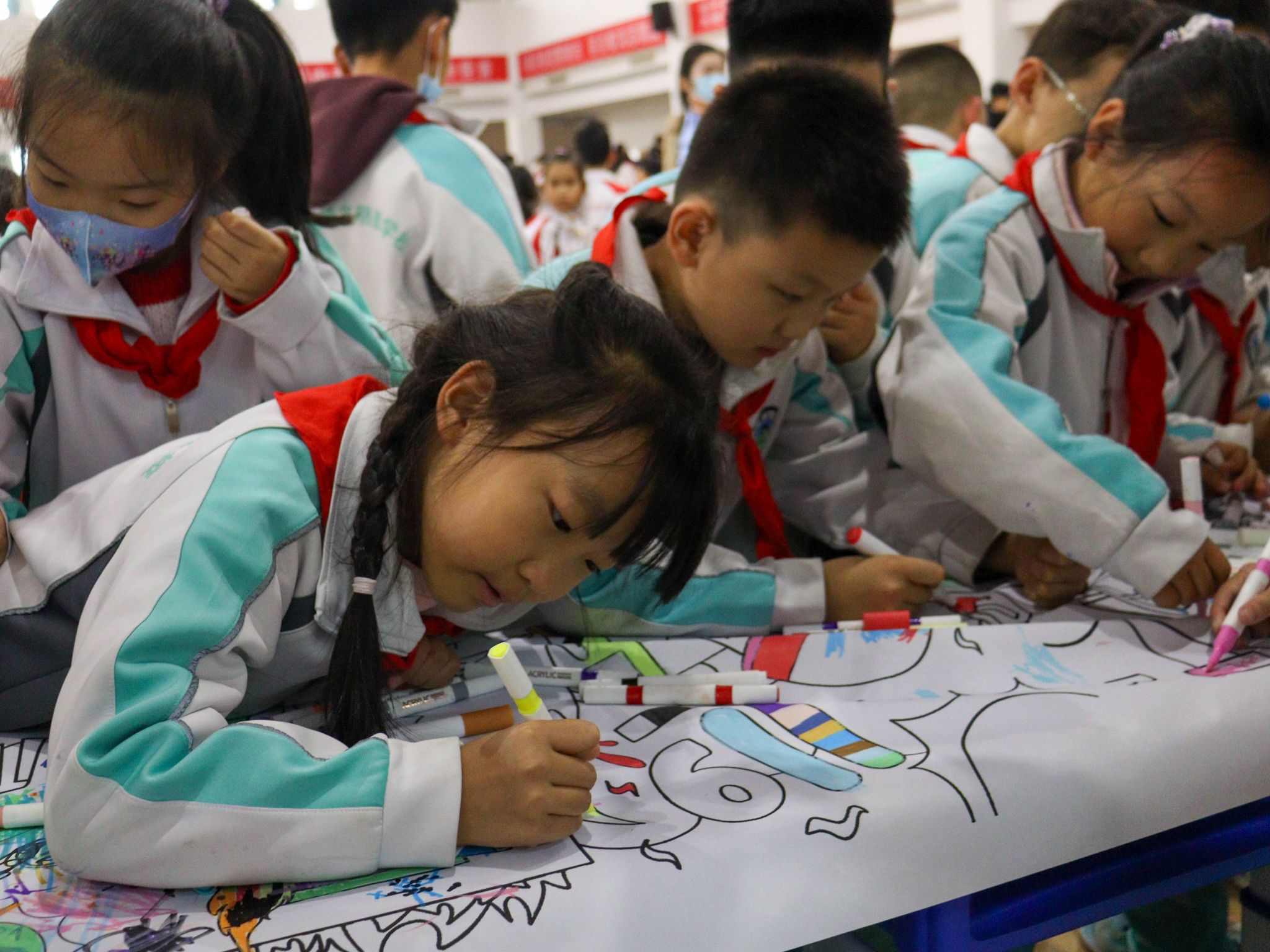 “智安行”专项服务队的志愿者化身安全引路人,将生硬的安全知识转化为一场浸润式生命教育实践。当“消防安全伴我行”主题画完成,每一笔都凝结着安全认知,让安全准则融入童真认知,更将守护生命、担当责任的意识,护佑着一颗颗童心在平安的天地里向阳生长。只此青绿油画棒社摊位成为孩子们的创意天地,想象力是唯一的通行证。孩子们一边绘画一边分享,稚嫩的笔触与大胆的色彩尽显童真童趣。