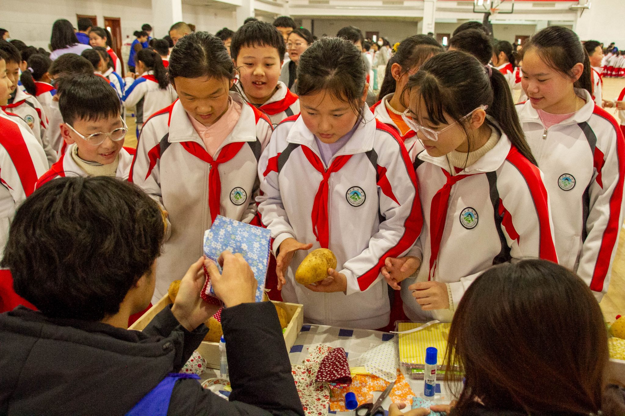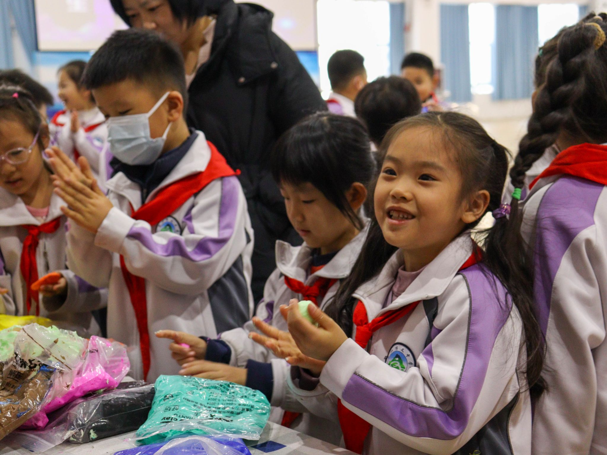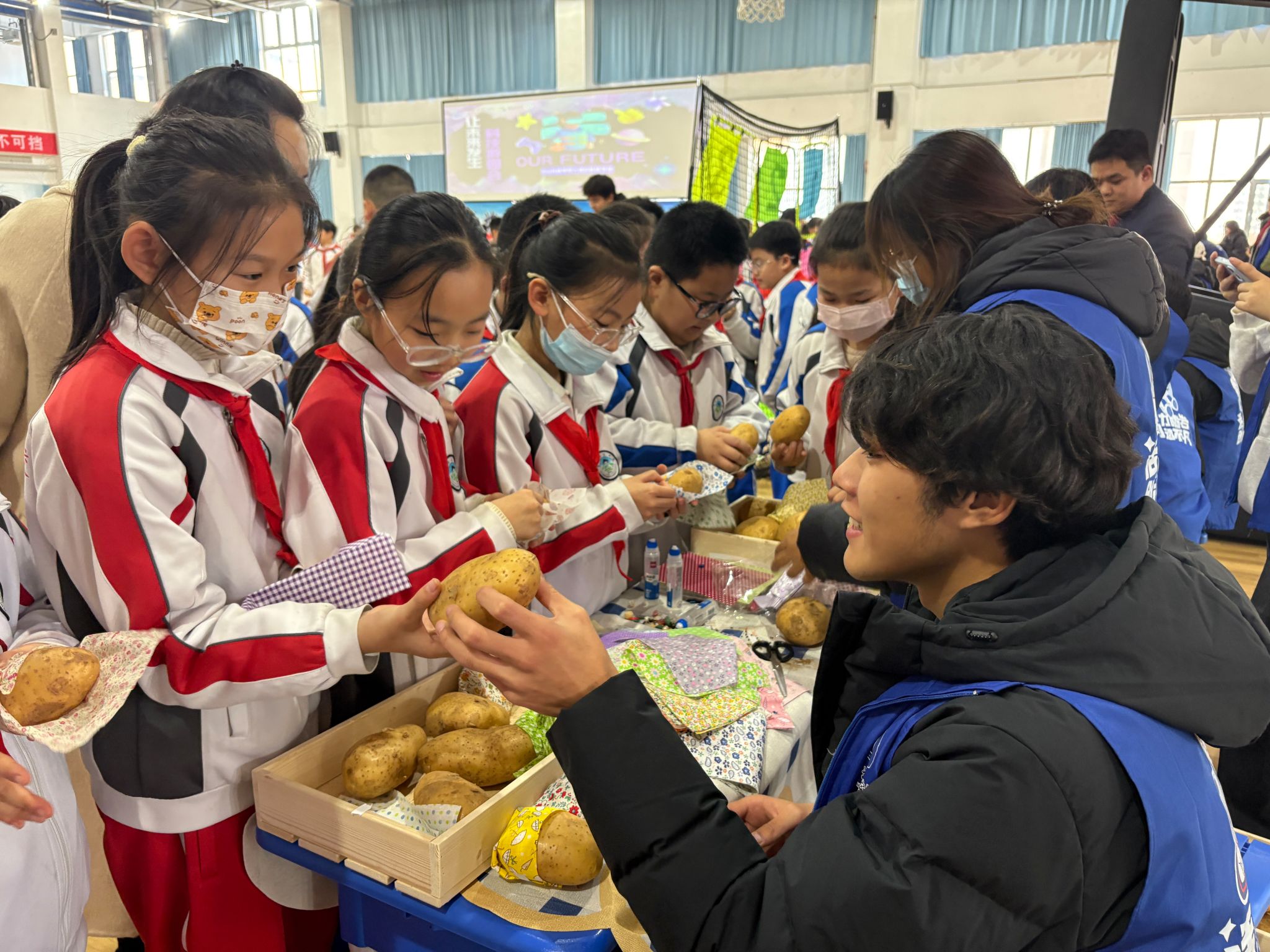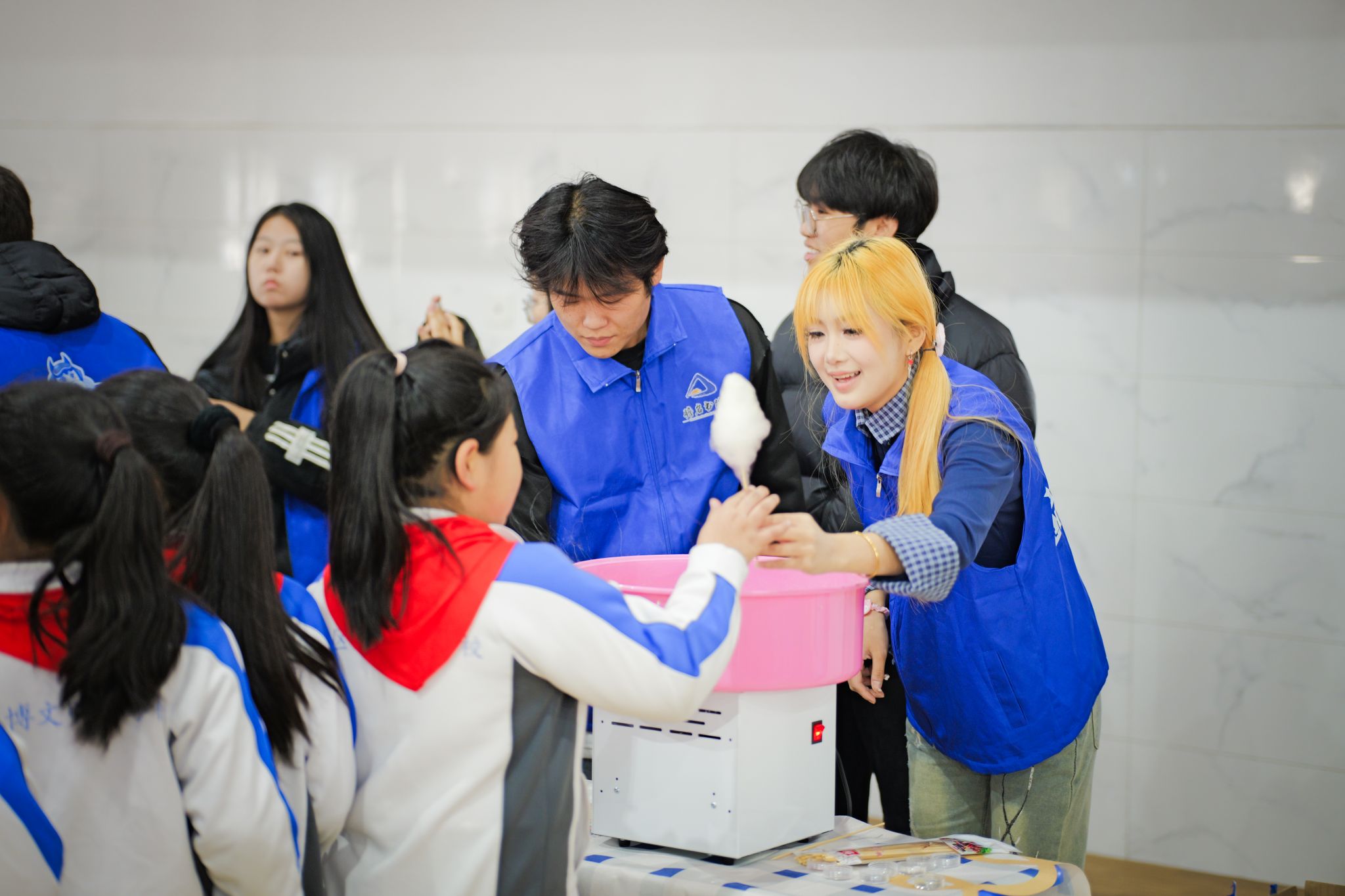 太空泥在揉捏中幻化成奇思妙想的形状,DIY洋芋则为寻常食材披上了充满想象力的华服,动手创造的乐趣亦在此流淌。律动与欢乐则充满了游戏互动区,飞盘划出活力的弧线,桌面冰壶则在方寸之间较量着策略与巧劲,甜蜜的创造也未缺席,棉花糖机旋转出云朵般的彩色糖絮,将动手的成就感化为舌尖的甜意。孩子们在这里不仅体验了现象的神奇,更触摸到了创造的本质,是在专注的指尖下,在跃动的思维中,对广阔世界一次又一次充满惊喜的初探。