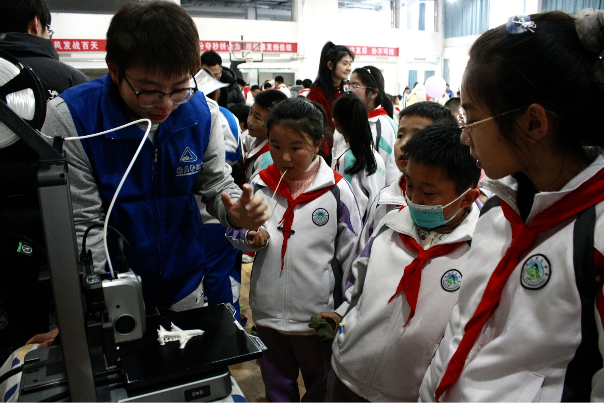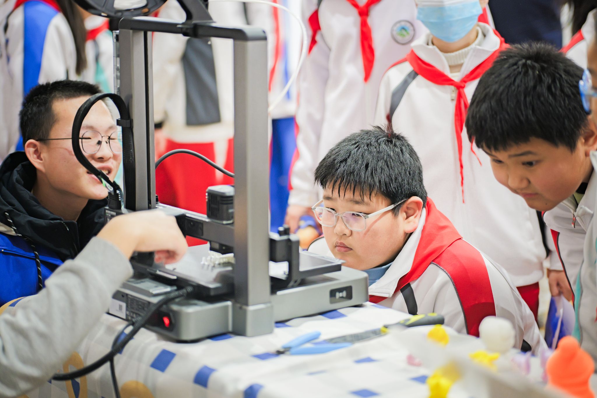 “原来打印出来的小飞机,翅膀真的可以转动!”在3D打印先进制造技术项目工坊,孩子们围在正在工作的打印机旁,目不转睛地看着喷头精准地层层堆叠。志愿者们从材料特性讲到分层制造的原理,用生动的比喻讲解着,当一个个3D打印模型从平台取下,科技的抽象概念也凝结为可触摸的惊喜,让孩子们亲眼见证,任何天马行空的创意,都有创造成型的可能。