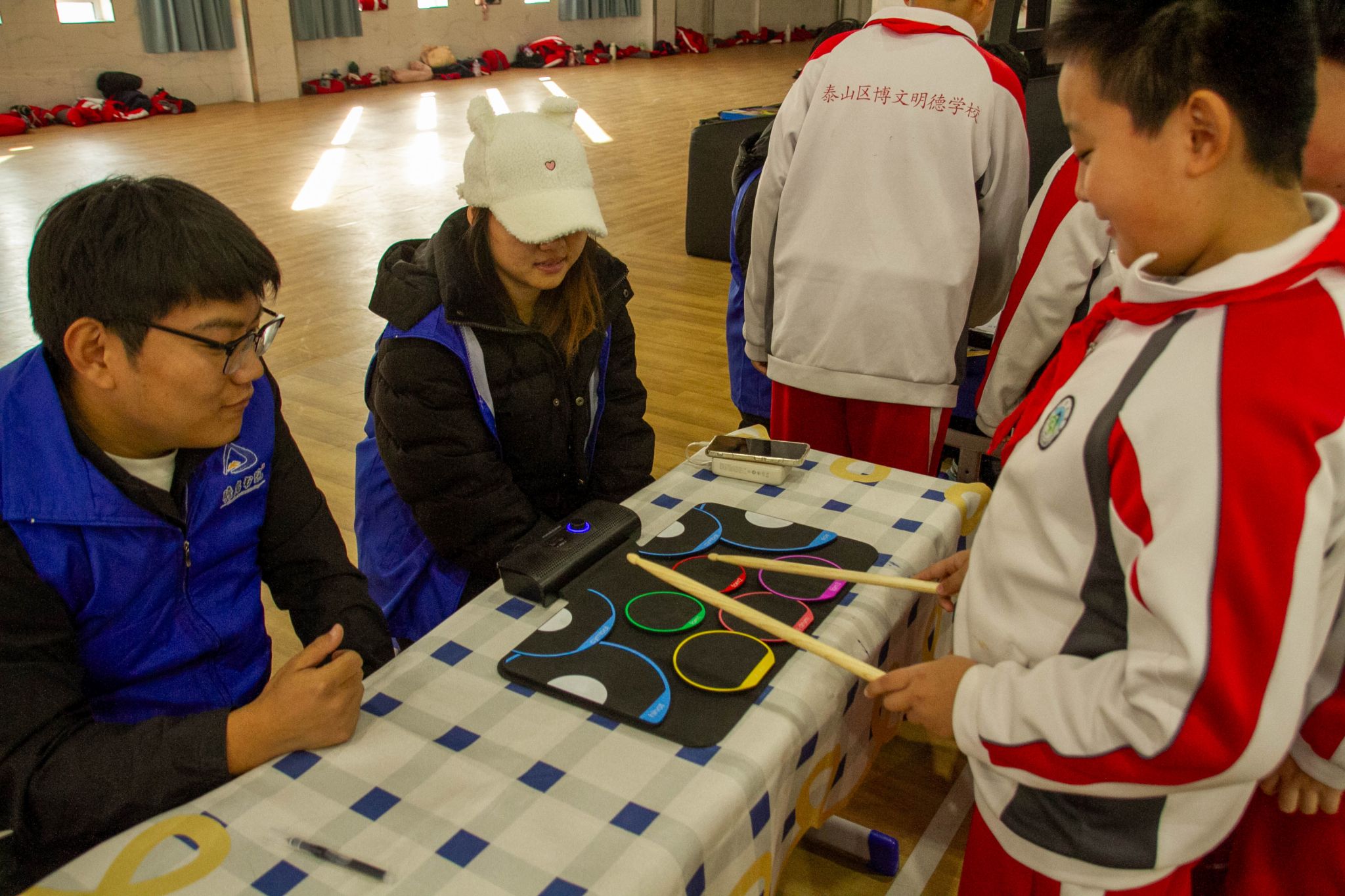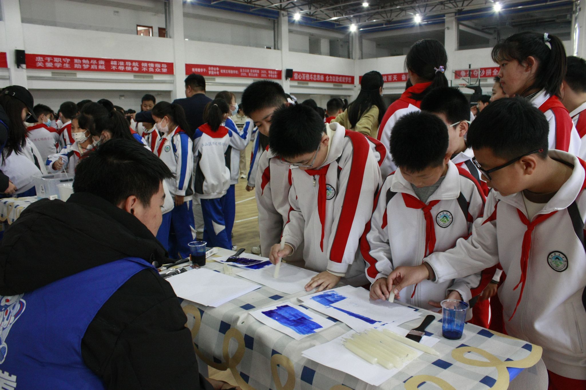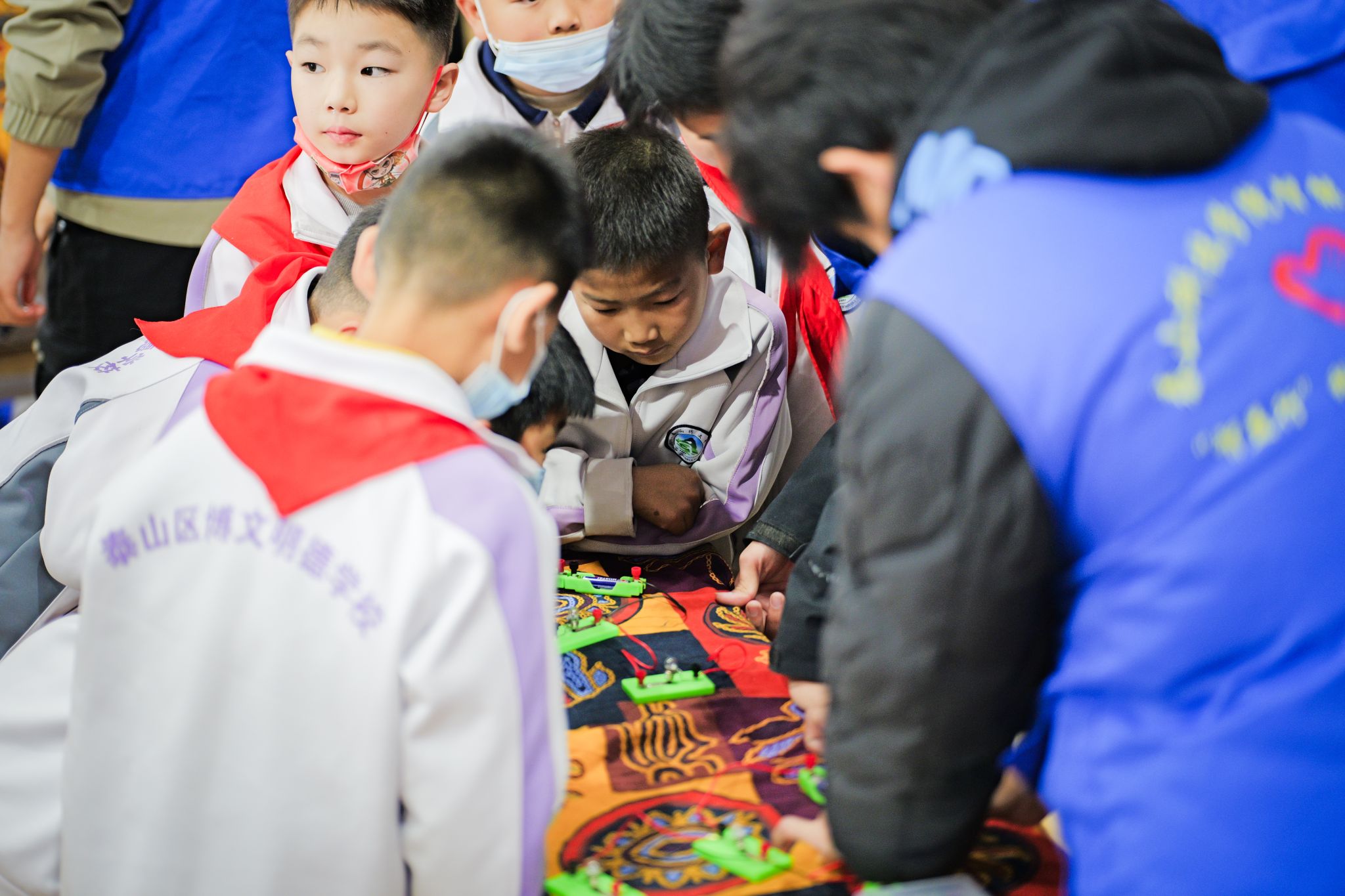 另一边的传统文化体验区,则上演着一场跨越时空的对话。各类体验摊位如同一扇扇通往不同领域的神奇窗口,知识与乐趣在此交织,瞻岩书院“鲁乡塑梦”志愿服务队的同学们讲解原理、示范引导,用耐心与热情点亮每一双求知的眼睛,激发着孩子们最本真的好奇与创造力。