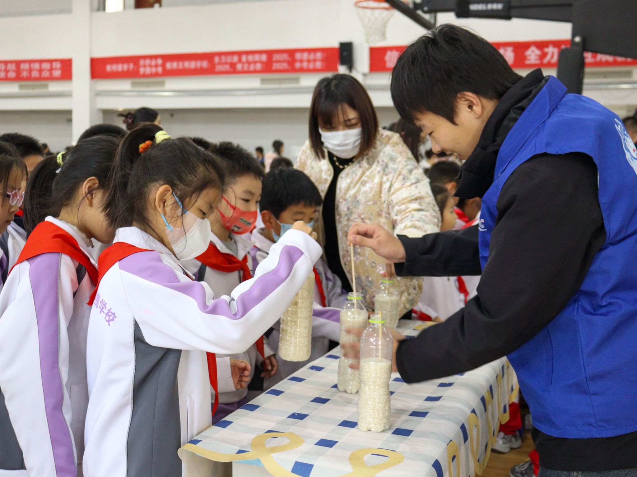 在幻象魔术工坊,“筷子提米”的实验让人屏息凝神,一根筷子如何能提起一整瓶米?志愿者从摩擦力原理讲到颗粒间的相互作用,将看似魔法的现象还原为科学逻辑,完整的科学认知图景犹如一双翅膀,带着孩子们的好奇心,在数字世界与物理世界中自由翱翔。