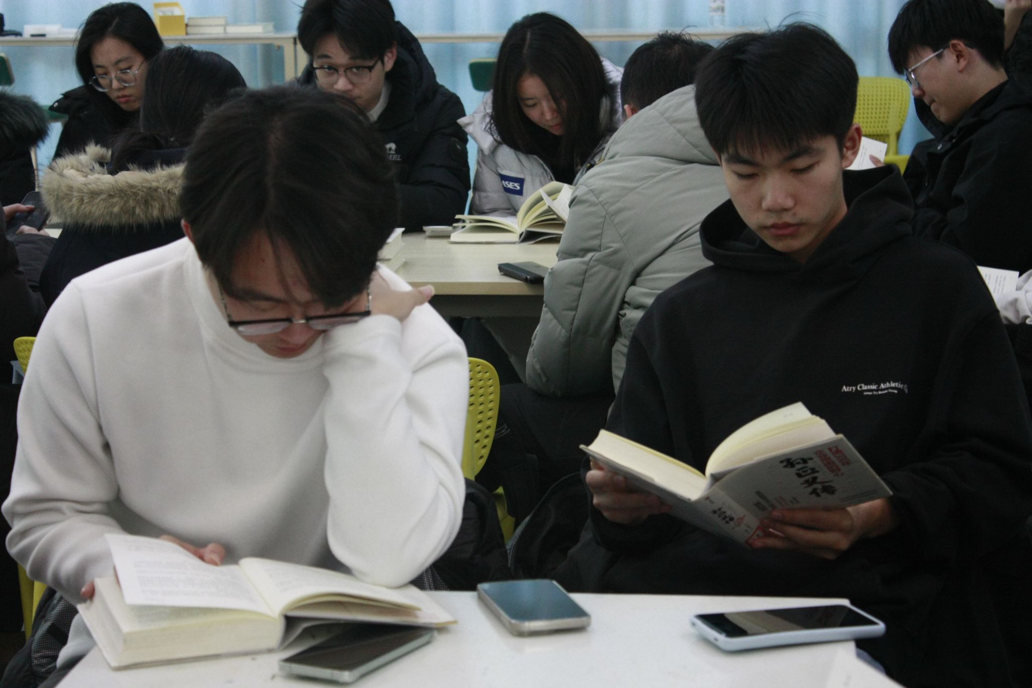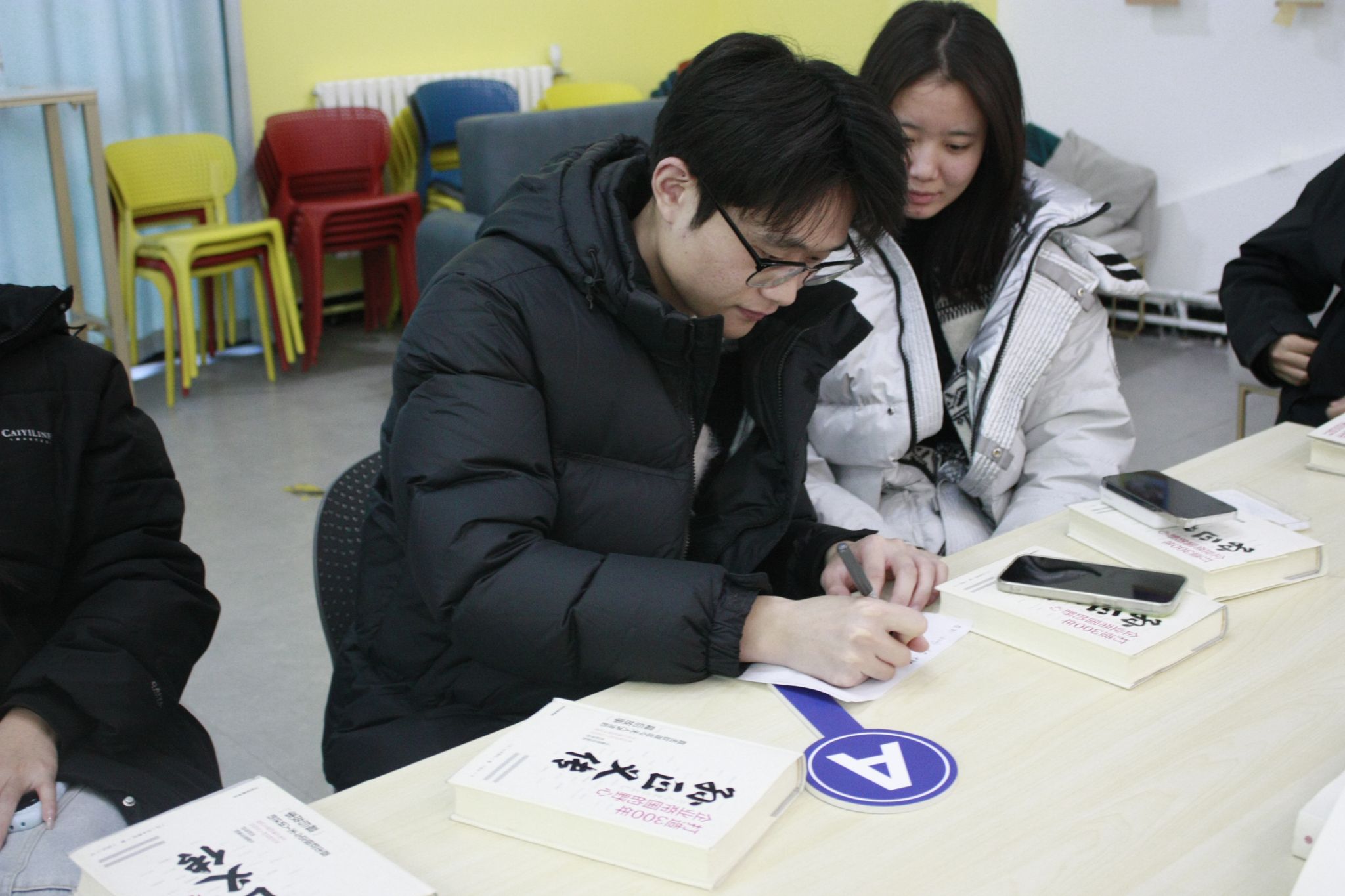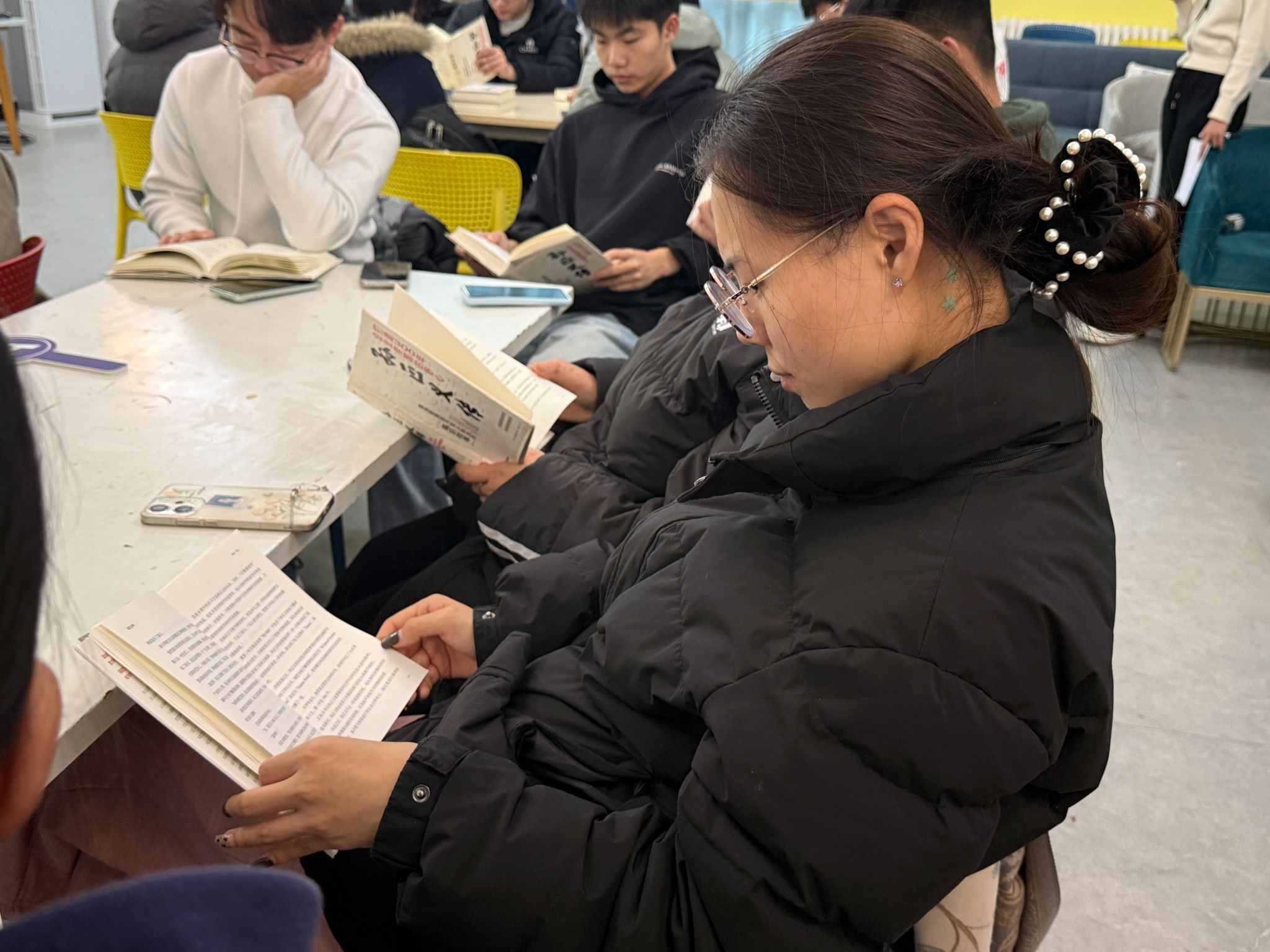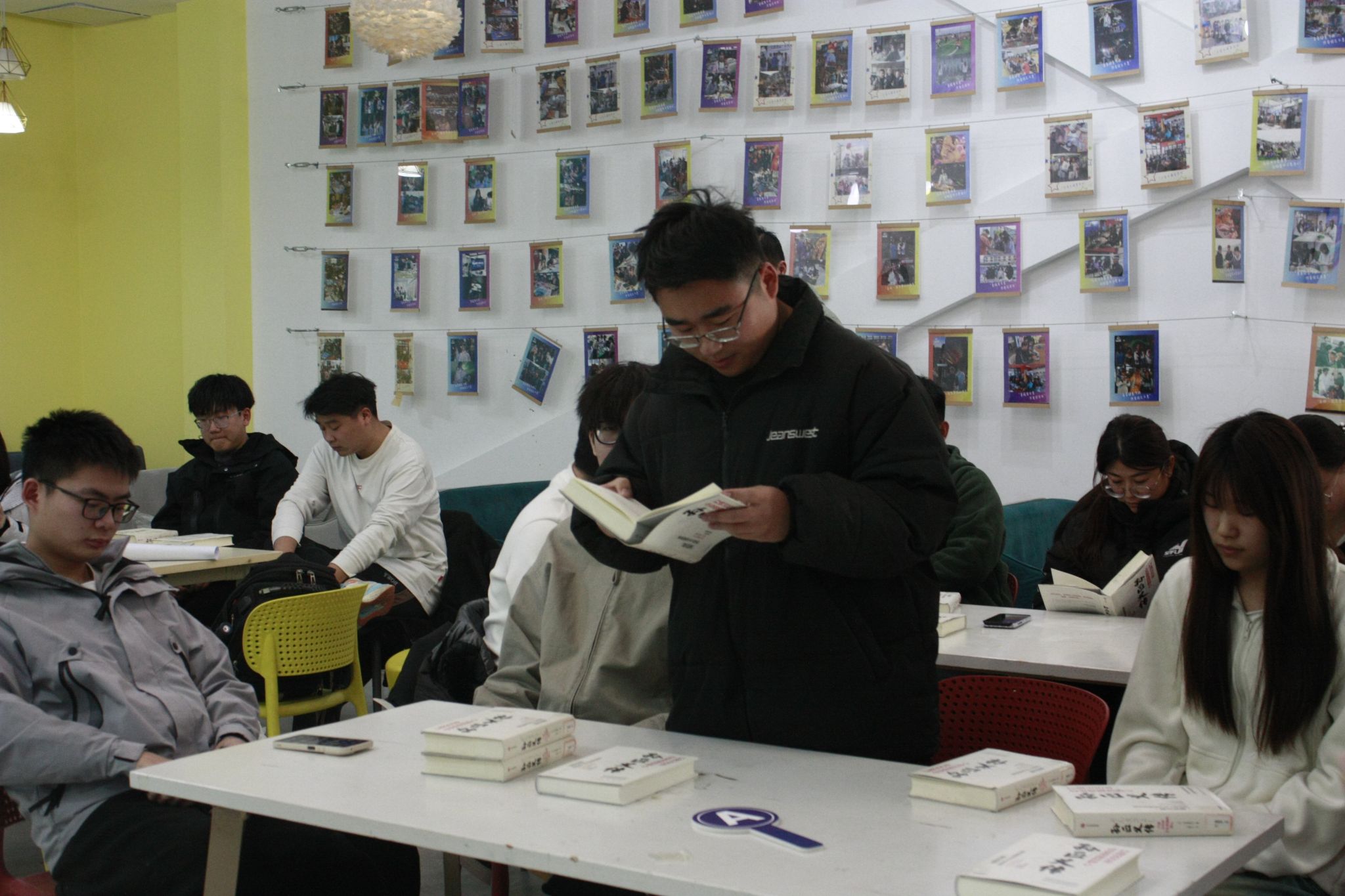 活动伊始,领读人任奕坤(五汶书院/艺术传媒学院)与同学们一同走进了孙正义的传奇人生。这部传记不仅记录了他从一位饱尝艰辛的韩裔移民少年,到创立软银帝国、前瞻布局数字时代的跌宕旅程,更贯穿了他如“时光旅行者”般的远见,敢于豪赌未来的勇气,以及“飞越经营”的人生哲学。沉浸共读中,大家仿佛亲历了孙正义波澜起伏的生命轨迹,悄然感受着一位卓越企业家的视野、决断与冒险精神。