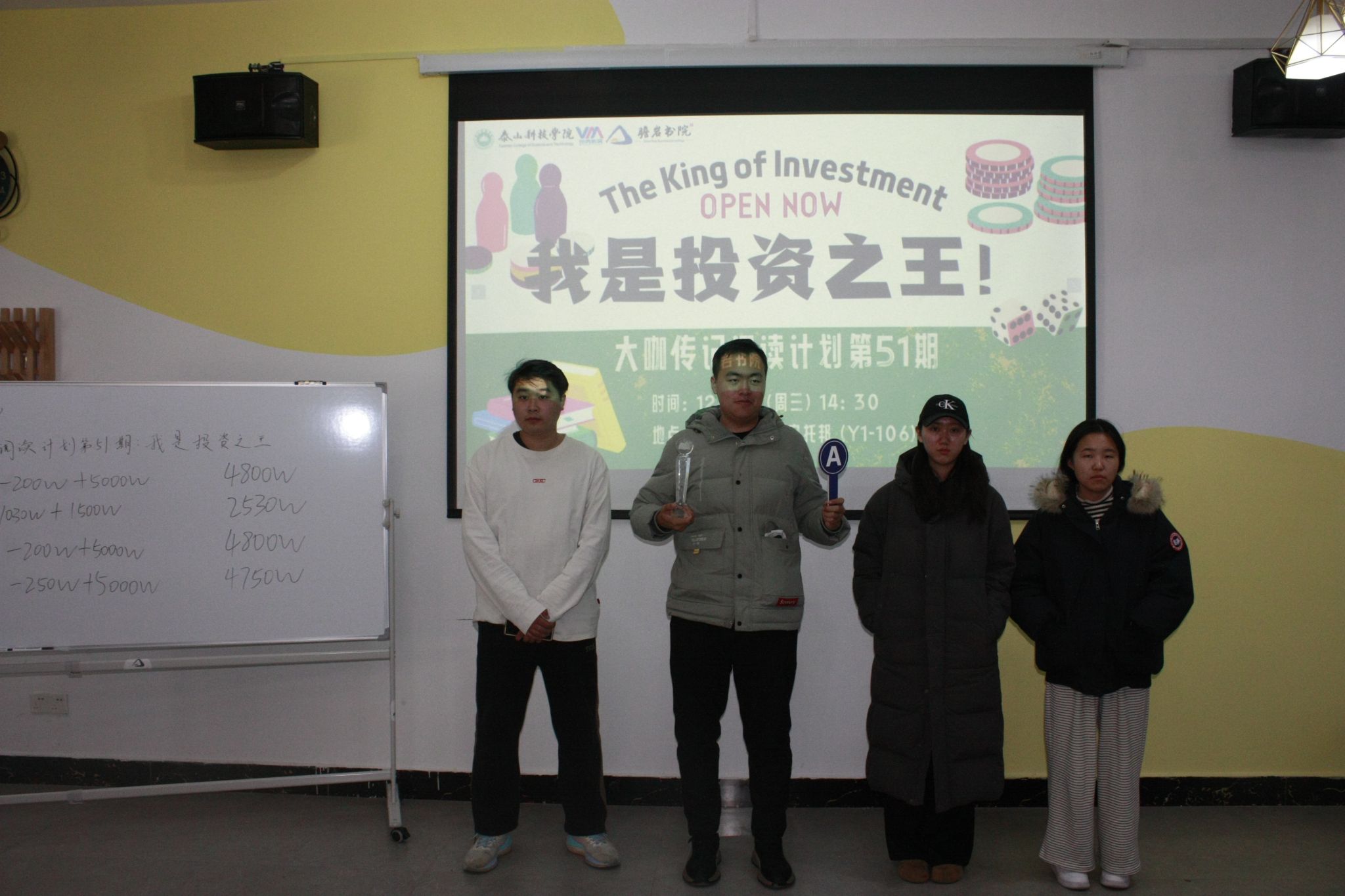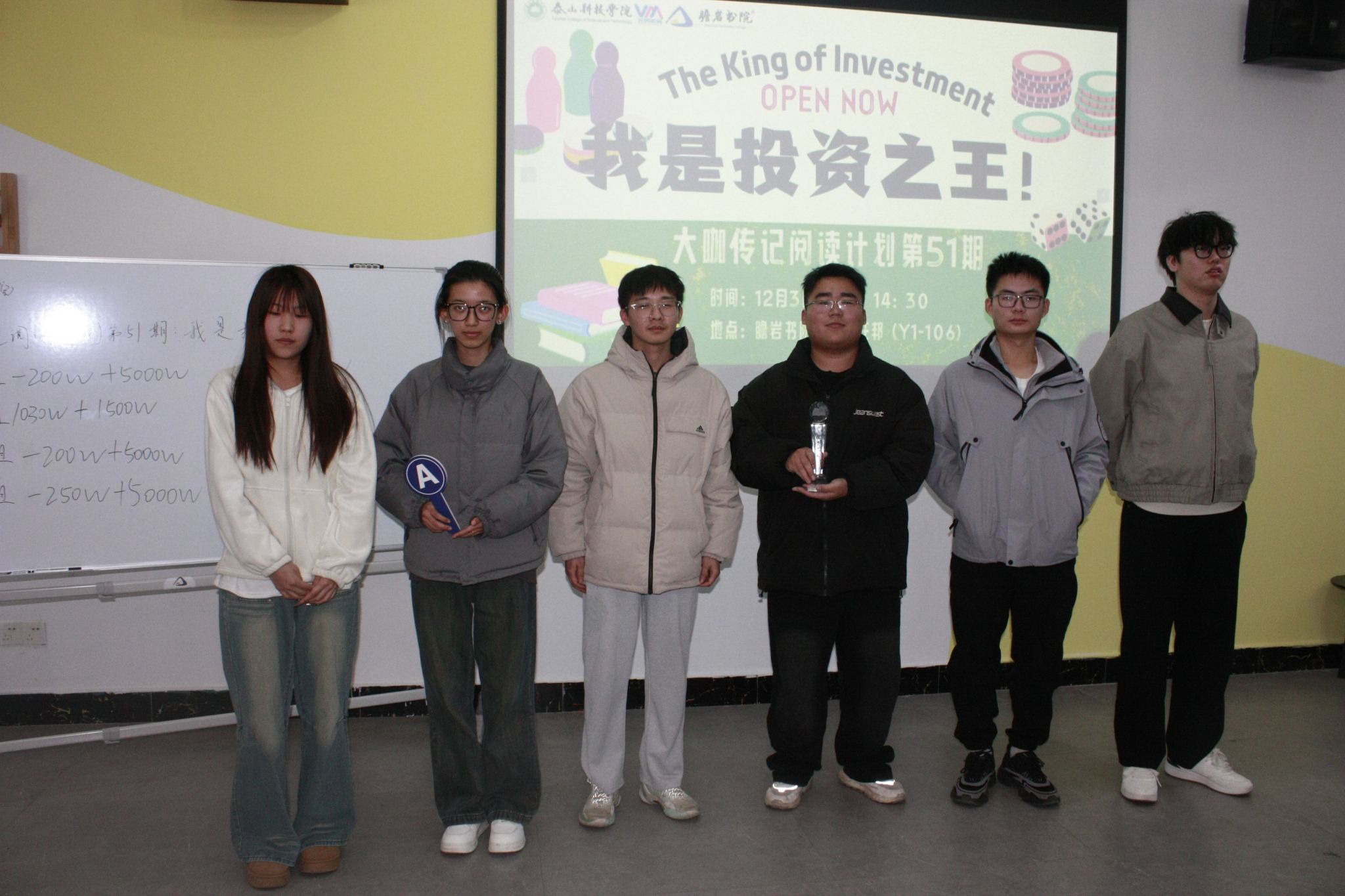 12月3日下午,【瞻岩同阅计划】大咖传记阅读第51期“我是投资之王!”在瞻岩书院青春乌托邦(Y1-106)温暖开启。本期活动以《孙正义传》为脉络,引领同学们走进一场生动的投资推演。大家化身“软银合伙人”,在“光明县高科技大棚”模拟项目中沉浸体验,通过一次次项目决策与风险博弈,切身感受孙正义的投资哲学与商业逻辑。