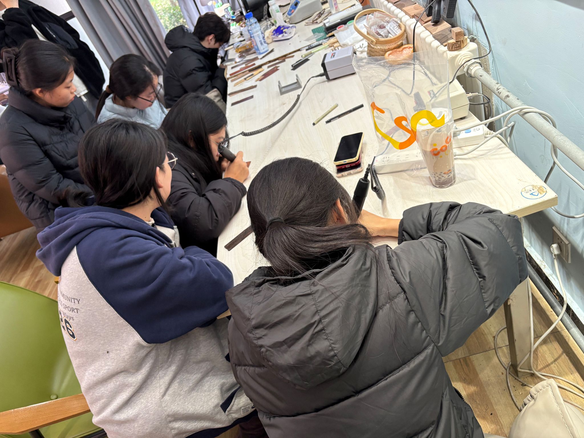 最后,大家将所有完成的书签作品集中展示,并邀请参与者分享创作背后的故事。有人提到雕刻诗句时对文字韵律的重新感悟,有人讲述幸运图案寄托的美好期许,还有人分享将校园元素融入设计时的温暖回忆。这些承载着个人情感的书签不仅成为阅读的陪伴,更化作连接彼此的纽带,让传统工艺在当代生活中焕发新的生机。