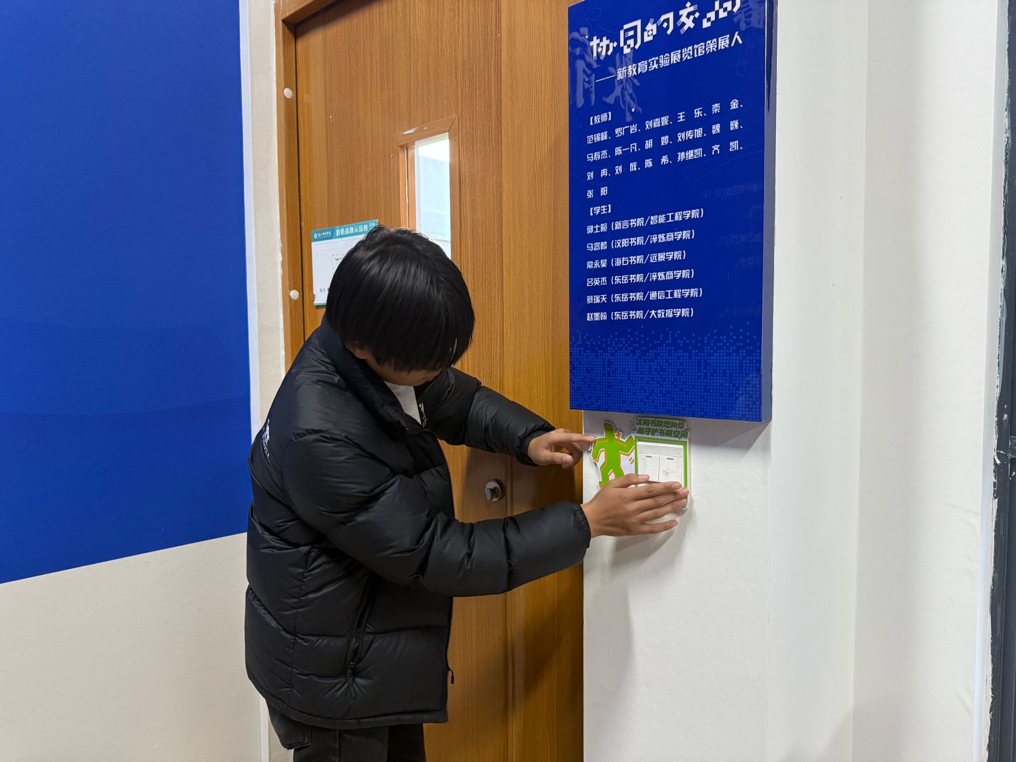 此外,汶阳书院在多个区域巧妙设置温馨提示语,如“及时关灯,节约能源”,既体现了环保意识,又营造出温馨有序的书院氛围。门厅区域,学生干部的趣味卡通头像跃然画板之上,为空间增添了趣味性,也增强了师生的归属感与互动性。