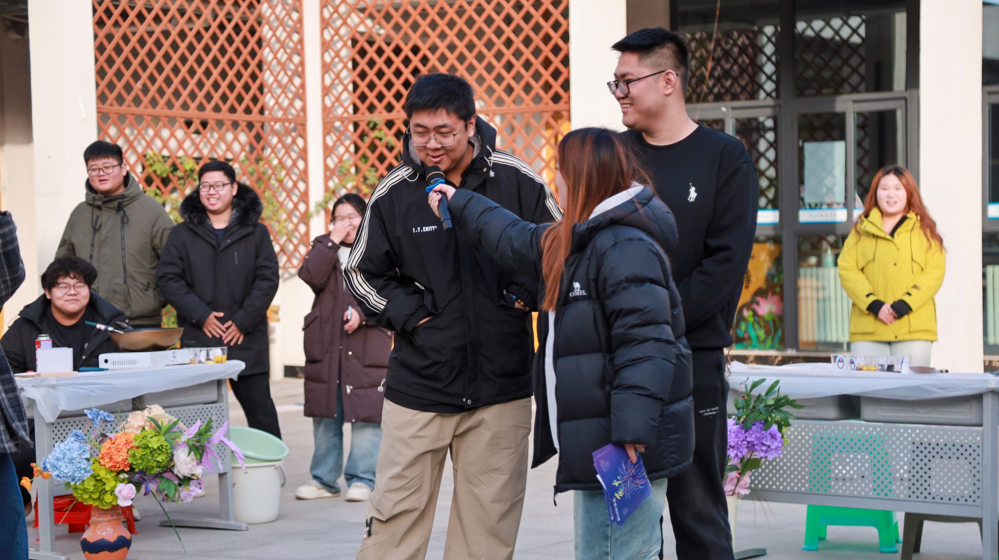 活动伊始,来自社区服务部部长主持人杨紫(大数据学院/敢当书院)热情登场,以亲切的问候拉开活动序幕。"今天,我们不谈严肃报表,不聊繁琐任务,只愿以花入膳,在烟火气与仪式感中定格成长",温暖的话语瞬间拉近了同学们彼此的距离,让现场氛围迅速升温。