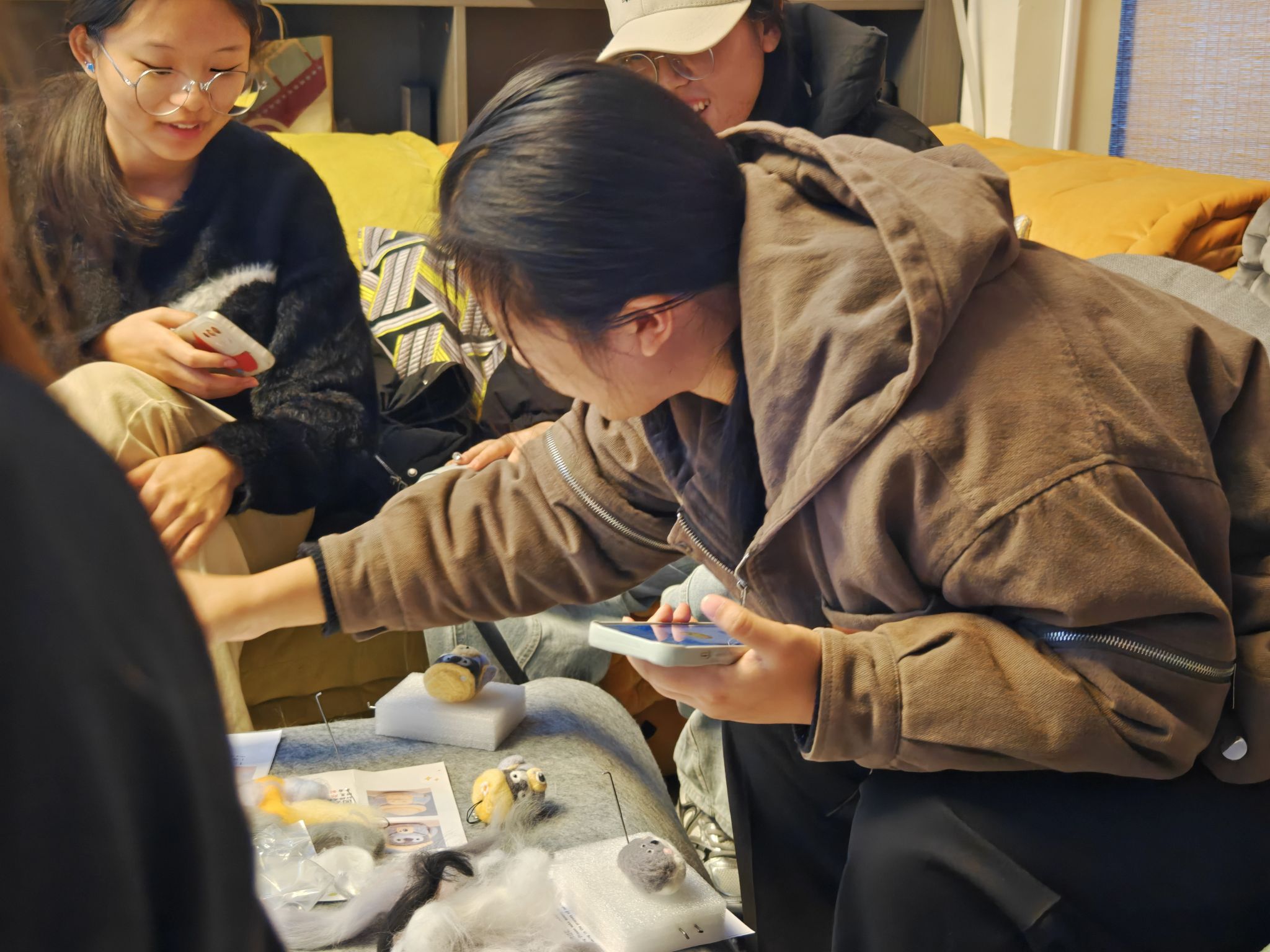 12月10日,一场以“绒暖时光·心灵手作”为主题的手工DIY羊毛毡玩偶活动在汶阳书院115房间温情开启。16位热爱手作的同学齐聚一堂,用柔软的羊毛与灵巧的指尖,共同完成了一场关于温暖与治愈的创意之旅。