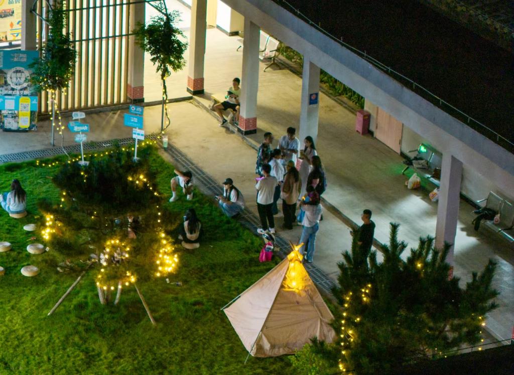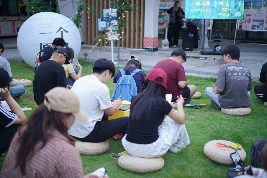 这不是传统意义上的“迎新会”。这里没有致辞,没有拘谨的,只有一群刚刚见面的年轻人,或坐或躺,围着闪烁的串灯和音乐,像早就约好似的聚在了一起。正如活动主题所说的那样:“一个人到达,一群人出发”——也许清晨他们还是独自拖着行李的默默报道的身影,而此刻,却已成为彼此呼应,共同合唱的“我们”。