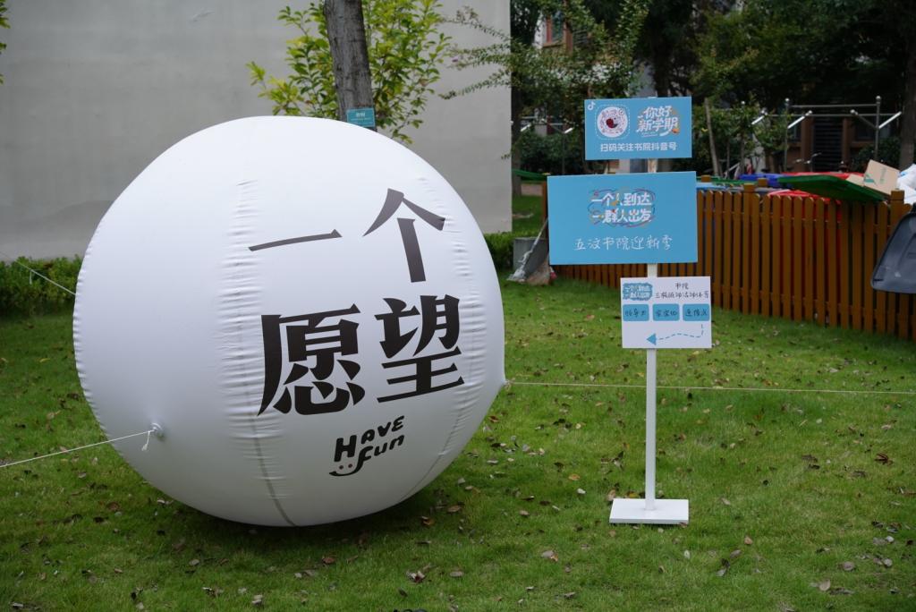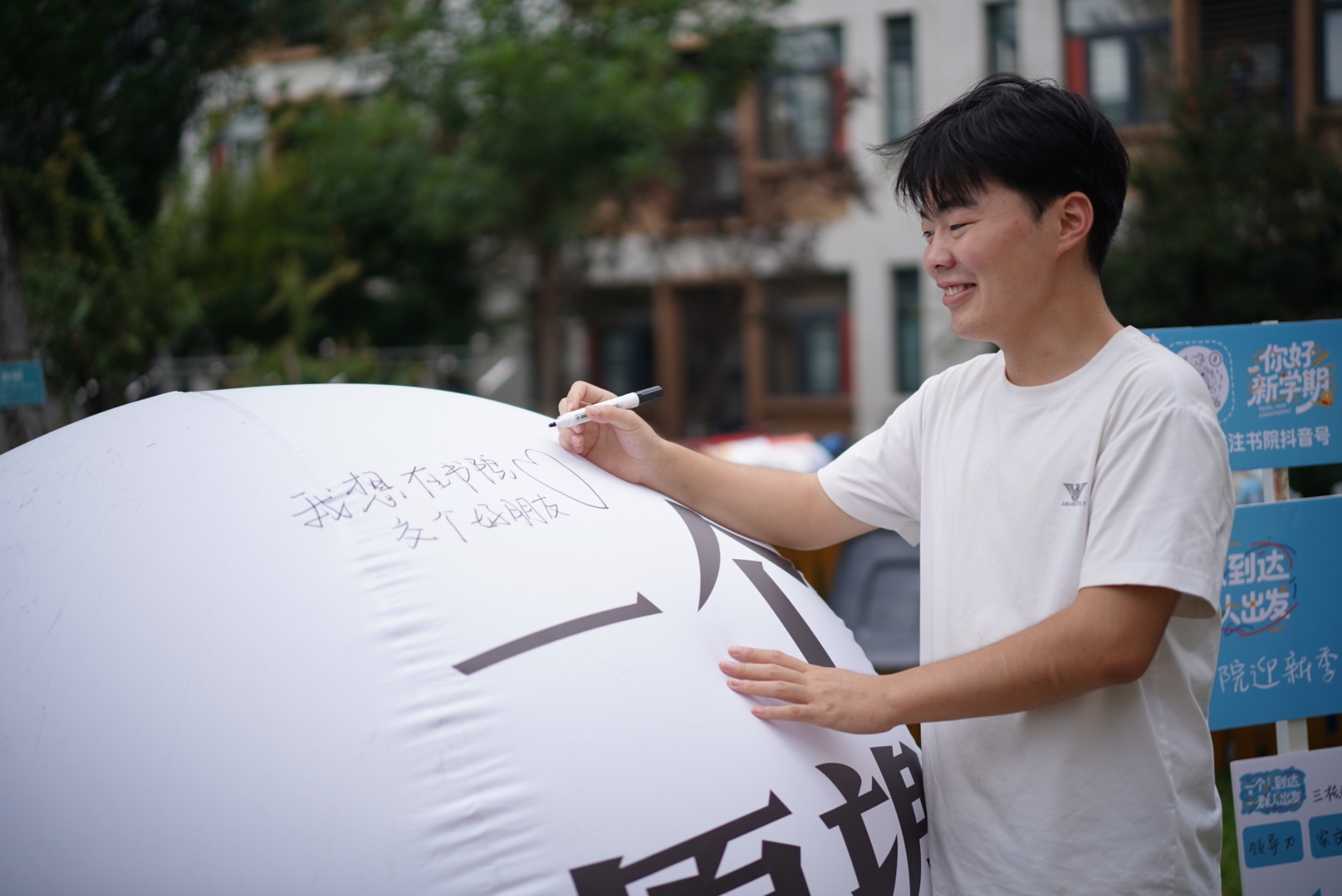 “写下你的渴望,让集体为你点亮星光。”愿望球摊位坐落于书院的绿茵草坪之上,犹如璀璨星空悄然降临。新生们将心愿手写在愿望星球上,每一个愿望都是一粒种子——有人渴望征服书山学海,有人希冀邂逅知音同行。书院承诺将随机实现部分愿望,让个人梦想与社群力量碰撞出奇迹的火花。长短句交错间,情感的涟漪层层荡开:短如“我想学会吉他”,长似“愿四年后自己考研上岸”,简单的仪式因集体参与而厚重。
