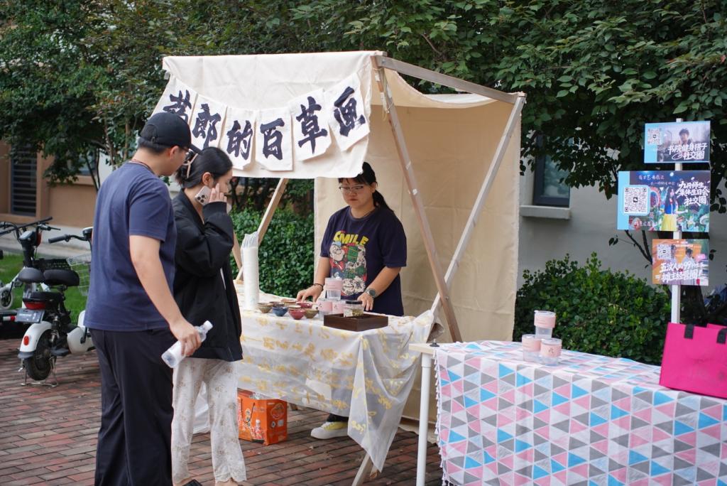 青瓷茶盏、氤氲药香——药郎的百草匣摊位以传统养生文化叩击现代健康议题。十余种古法配方悠然飘香,从茯苓枸杞茶的温润,到薄荷甘草饮的清凉,每一杯都蕴藏着时光沉淀的智慧。譬如那款“人参熬夜茶”——红枣、菊花、甘草、枸杞与人参巧妙相融,成为不少学子告别深夜疲惫、重拾活力的秘钥。越来越多大学生驻足品尝,在氤氲茶香中,聆听志愿者娓娓道来节气与体质的奥妙,探寻身心调和的古老哲学。这一设计绝非偶然:它与五汶书院“5K健身中心”形成双翼齐飞的健康生态!健身达人秀打卡强调肢体力量,百草匣则内养心神,二者共筑“健康大学人”理念——身体与精神,皆需在集体的氛围中臻于至善。