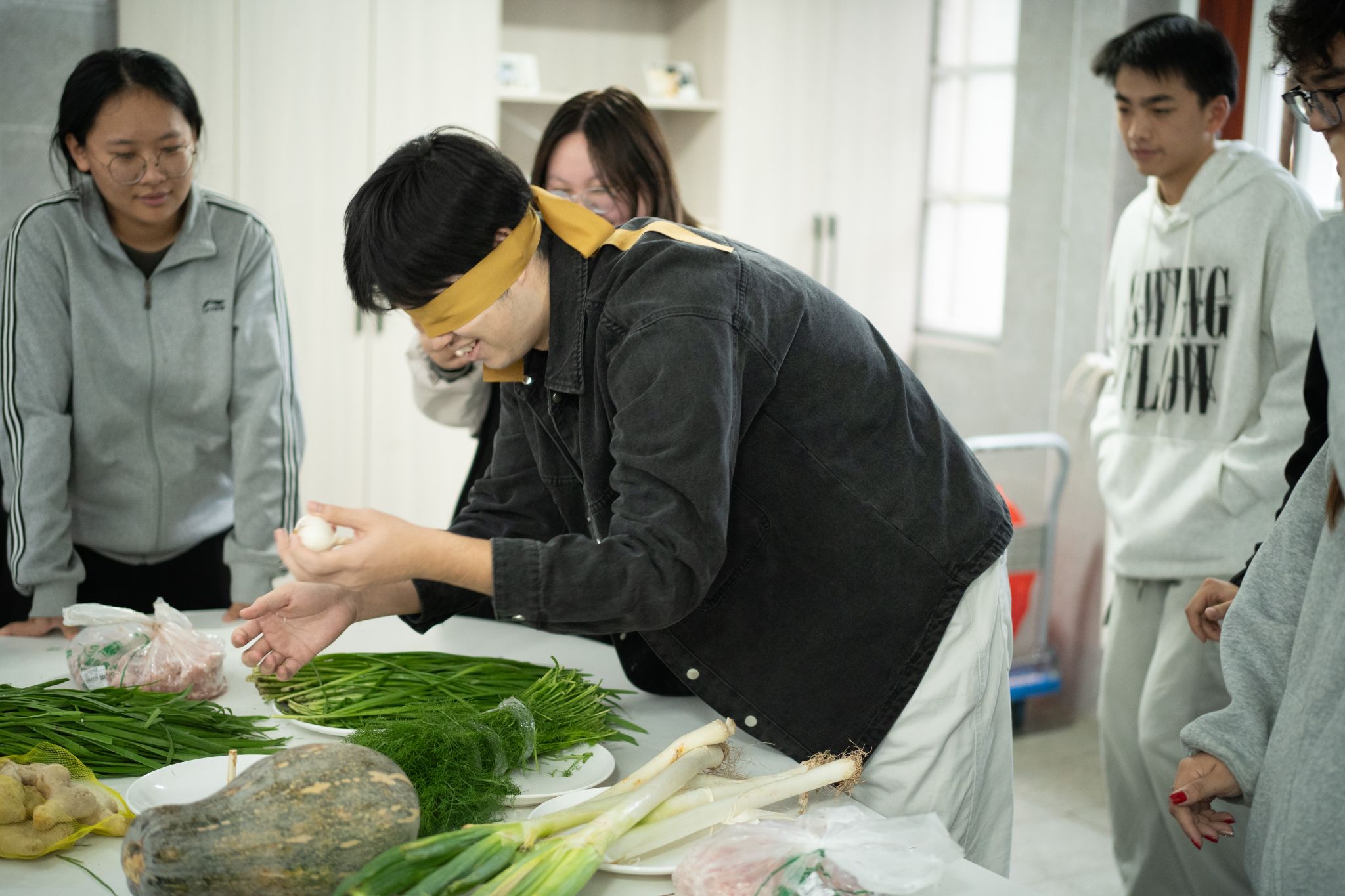 大家分小组将前期在小游戏中获取的食材、调味品调制成馅料“我们小组没能在前面的游戏里获得食盐,但是我们有食用油,可以和你们小组交换一点食盐吗?”在厨房温暖的灯光下,包饺子的案板前,一场物换物协作正在展开,风格各异的馅料里,包含着的是学生会各个部门协作的温度。