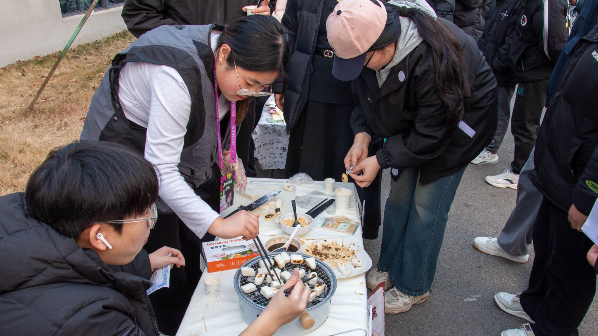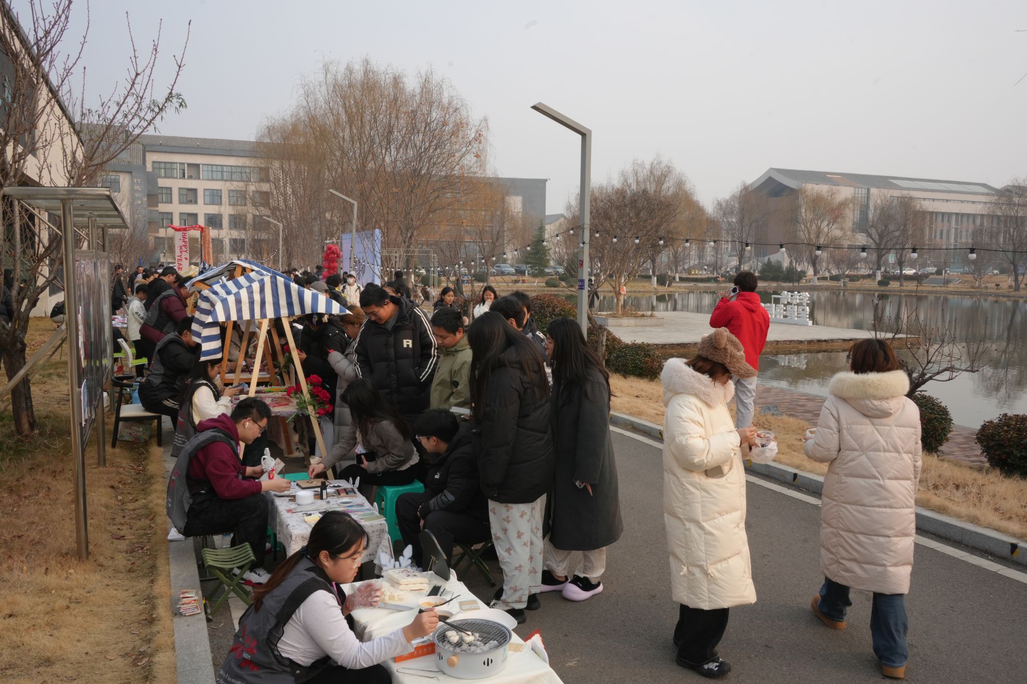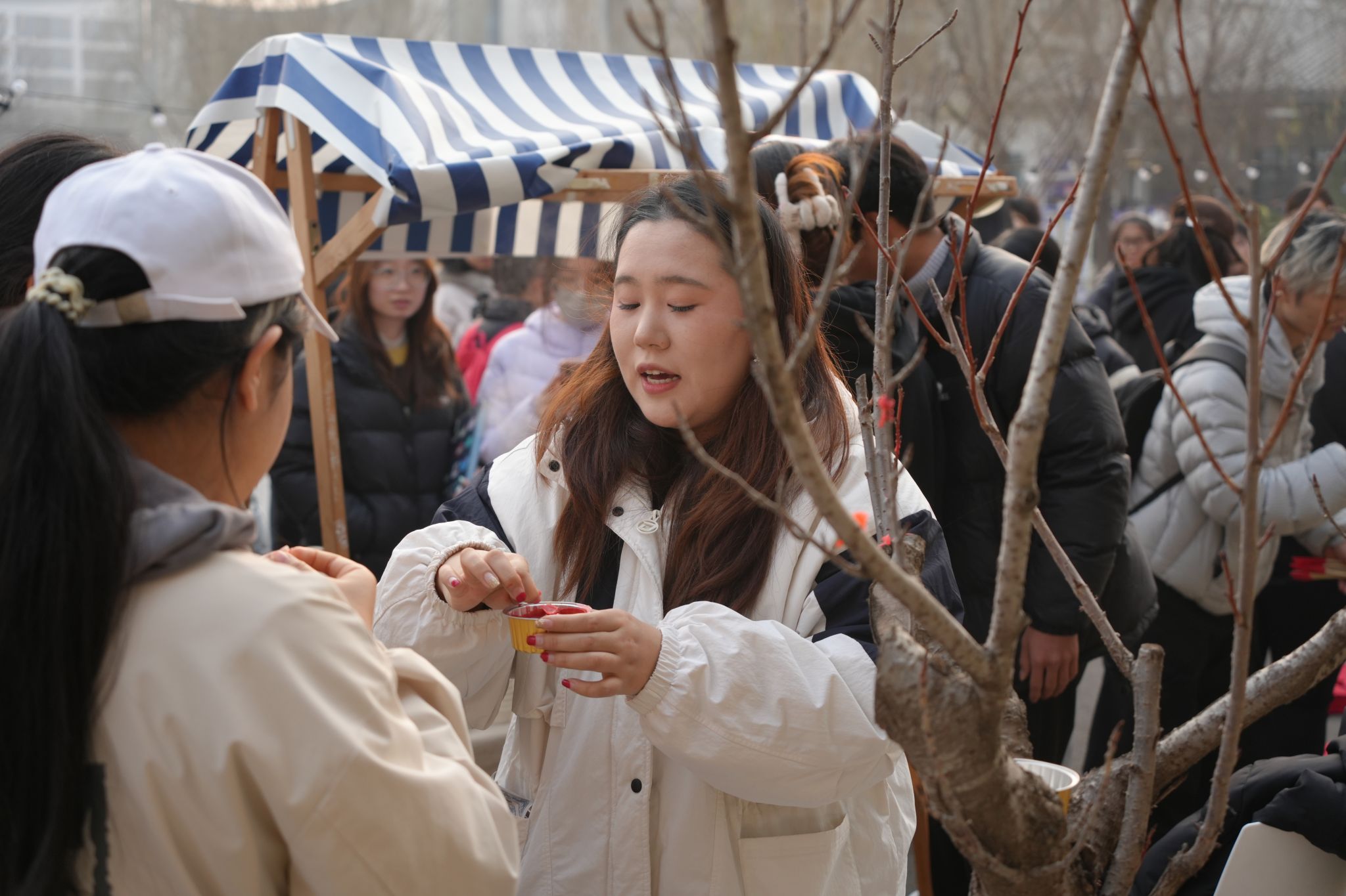 “新鲜的饺子出锅咯!”“孃孃的食肆”里,冬至限定水饺鲜香扑鼻,一个个饱满的饺子裹着馅料,咬下一口汁水四溢,不仅驱散了冬日寒凉,更藏着幸福美满的真挚期许。“玉露凝香铺”的甘蔗雪梨汤清甜润燥,慢火熬煮间,将滋润与暖意融入汤汁,一口下肚,温润回甘,伴同学们度过冬日寒夜。