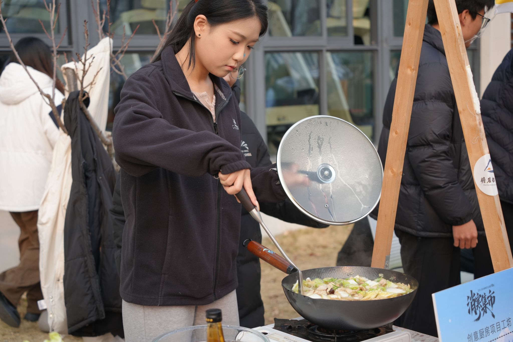 创意厨房项目工坊的特色美食制作活动更是热火朝天。参与者们分工协作,择菜、切配、炖煮、翻炒,忙得不亦乐乎。醇厚入味的白菜炖粉条咕嘟冒泡,暖身暖胃;鲜香下饭的辣椒炒肉香气四溢,勾人食欲。大家围在灶台旁,分享烹饪技巧,畅谈生活趣事,在热气腾腾的美食制作过程中,亲身感受冬至团圆的温馨氛围,让浓浓的烟火气与冬日暖意交织蔓延。