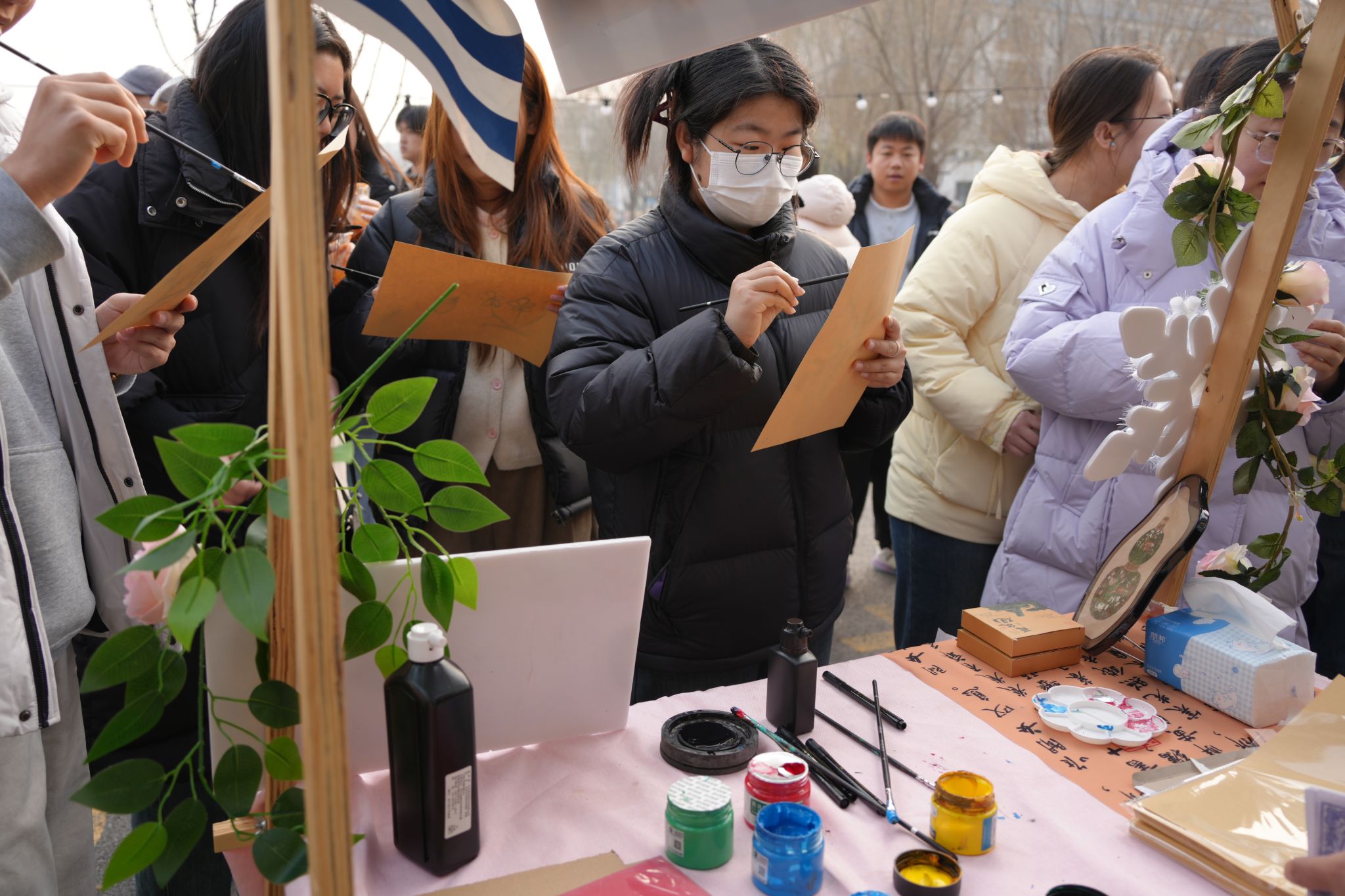 “暖语小铺”中,参与者们提笔书写,或梳理思绪、或寄托情感,在快节奏的生活中寻得心灵沉淀的契机,更通过分享文字背后的故事,增进人际联结、凝聚情感共识。“指尖腊梅花”摊位上烛火摇曳,熔融的蜡液在掌心揉塑成枝,细针勾勒纹理、巧捏梅瓣点缀,一朵朵形态各异的腊梅悄然成型,或傲立枝桠、或含苞待放,将冬日清雅藏于手作之中。