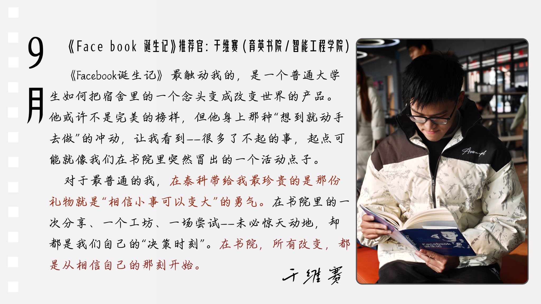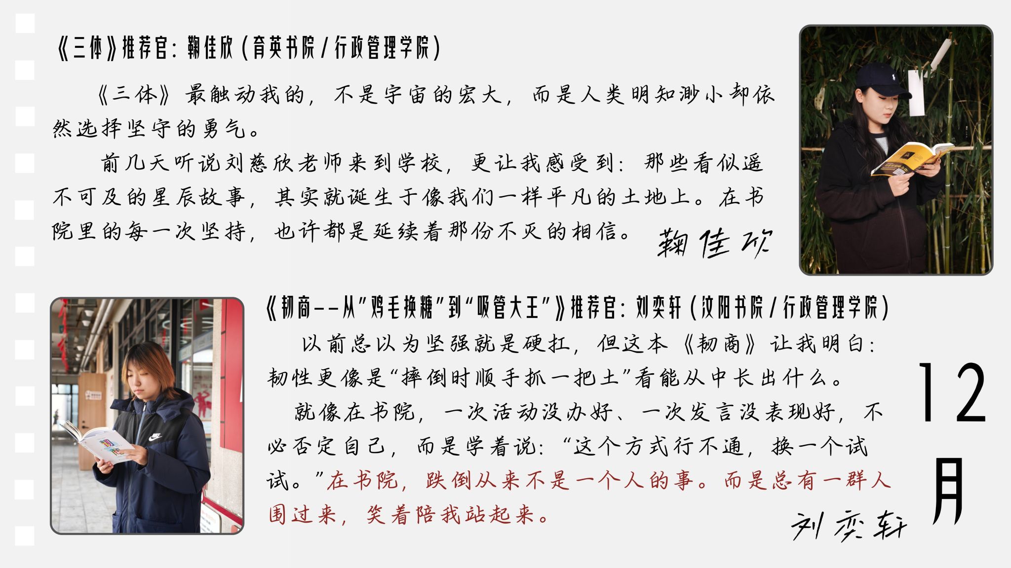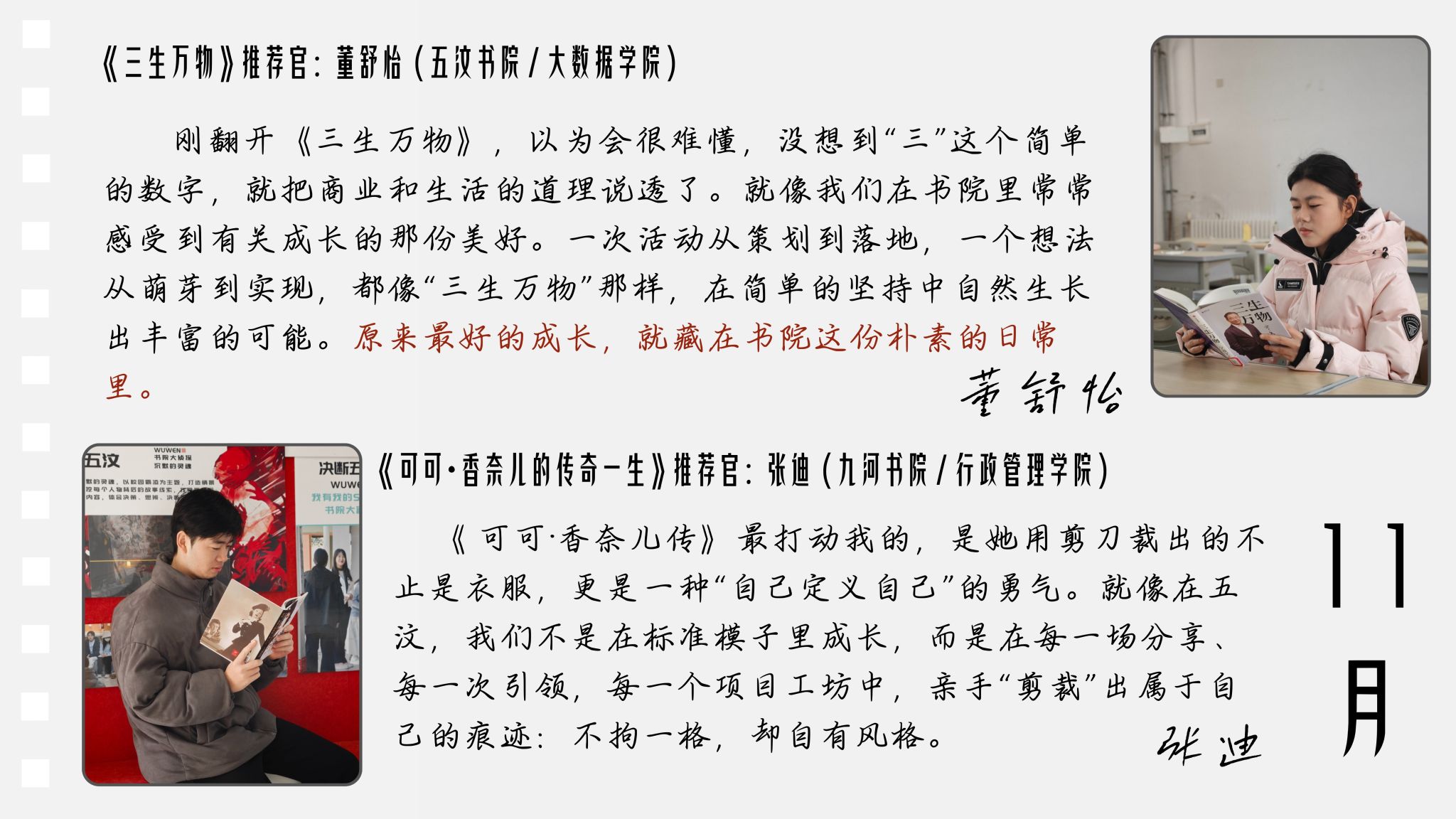 此刻,我们以文字的仪式感,将这一年的共读时光精心封存,汇成独属于书院的「五汶大咖阅读年度记录」。过去的这一年里,我们以16期大咖阅读活动为依托,携手370位五汶书友,共同走进16部大咖传记的决策世界。此外,每月还与艺术传媒学院联动,让书院里的每一页文字、每一次对话,都成为彼此成长的生动注脚。