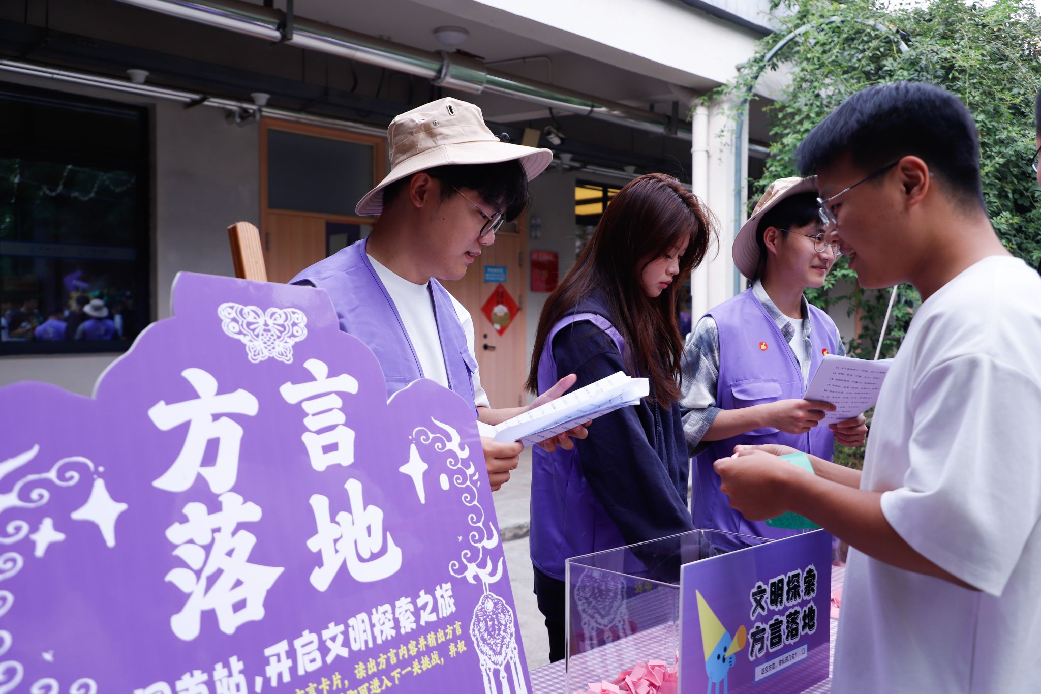 在“文明探索” 区,来自九河书院/通信工程学院的马英杰同学抽到山西的方言卡片:“作甚涅,你说”,努力模仿的声调引发周围阵阵欢笑,乡音瞬间拉近了彼此的距离。“精神探索” 区则格外安静,同学们围在工作人员展示的大咖照片前凝神思考。“哎呀,他很熟悉!但是我怎么也想不出他的名字!”,这位来自九河书院/通信工程学院的体验官吕兆振急得直挠头:“再换一个吧,看来我得好好看看大咖书籍了。”大家被精神探索困住了前进的脚步。