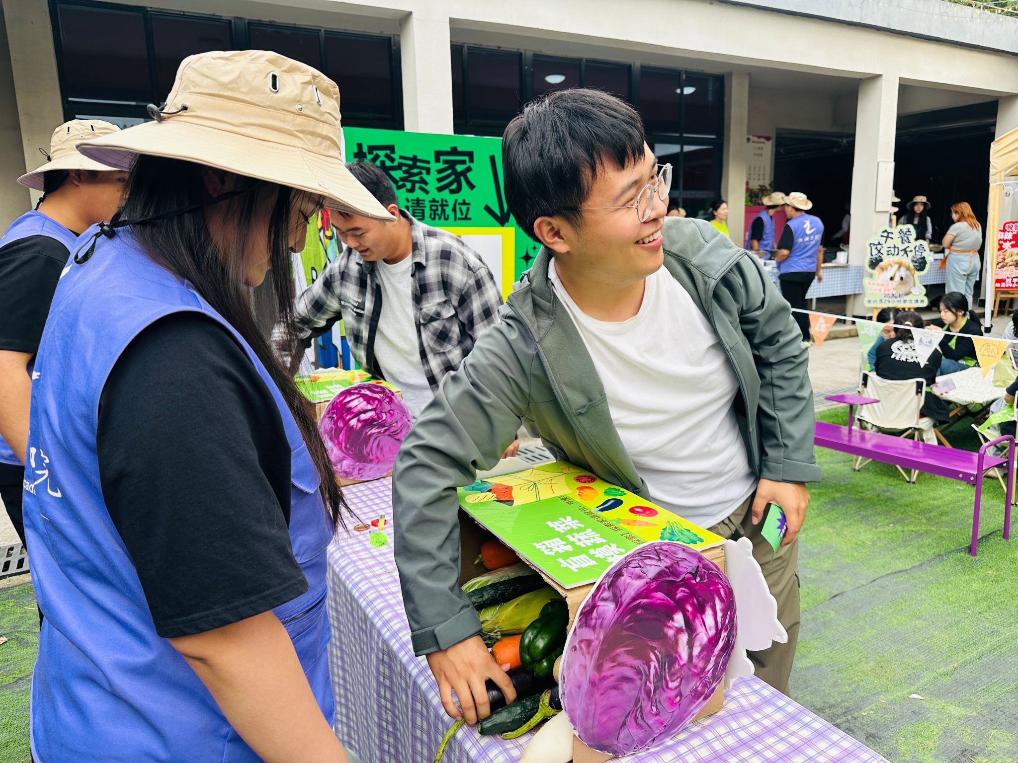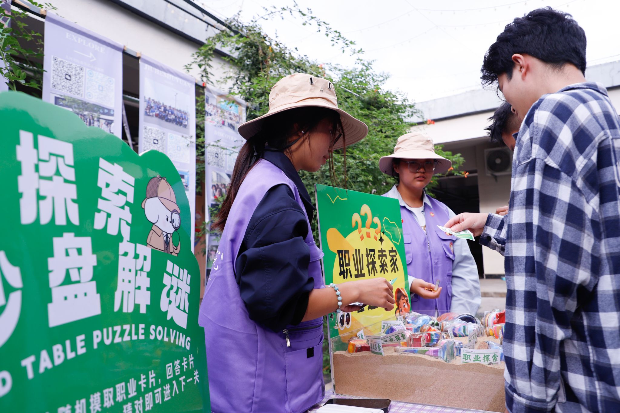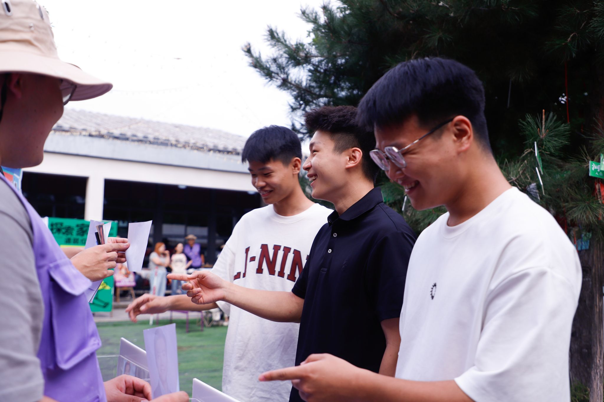 在“职业探索”区的沙盘旁,几位新生正对着一张“医生”职业卡片各抒己见。“眼科医生测视力时最常指那个字母?”一个男生话音刚落,他身旁的女生立刻抢答:“山山山!”新生因这默契的答案相视一笑,随即奔向下一关卡。“风味探索”区则惊叫与欢笑不断。当九河书院/通信工程学院的体验官岳旭鹏从暗箱中摸出蔬菜并自信地喊出“西红柿!”时,工作人员忍俊不禁:“同学,你摸到的是尖椒!”他瞬间缩手的夸张表情,引得全场爆笑。书院发展导师贾方雷老师化身探索引导官的角色,早已在探索家等大家所有挑战都通关后为大家递上最终的入院证书!九河生活这就算正式解锁啦!