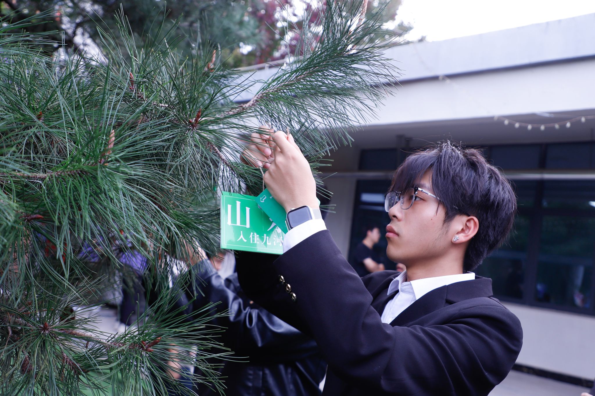 一次探索门铃摇动,是探索家们的第一次发问。书院新生们在庭院入口处接过书院学生会同学们亲手递上的“家乡门牌”。“你从哪里来”这样一个简单的问题,往往会成为探索家们开启旅程的第一次发问。一张姓名家乡门牌,是探索家们的来时路。书院入口处,新生们将写有家乡名称的卡牌亲手写上自己的姓名系在入海庭院的树上,顷刻间铸就一棵情感盎然的“家乡树”,天南地北的九河新生在此驻足,“哎,你也是河北的?”一声乡音辨认,陌生感冰消雪融,归属感油然而生。