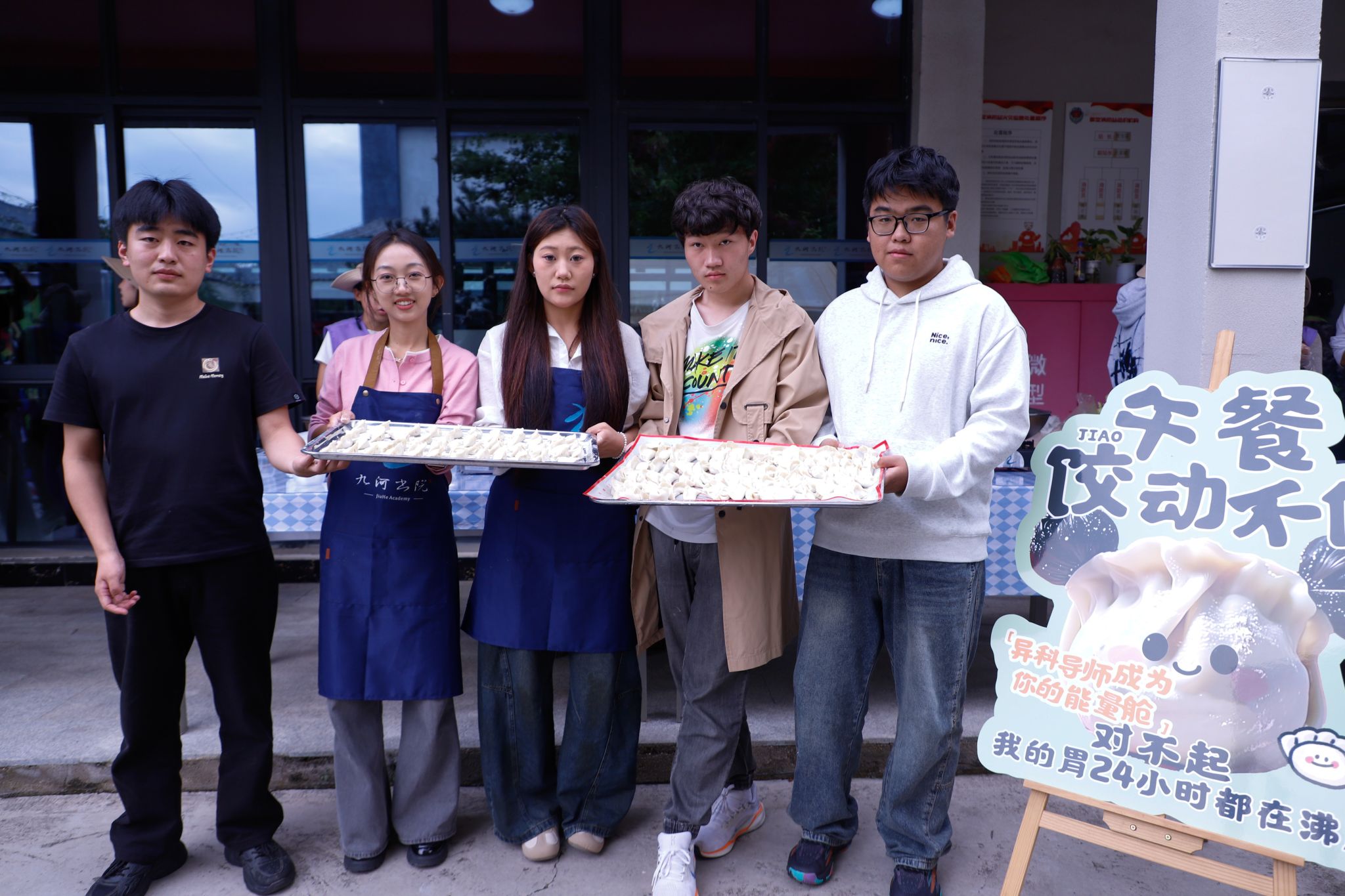 也许探索家的挑战之旅免不了风餐露宿,但是在九河书院,探索之旅却会有家人们共同守护。通信工程学院辅导员于兹房、车凤娟、于浩为通关新生们送上一份导员“早八”限定探索早餐,简单一颗茶叶蛋,减缓“早八”困难症。九河书院全生异科导师刘欣怡、刘雪、孙梦琪和新生们一起包起了皮薄馅足的探索午餐,一份“上车饺子”助力探索家们的每一次出发;书院老师孙红艳、杨双双为新生们烹饪了一份探索晚餐,一份夜宵麻辣烫,麻辣鲜香,吃完整个人都暖烘烘的,还有那清甜解腻的冰粉和饮料、奶茶,每一口都是 “家”的味道。