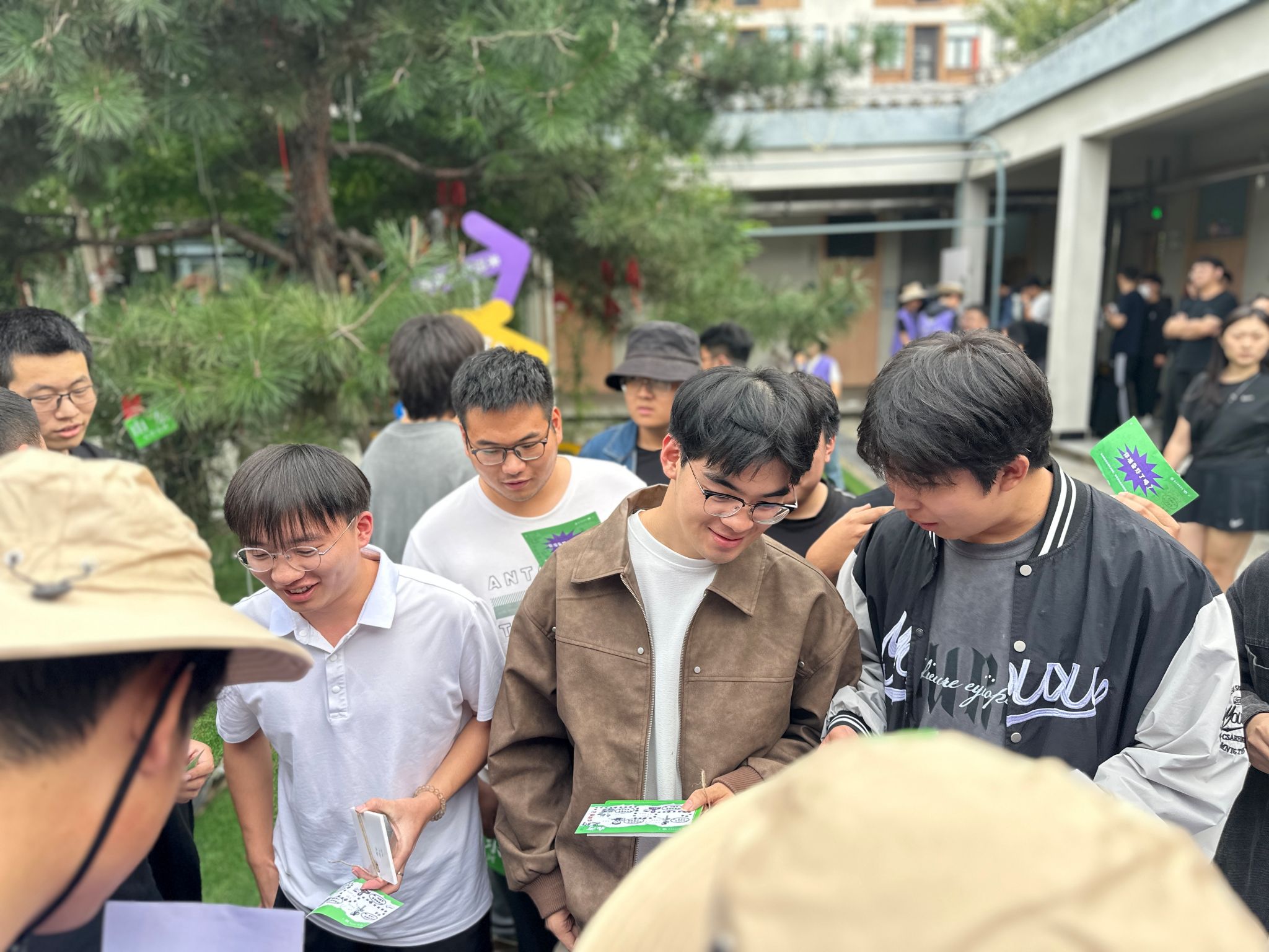 铃声一响,挑战开始!新生们在“四重探索游园区”前亲手按下响铃,礼物窗口神奇弹出通关证,随即涌入四个各具特色的探索游戏关卡,现场气氛热烈:
